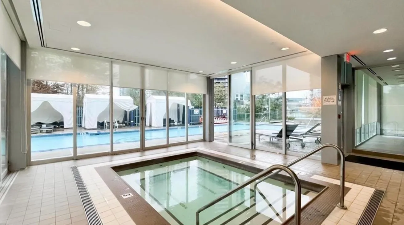 Constructed by Concord Pacific, this carefully designed one-bedroom, one-bathroom home offers a delightful view of the courtyard. Fitted with top-notch appliances, including a gas stove, quartz countertops, and built-in appliances. Enjoy access to luxurious amenities such as 24/7 Concierge, clubhouse, outdoor pool, indoor hot tub, steam room, playground, tennis court, and Golf Simulator room. Head to the rooftop sky lounge for a full city view. Conveniently located near the Skytrain, SFU, Holland Park, T&T Supermarket, City Central Mall, restaurants, and more. The unit comes with one regular-sized parking spot and one storage/bike locker .**Open house Sat Nov 8th 2-4 pm** (id:27476)
