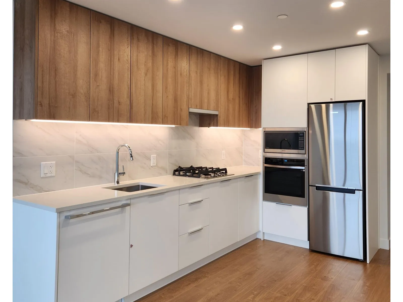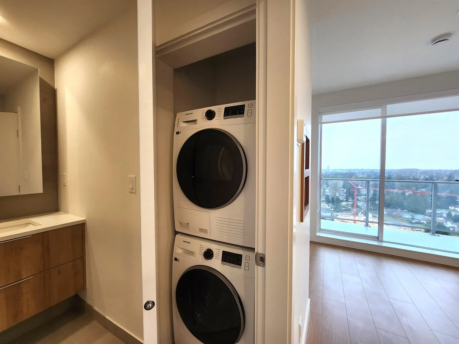 Brand New Luxury Condo at Holland Two - Top Floor with Stunning Views! modern 1 bed, 1 bath home (449 sq.ft living+ 57 sq.ft) in the heart of Surrey City Centre. Enjoy a bright open layout with engineered hardwood floors, quartz countertops, gas range, and stainless steel appliances. Large windows and a spacious covered balcony offer breathtaking city views.Located just steps from Holland Park, Surrey Central SkyTrain, Mall, SFU, the future UBC campus, and countless dining and shopping options. The building features over 19,000 sq. ft. of amenities including a gym, coworking space, and more. Air Conditioning, In-Suite Laundry, 1 Parking + 1 Locker. Experience Parkside Living in Surrey's Urban Core-this is luxury, location, and lifestyle combined. Book your private showing today! (id:27476)