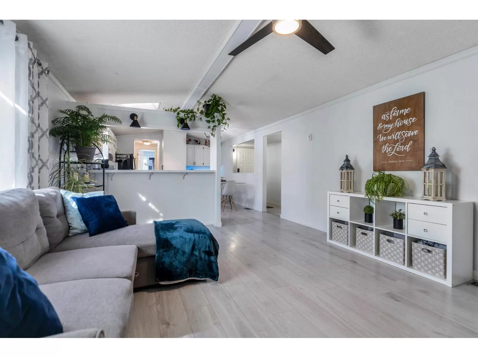 Spacious 1,564 sq ft home offering 3 bedrooms and 2 full (4-piece) bathrooms, plus an enclosed sunroom and flex space (not included in the square footage). Laminate flooring throughout, vaulted ceilings, skylights, walk-in closet, and an oversized master bedroom with ensuite. The layout separates the bedrooms for added privacy. Enjoy a quiet, private yard that truly feels like a detached home. The gazebo has a brand-new roof, ready for spring enjoyment. Parking for two vehicles plus convenient visitor parking and greenspace directly across. Pet-friendly (2 pets allowed: cat/dog), no age restrictions! Amenities include a clubhouse, amenity room, outdoor heated pool, and beautiful walking trails. Close to Highway 99, transit, shopping, the beach, hospital, schools - The perfect family home! (id:27476)