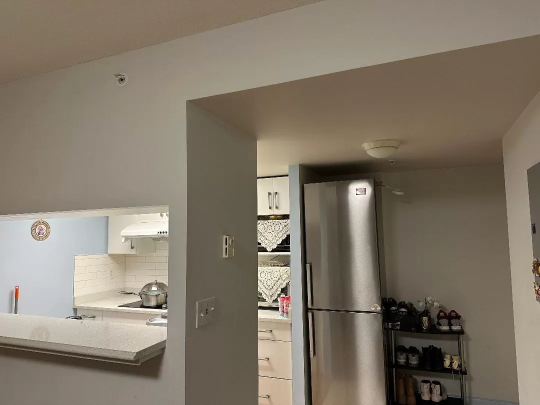 Welcome to this newly renovated beautiful North-East facing corner unit home in GRANDVIEW COURT with 1 bedroom + large den(big enough to be the 2nd bedroom). Features a year only for new open concept Kitchen, Appliances, Flooring, Bathroom and Fresh paint, Convenient location close to skytrain, public transit hub, Central city shopping center, Walmart, TNT market, recreation center, SFU, Kwantlen Polytechnic University, Holland Park & Surrey City Hall, Sports stadium, 2 underground parking spots plus storage locker& bike room on parking level . (id:27476)