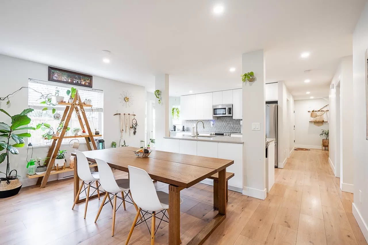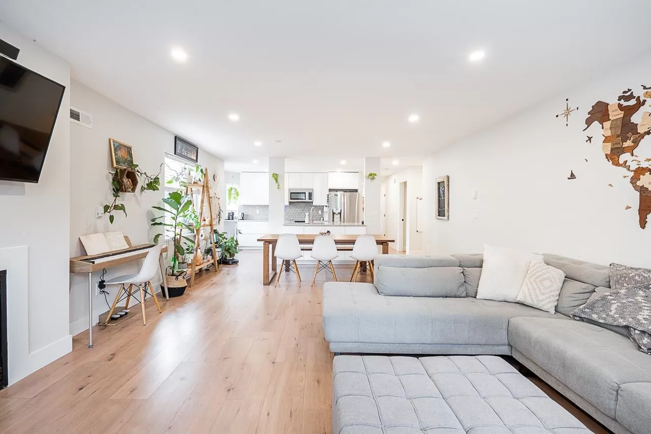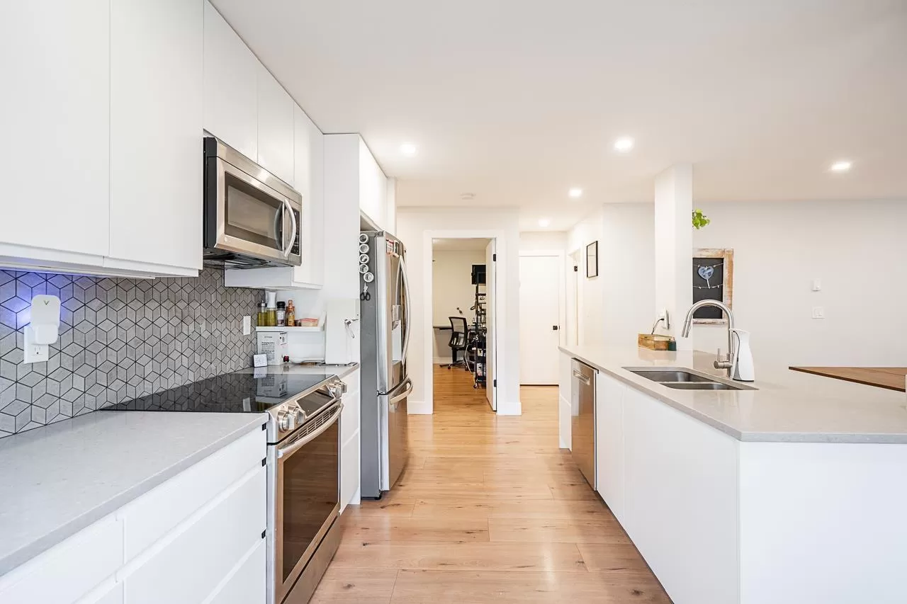 Renovated bright and spacious ground-level end unit townhouse in Fleetwood. Rancher style living at its best with this well-appointed 2 bedroom plus den (could be 3rd bedroom), 2 bathroom home. Features an open-concept great groom with recent updates throughout including new floors, kitchen cabinets with quartz counters and tile backsplash, paint, designer light fixtures, mouldings and stainless steel appliances. Lovely backyard with covered patio and BBQ area perfect for entertaining. Parking includes a single car garage, open parking and visitor parking. Do not miss the opportunity to live in a quiet area of Fleetwood, yet so close to all amenities and future Skytrain! (id:27476)