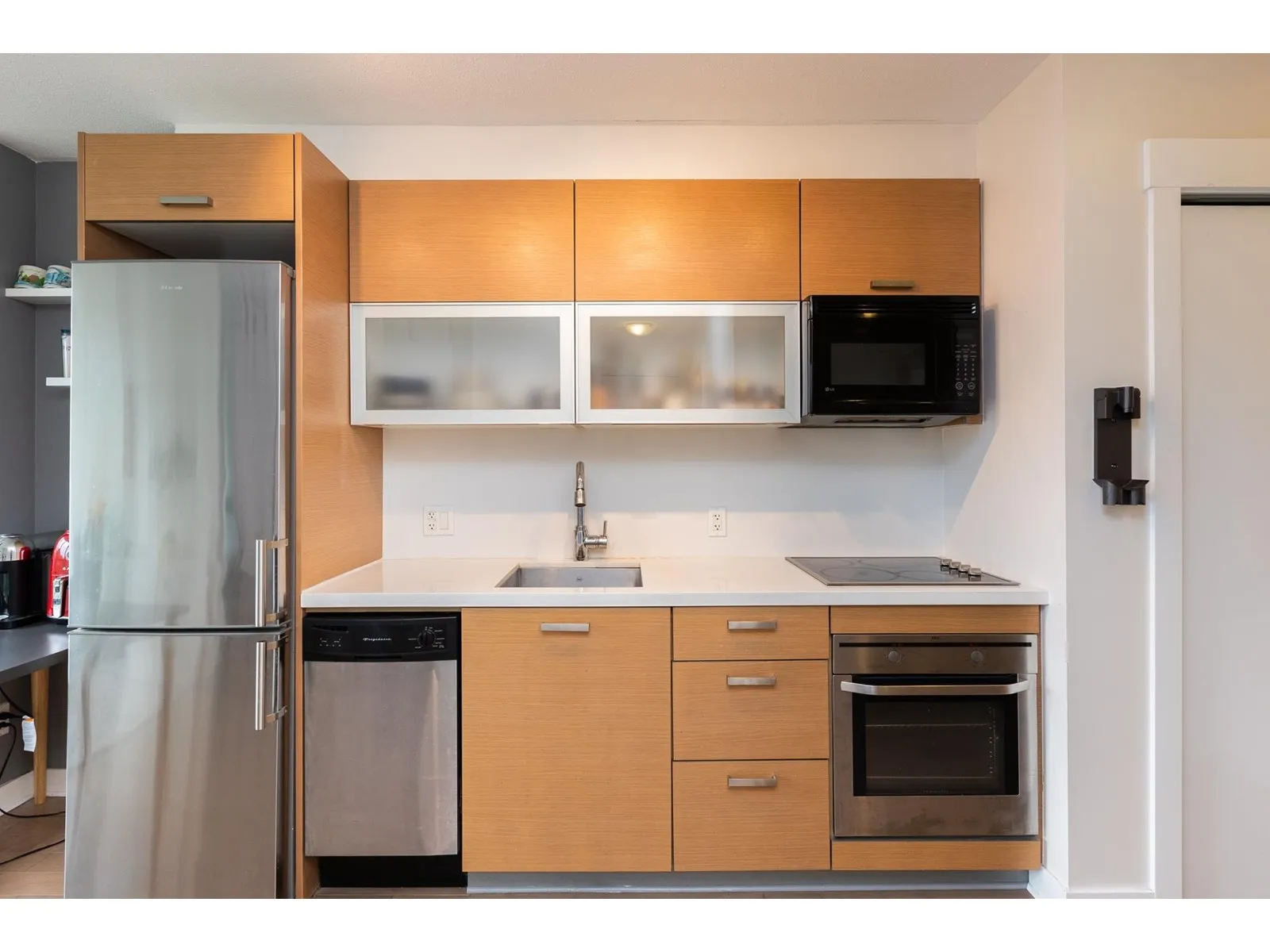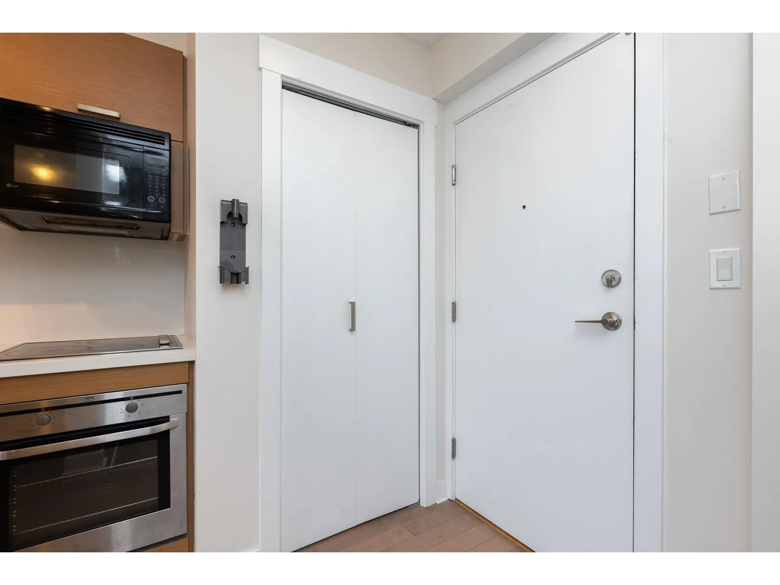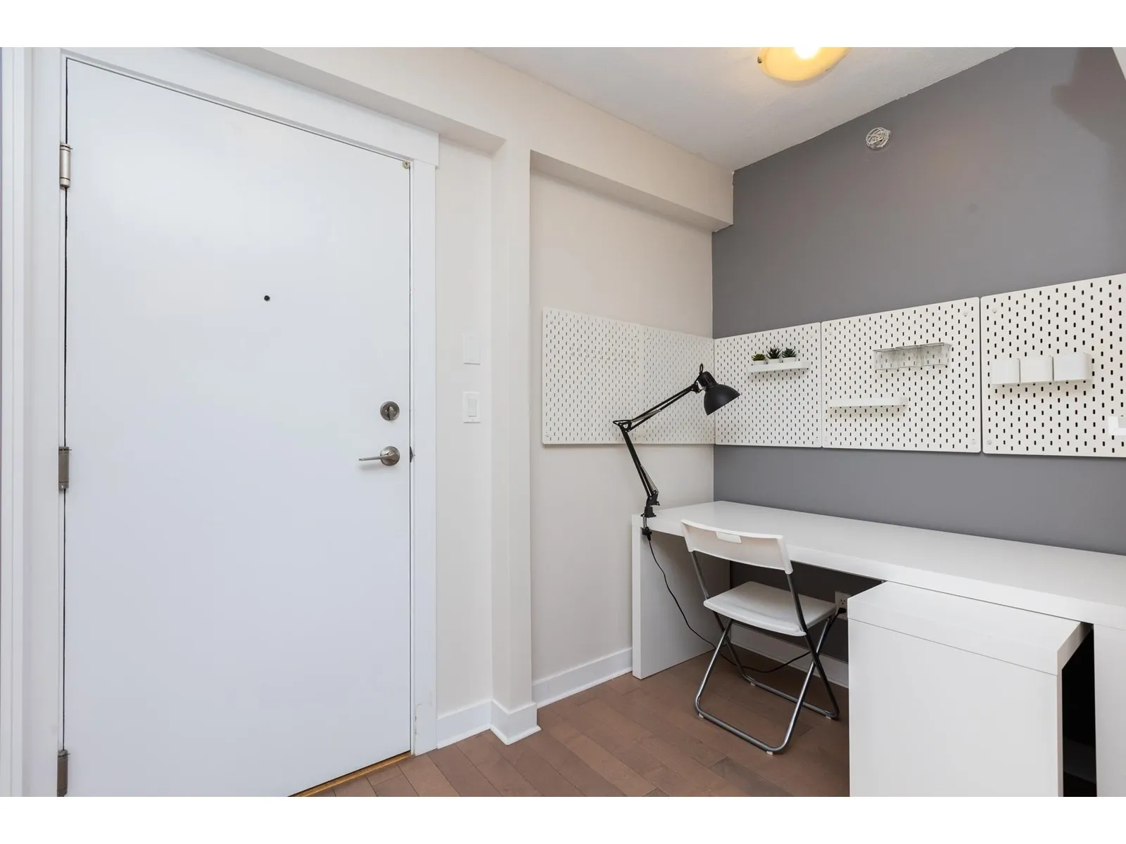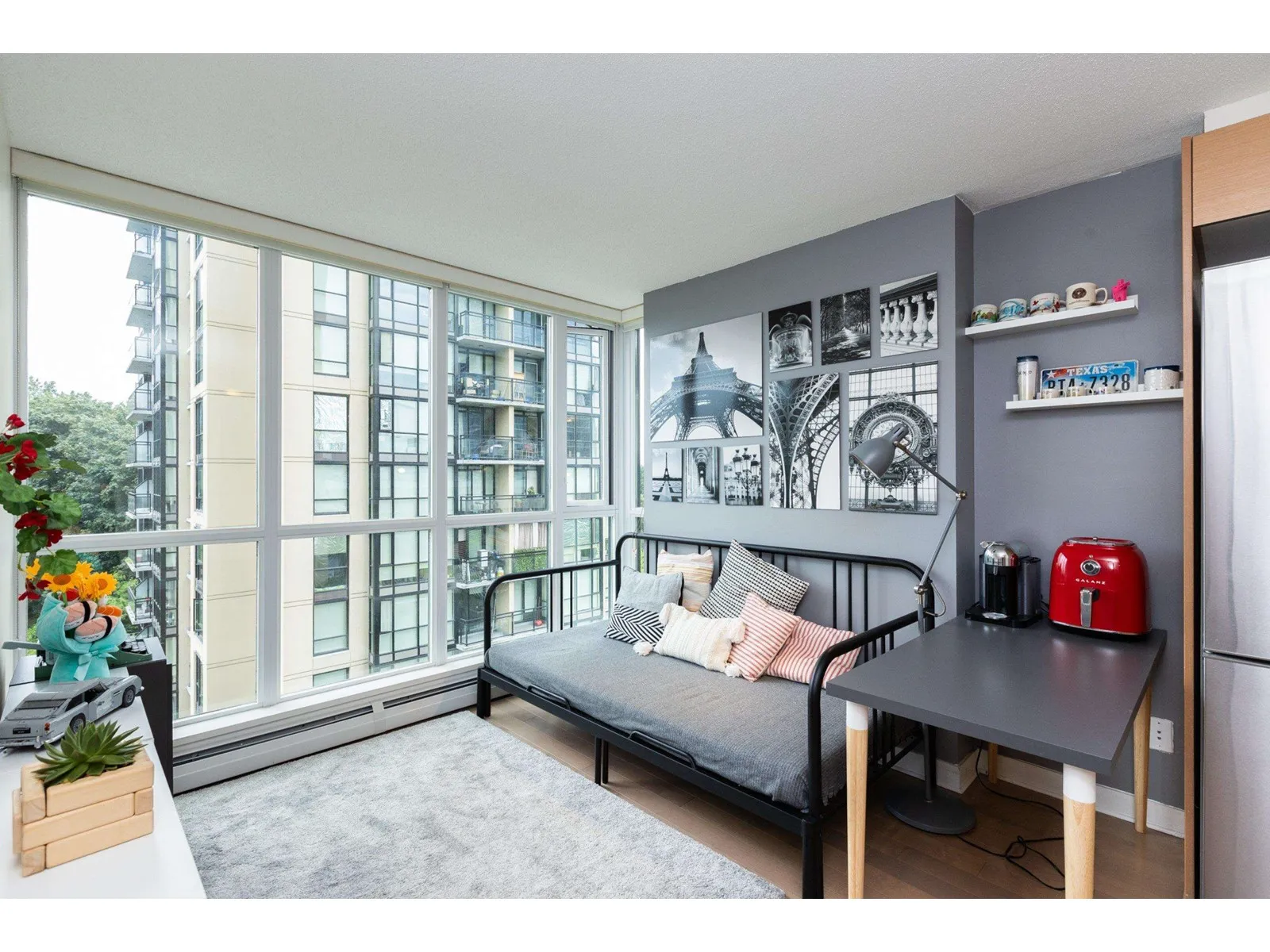 Cozy, quiet and turn key one bedroom + den unit is away from skytrain track, facing courtyard with good view! BRAND NEW floor, high-end stainless appliances, one parking P1-#50 and one locker P4-#441, hot water is included in strata fees. Few minutes walking to skytrain Station, Steps to park, new library, City Hall, TD Bank, Central shops, Walmart, Shoppers Drug Mart, SFU, close to T&T Supermarket. Owner occupied with a flexible possession date! Great for investor and the first time buyer, don't miss it! (id:27476)