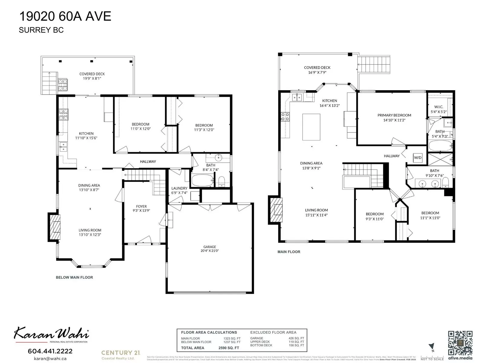 Spectacular, fully updated 5 BED, 3 BATH two-level home with a fantastic MORTGAGE HELPER in a serene, central neighbourhood. Enjoy a spacious, fenced backyard, a large 2-car garage, and ample parking. This beautifully renovated home features modern KITCHENS, stylish BATHROOMS, updated FLOORING, fresh paint, and an elegant FIREPLACE. Take in stunning MOUNTAIN VIEWS from the bright living room. Relax on COVERED DECKS both upstairs and down, plus a large backyard PATIO perfect for entertaining. BONUS: Future SKYTRAIN access nearby adds incredible convenience. (id:27476)