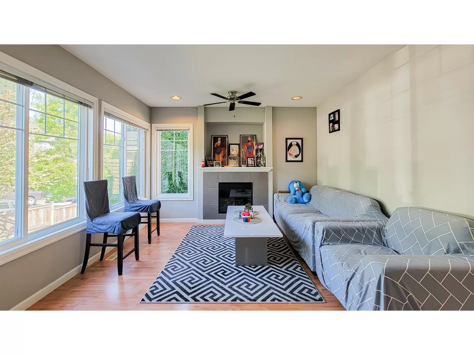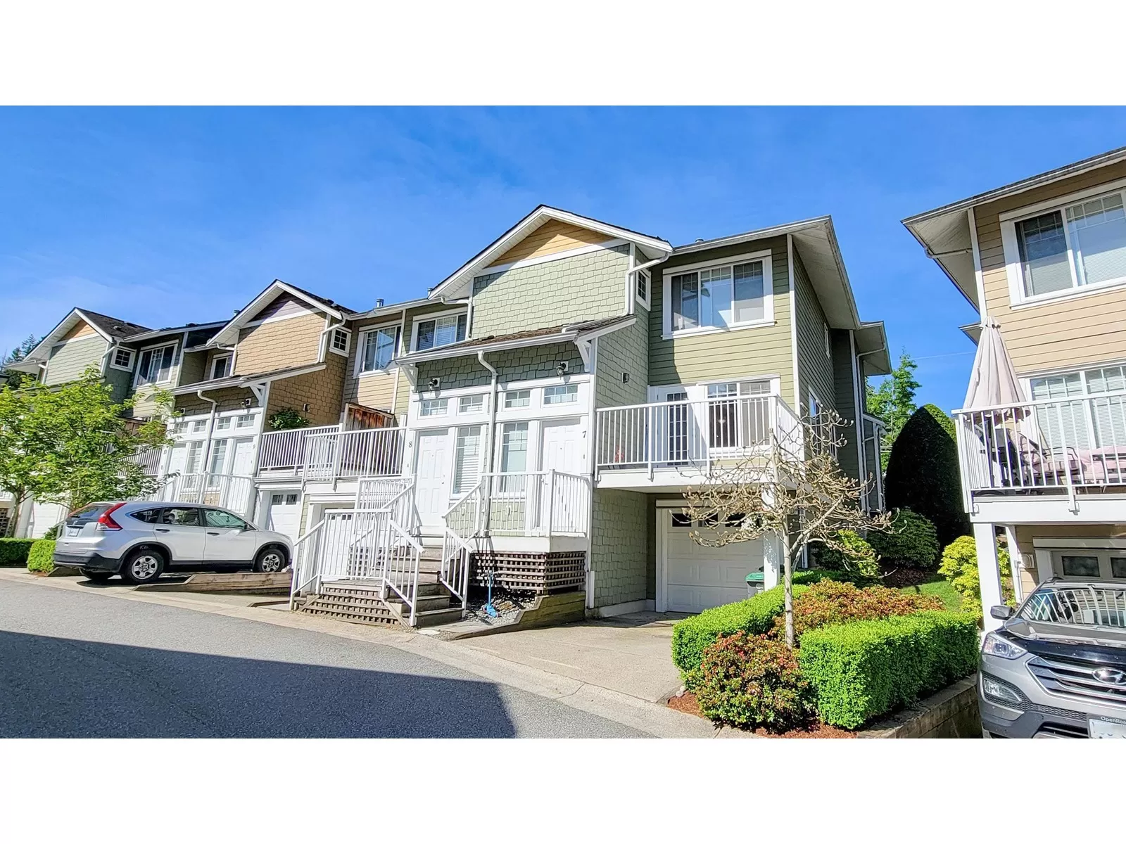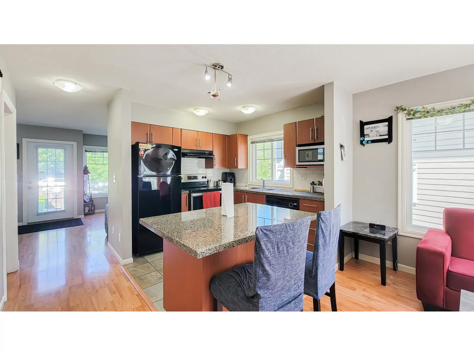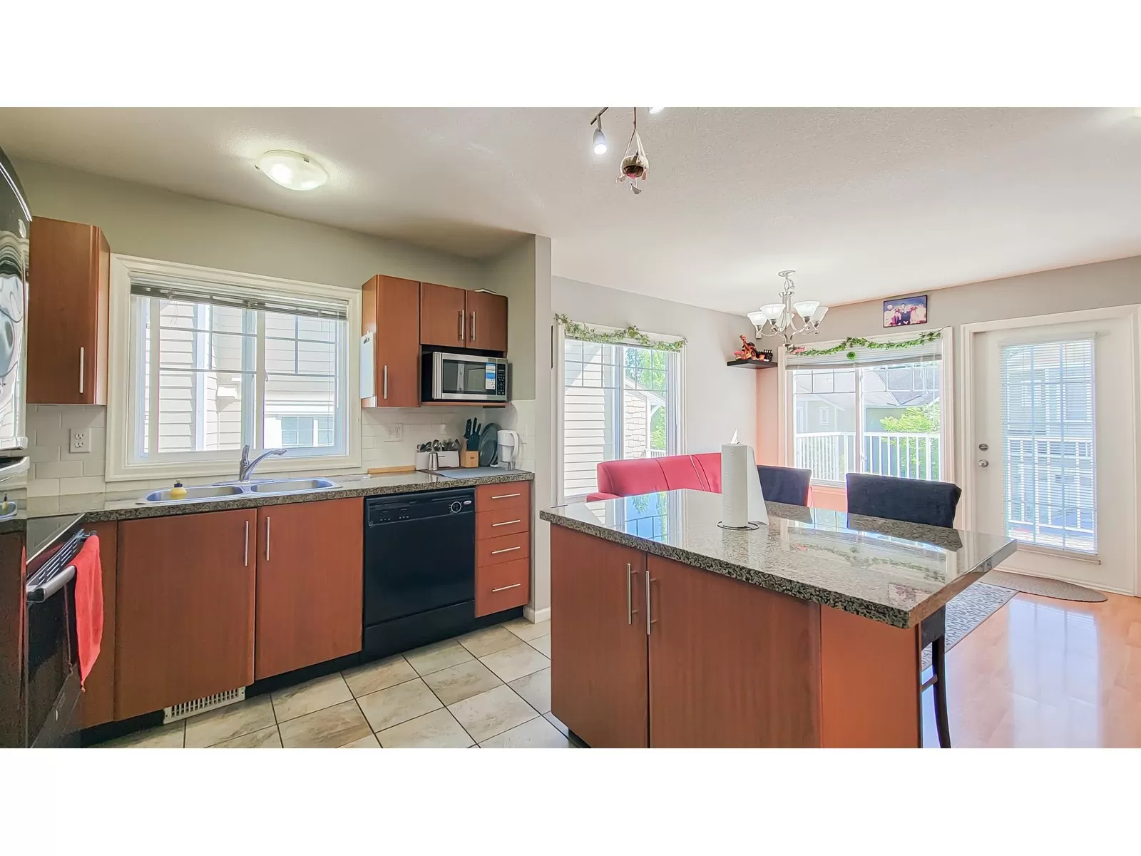 Welcome to Seneca Woods! Bright & spacious END UNIT townhome offering 3 beds, 3 baths & 1,879 sqft of well-designed living space. The modern kitchen features granite counters, a center island with storage & pantry-perfect for daily living & entertaining. Enjoy a cozy living room with electric fireplace, plus access to both deck & patio areas backing onto green space, perfect for relaxing or BBQs. Main floor has a convenient powder room. Upstairs includes a large primary bedroom with walk-in closet & ensuite, plus 2 additional bedrooms ideal for family or home office. The finished basement offers a big rec room with bar area, laundry & plenty of storage. Includes single garage, driveway pad & ample street parking. Located in a quiet, family-friendly complex close to schools, transit, shopping & parks. A wonderful place to call home! Showing by appointment only. Showing by appointment only. Easy to show. (id:27476)