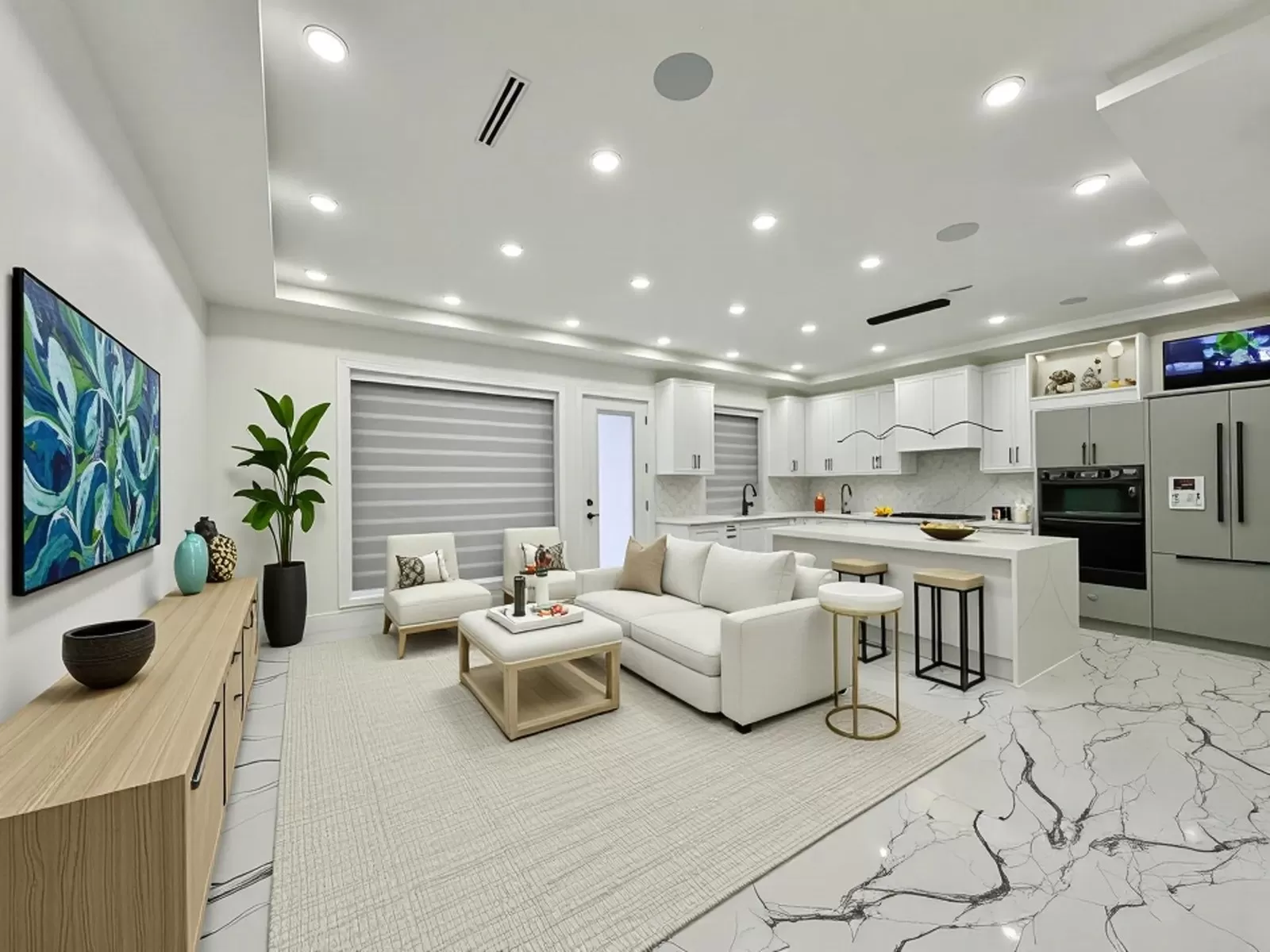 BRAND NEW HOME 200K below Assessment value!!! Two Level Custom finished home on over 8000sq lot. Double door entry to a wide open high ceiling Foyer, beautiful drops and lighting arrangements in Living/Dining area. Gourmet kitchen features acrylic cabinets, built-in Bosch Fridge, built-in wall oven/microwave, cooktop, dishwasher and a huge island for prep work and extra storage. Gas stove, 2nd dishwasher & pantry in the Wok Kitchen. Radiant heating, Central Vacuum, Security cameras, Security system installed for the new owner. EV charger, central vacuum in the double garage. Ample car & RV parking. 2 bed legal suite. Living, family & master bed are virtually staged. Low maintenance yard as finished with turf, paver & fully fenced. (id:27476)
