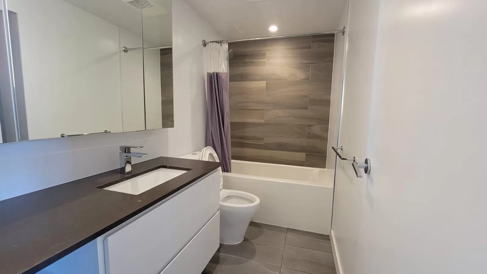 Welcome to King George Hub2 by PCI. This bright, south-facing 1-bedroom home boasts an efficient layout with floor-to-ceiling windows and a spacious private balcony. The open kitchen features quartz countertops, stainless steel, and integrated appliances. Building amenities include a rooftop lounge, a large fitness center, a party and games room, an outdoor BBQ area, a children's play area, and a theatre room. Enjoy unparalleled accessibility with King George Skytrain, Central City Mall, SFU Surrey Campus, Save-On-Foods, and a variety of dining and shopping options just steps away. Unit is Vacant, please schedule your appointment for viewing. Unit information: -493 sqft with air conditioning -1 Bedroom -1 Bathroom -1 parking Building Amenities: -Exercise Room -Lounge -Bike room -Courty (id:27476)