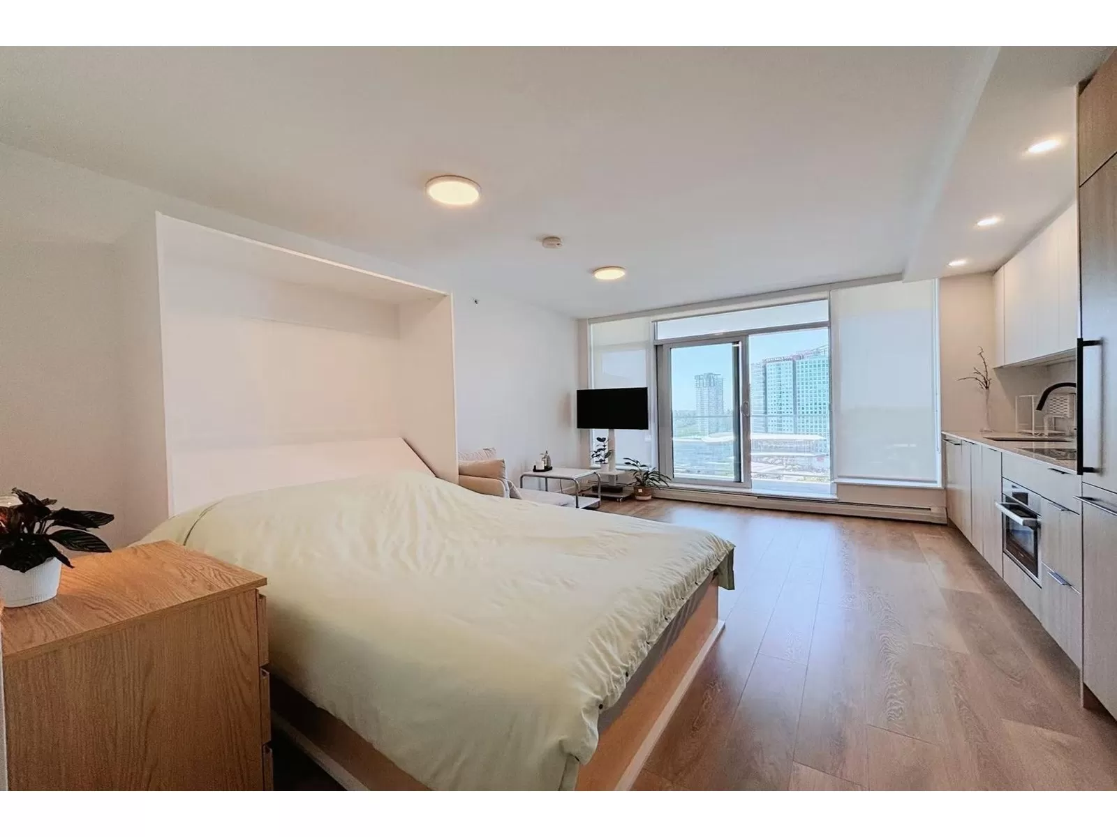 Welcome to Georgetown One by Anthem -- a vibrant community in the heart of Surrey Central! This stylish studio on the 21st floor features an efficient open layout, floor-to-ceiling windows, and stunning city & mountain views. The modern kitchen includes quartz countertops, stainless steel appliances, and an integrated oven-microwave combo. Enjoy a private balcony, in-suite laundry, and contemporary finishes throughout. Steps to SkyTrain, SFU, T&T, shops, and restaurants. Amenities include a gym, lounge, outdoor theatre, co-working space, BBQ area, and guest suite. Perfect for first-time buyers or investors. (id:27476)