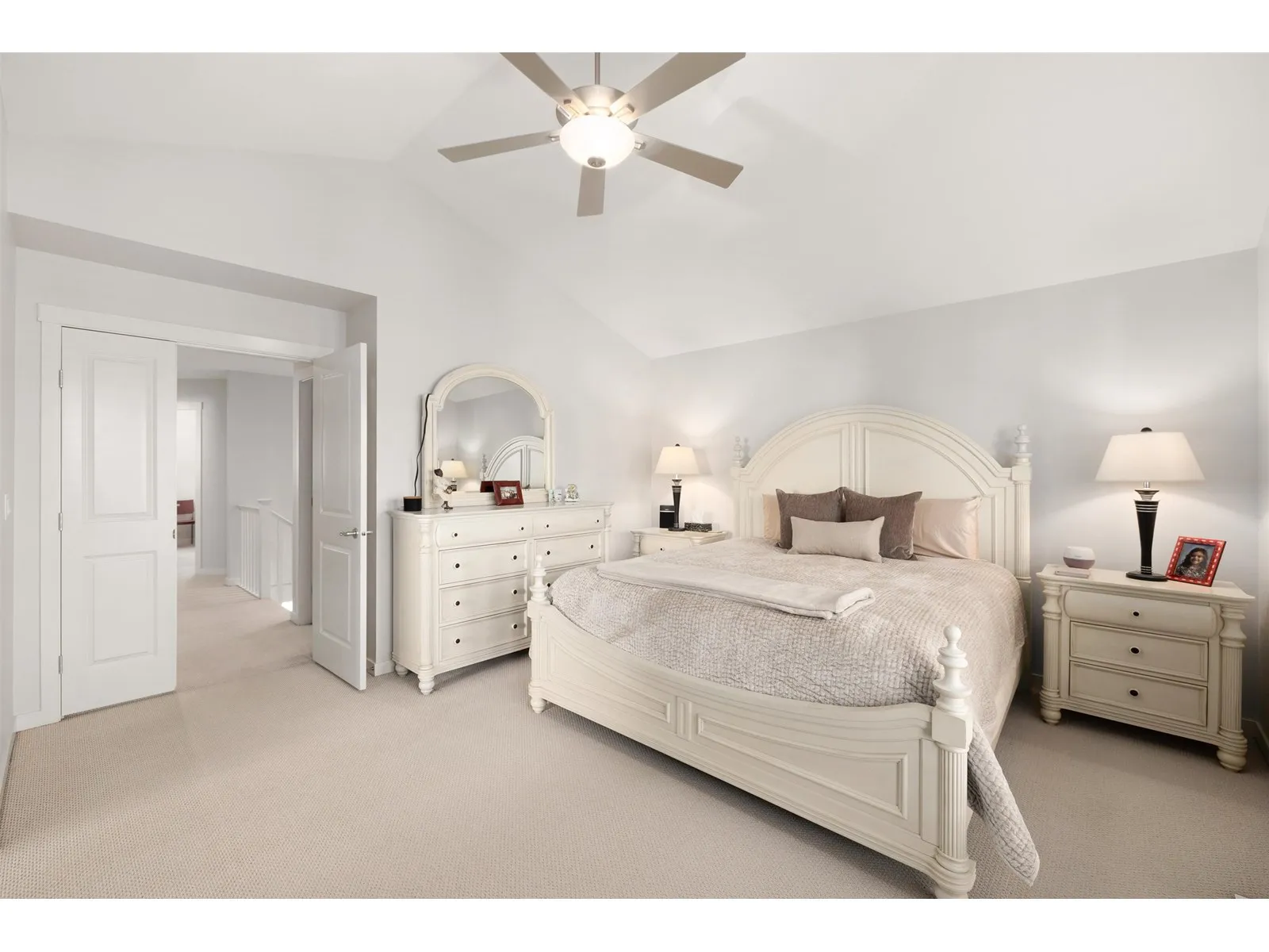 Beautiful Detached Home in Cambria at Rosemary Heights! Ideal for families or downsizers, this well-maintained home features Brazilian hardwood floors, a new custom kitchen with solid surface counters, large island, and high-end KitchenAid appliances with gas range. Freshly repainted interior, plus new furnace and A/C (2023). Bright open layout with a sunny backyard, patio, and lawn. The primary bedroom offers vaulted ceilings, a private balcony, and a stylish mid-century modern ensuite. Fully finished basement with 5th bedroom and spacious rec room. In-ground sprinklers front and back-just move in and enjoy! (id:27476)