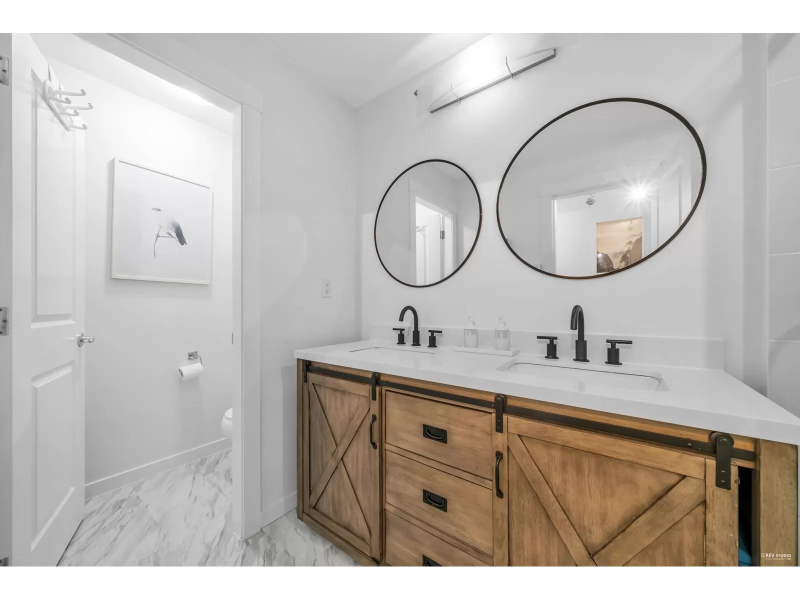 Welcome to Taylor by MOSAIC - a charming Georgian-style townhouse that combines comfort, style, and convenience. This bright and spacious home offers three bedrooms, 1.5 bathrooms, and 9-foot ceilings throughout. The main floor features durable laminate flooring and a large, open-concept kitchen with ample storage, perfect for everyday living and entertaining. Upstairs, you'll find two generous bedrooms, in-suite laundry, and a well-appointed full bathroom. Ideally located just a short walk to Holy Cross Regional High School and minutes from Surrey Sport & Leisure Complex, Transit, and Aquatic Park, with easy access to Fraser Highway, Highway 1, and Guildford Town Centre. Future-ready, this home is also close to the upcoming Fleetwood SkyTrain extension. Open House Sat Nov 15 from 2-4pm. (id:27476)