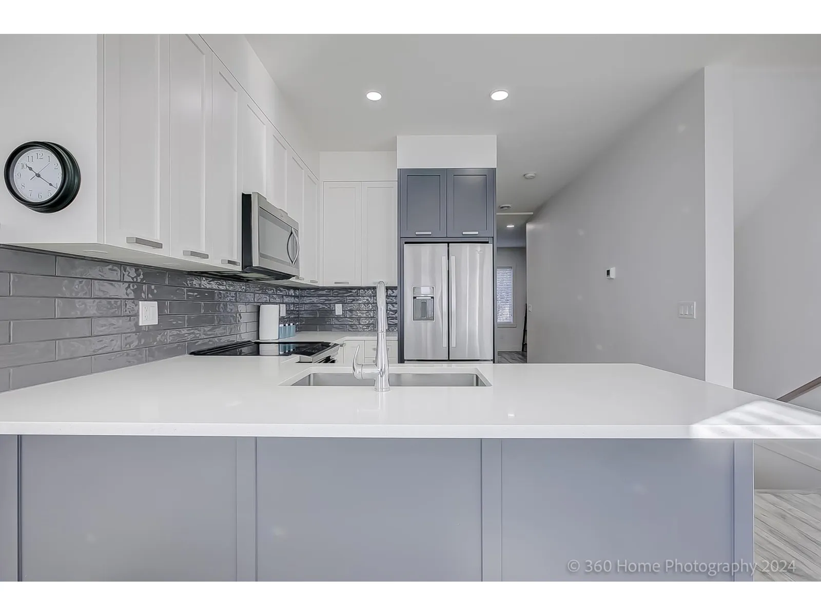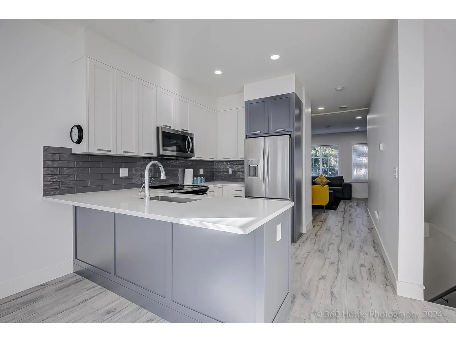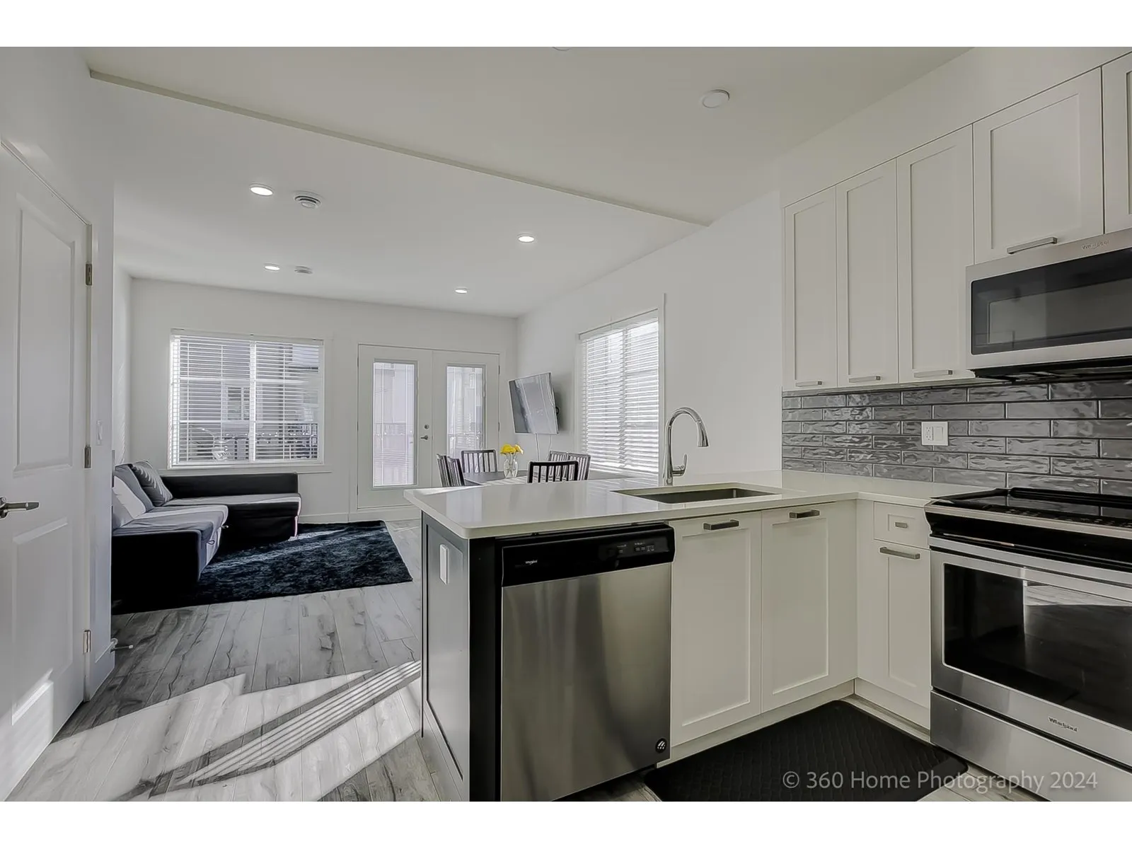 Amazing three-storey corner townhouse in prime Panorama Ridge area. Main level features two spacious, luminous living area with large windows and a kitchen boasting stainless steel appliances and quartz countertops. Nine-foot ceilings contribute to the overall sophistication. Upstairs, three generously sized bedrooms include a master suite overlooking a greenbelt, complete with ensuite and custom wardrobes. This unit offers a gas-outlet equipped deck, a double tandem garage with an extra exterior parking space, and much more! Also, two visitor parking spots beside the unit enhance convenience. Strategically located for easy access to essential amenities, and within the catchment of Panorama Park Elementary and Panorama Ridge Secondary Schools. This is the one you've been waiting for! (id:27476)