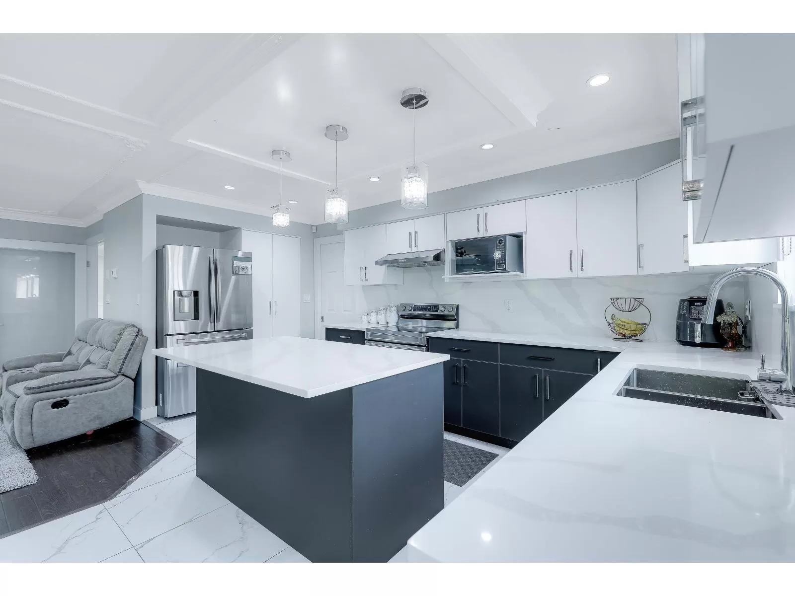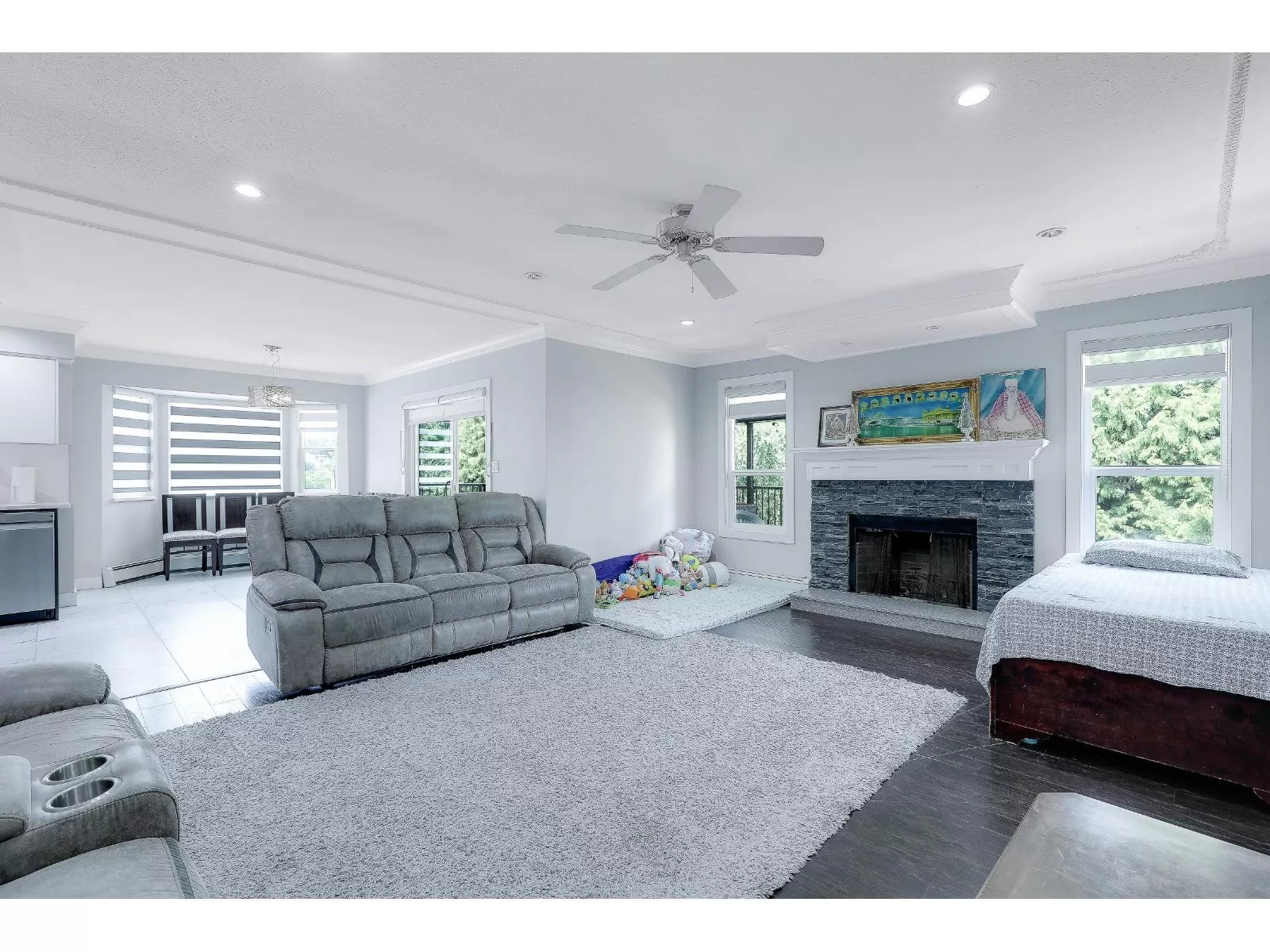 FULLY UPDATED FAMILY HOME with SUITES! This extensively renovated 8-bed, 4-bath home offers over 3,600 sqft of living space on a 7,060 sqft lot. The upper level features open concept living with 4 bdrms, while the lower level includes two self-contained 2-bdrm suites w/separate laundry; perfect as mortgage helpers. Upgrades include a brand-new kitchen with newer appliances, modern bathrooms, new flooring, fresh paint, updated lighting, custom blinds, closet organizers, a revamped patio, and more. Situated on a quiet cul-de-sac in the desirable Strawberry Hill area, just steps to Westerman Elementary/Strawberry Hill Elementary. Complete with a double garage and a large driveway - this move-in ready home is a must-see! Walking distance to Gurdwara, Mosque, parks, schools, transit and all other amenities. Perfect location!!! (id:27476)