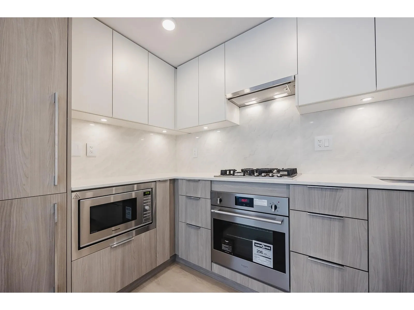 BRAND NEW MOVE-IN READY DESIGNER PENTHOUSE large 1 bed home features a functional & efficient layout with high 9' ceiling, sleek two-toned cabinetry, premium Italian Fulgor-Milano appliances w/gas cooktop, spa-inspired bathroom with deep soaker tub. Ideally located in the West Village in the LA inspired newly completed Melrose tower, 5min walk to Surrey Central SkyTrain, delectable dining, parks and more! Amenities: rooftop lounge, fully equipped kitchen w/ BBQ/outdoor pits, games room, children's play area, private co-work space, infrared sauna room, gym, yoga studio, spin room, outdoor tai chi studio. Includes 1 bike stall, 1 parking and bonus closet organizer in the bedroom! Call today for a private viewing. (id:27476)