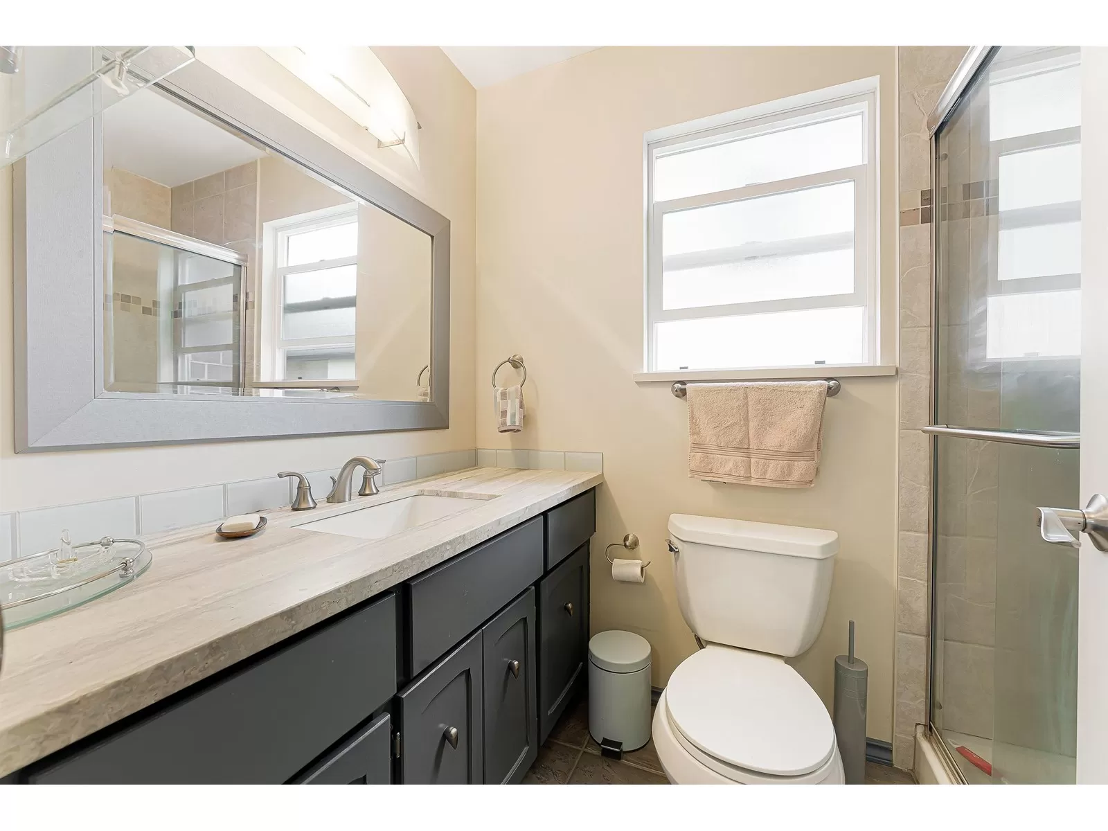 Super comfortable, 1783 sq ft 3 bedroom, 3 bath, family home situated on a gorgeous 7936 sq ft corner lot with R3 Zoning within Surrey's new "frequent bus stop" zone. This home was nicely renovated about 22 years ago and has been meticulously maintained and shows pride of ownership. Walk in through a small entry room and into an open living space with gas fireplace and hardwood floors. Nicely appointed kitchen with newer appliances and granite countertops, french doors open to a stunning back yard deck. A spacious family room with gas fireplace and a walk out to a beautiful private patio with pergola. Upstairs has hardwood floors, 3 nice sized bedrooms and 2 updated bathrooms. The primary has ensuite. Cozy family home now and great development potential in future. Don't miss this one!!! (id:27476)