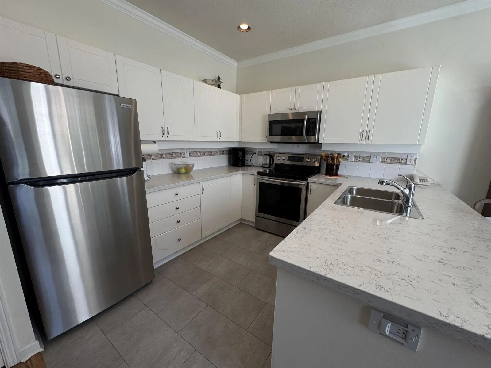 Ponderosa Station! Gated Community. Rancher style home with 9' ceilings. Formal living room with gas F/P & Dining area. Large kitchen with white cabinets, quartz counters, S/S Appliances with brand new Fridge. Eating area has Sliding Doors to Sunny South exposed yard with private patio and awning. Cozy Family Room with Gas F/P off kitchen area. Primary bedroom with 5 pce. ensuite. 2nd bedroom is well separated for privacy. Radiant in-floor heating throughout (with new boiler) & new tankless Navien hot water heater. Front yard with New Gate for security. Excellent club house featuring: large exercise room, games room with pool table. Walk to Southpoint Mall for Shopping, Restaurants, Transit & much more. No Age Restrictions & No Dog Restrictions for Size & Type of Breed. Take Advantage!!! (id:27476)