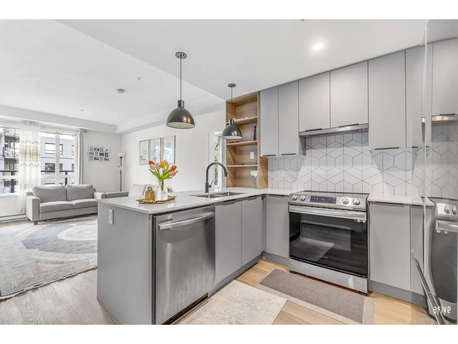 Welcome to Hendrix -- a beautifully designed and exceptionally clean 2 bed, 2 bath unit with an amazing floor plan. This bright and modern home features a spacious living area, in-suite laundry, polished quartz countertops, stainless steel appliances, and large windows with a lovely view. Enjoy one secure parking stall and a storage locker. The building offers top-tier amenities including a fully equipped gym, lounge, party room, BBQ area, and more. Located just minutes from Gateway SkyTrain, SFU, shopping, parks, and restaurants. A great home in a reputable building -- perfect for living or investment! (id:27476)