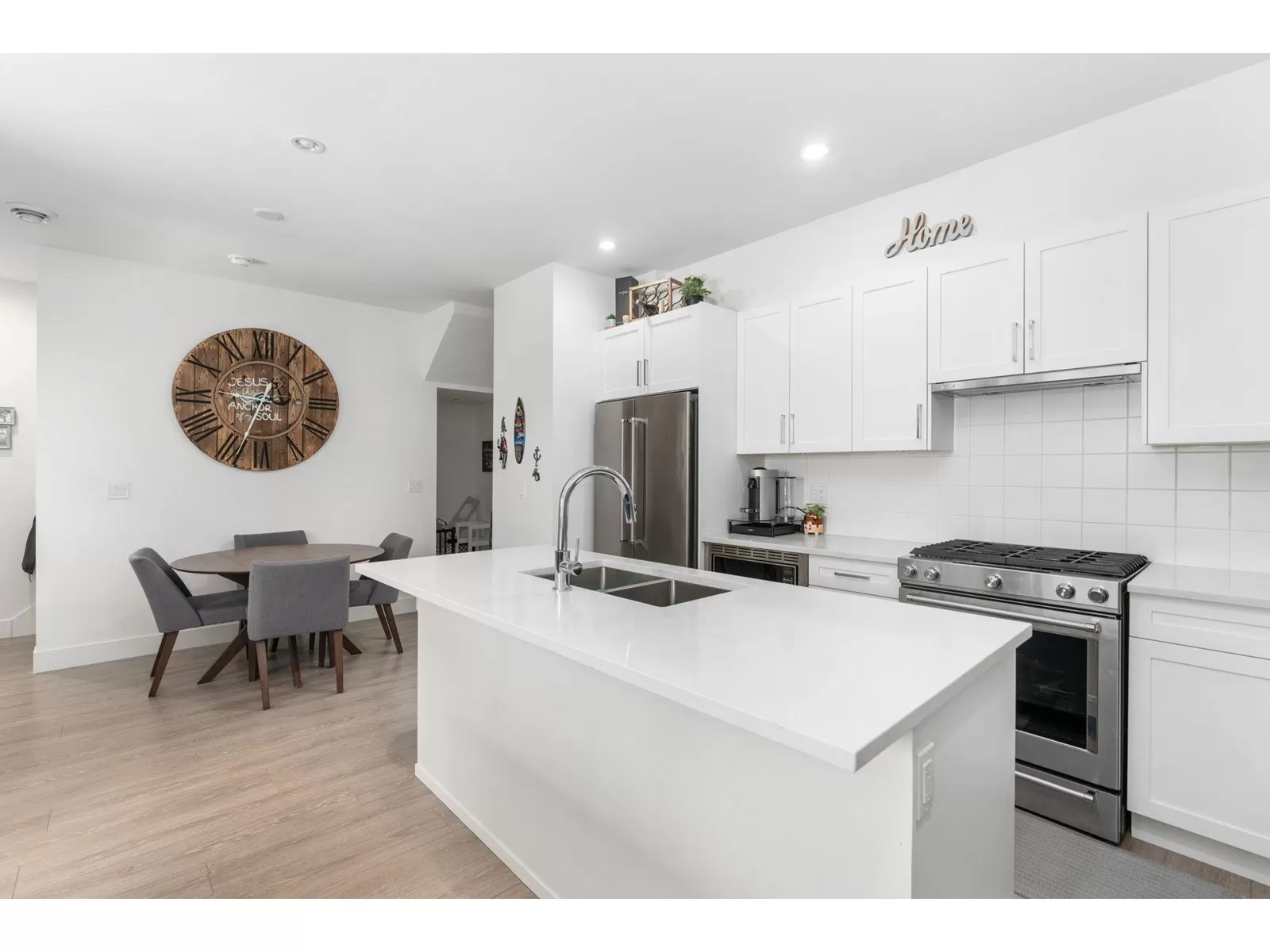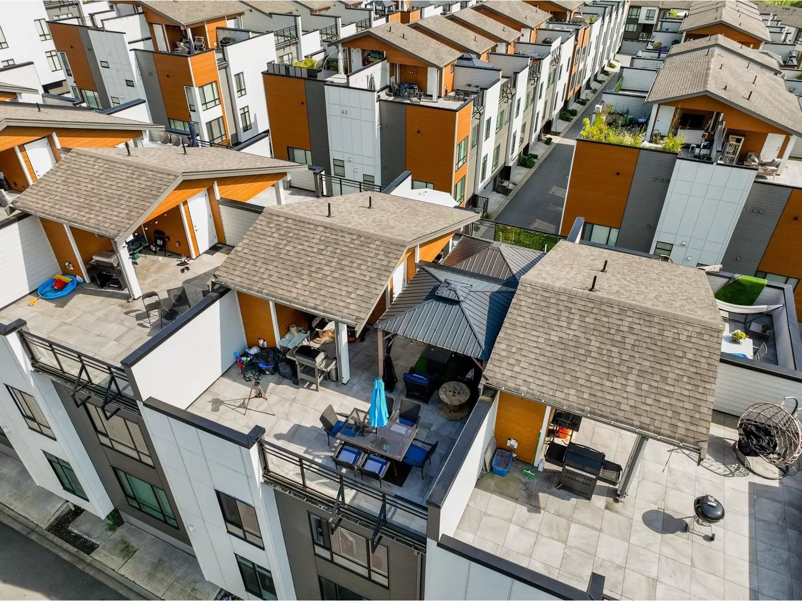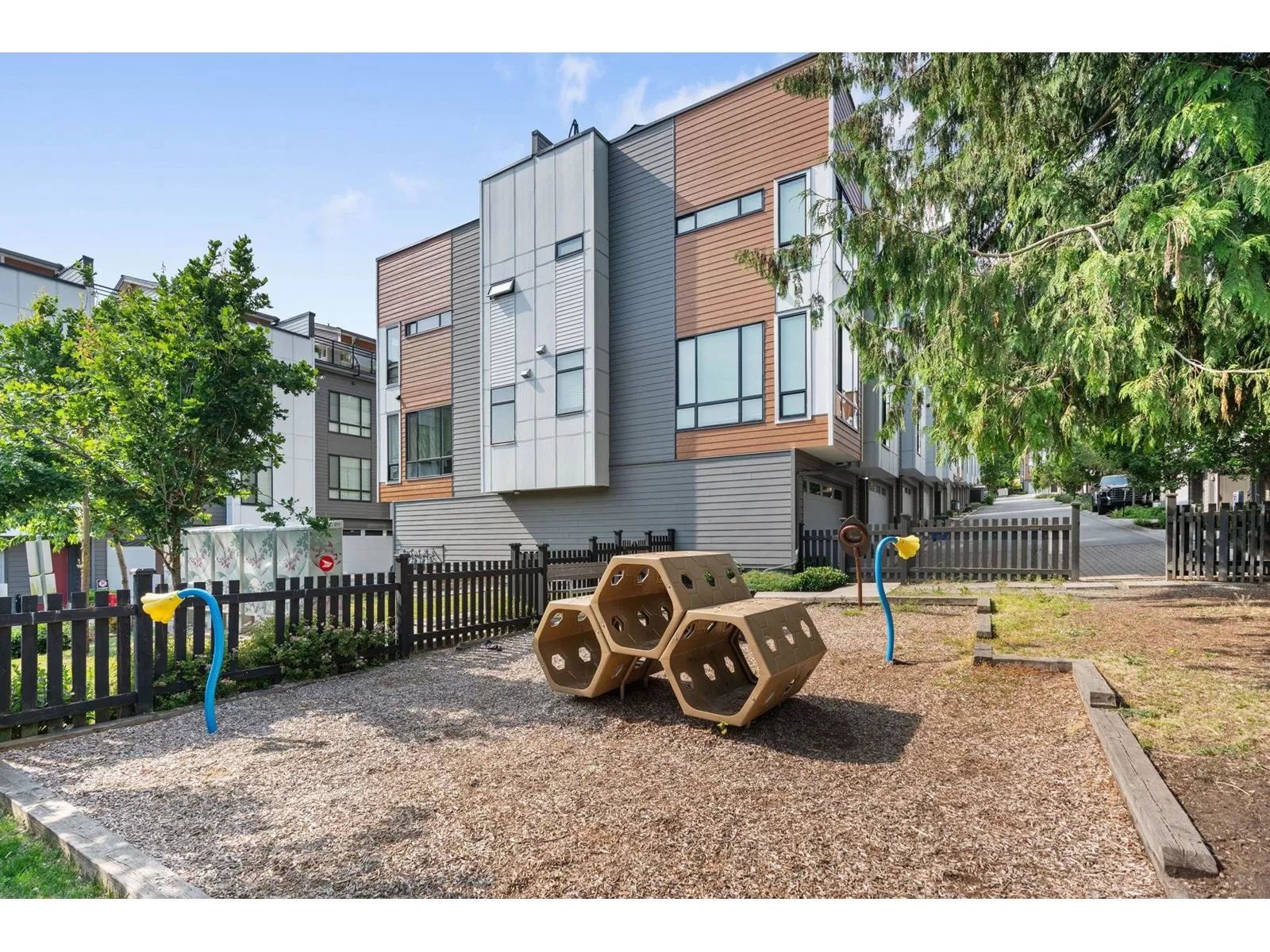Welcome to BERKELEY VILLAGE. This unit is bright, spacious, and packed with value in SOUTH SURREY! This 2 bed + den, 2.5 bath townhome features a sleek open concept layout with 9' ceilings on main floor, quartz counters, Kitchen Aid appliances, a 5-burner gas range, powder on main, and side by side garage. Large windows fill the space with natural light. Upstairs offers two bedrooms, including a primary with a spa inspired ensuite. Enjoy your private 463 sqft ROOFTOP DECK, perfect for relaxing or entertaining. Amenities include: gym, guest suite, lounge and more. Centrally located steps away from brand new elementary school, Grandview shops, restaurants, Grandview Aquatic Centre, and minutes to White Rock Beach, HWY 99, and more. (id:27476)