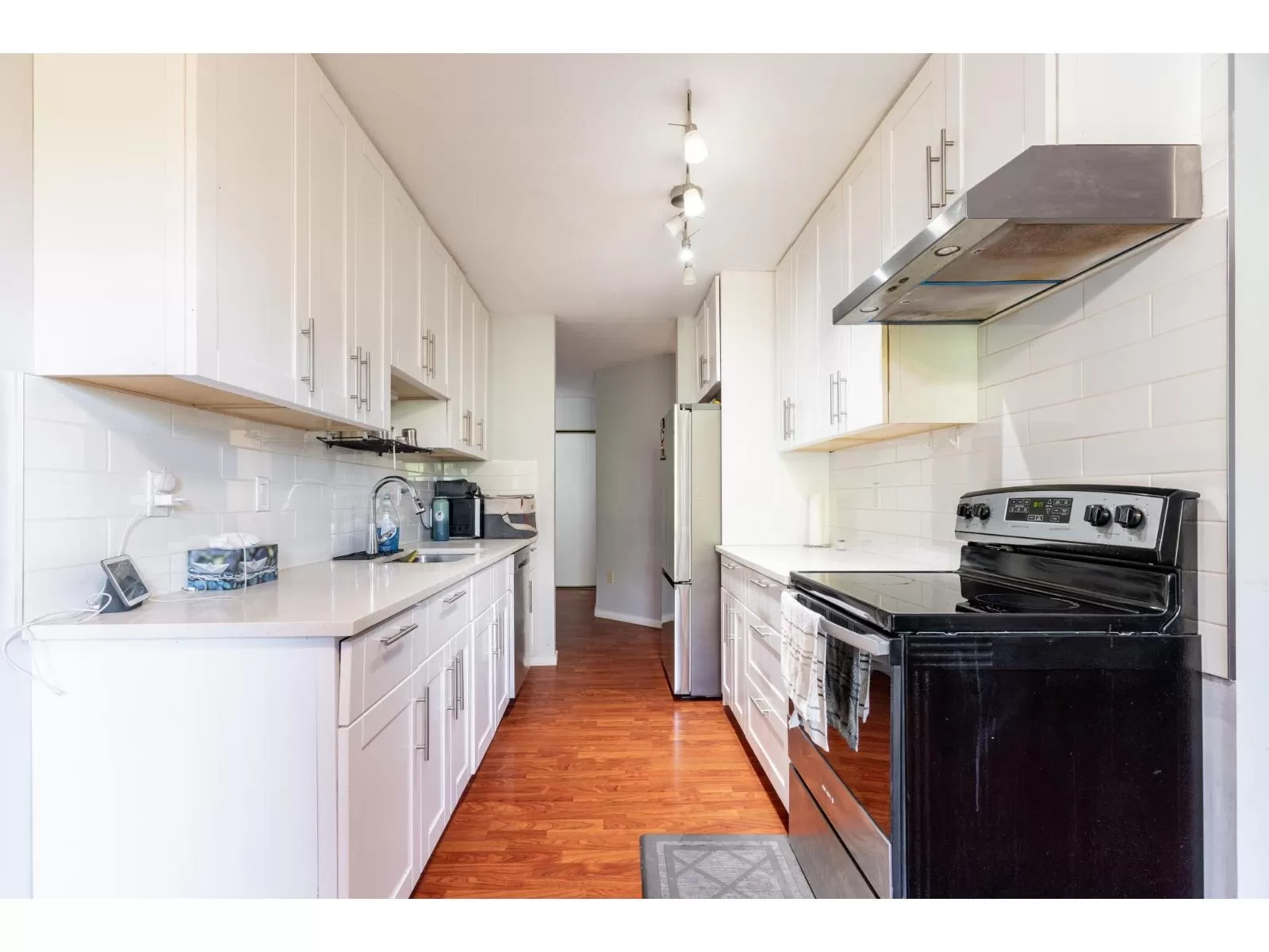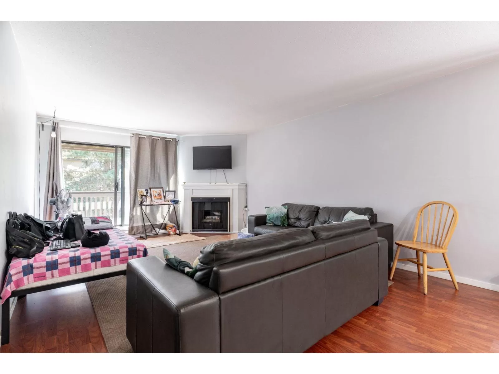 This well-maintained 2-bedroom, 2-bathroom bright corner unit in the centrally located PARKWOODS complex is perfect for first-time buyers and investors alike. Featuring a spacious living room with a cozy gas fireplace, the unit also offers an extra-large concrete patio with a rock garden, providing an inviting outdoor space. The tiled and updated kitchen and in-suite laundry add to the convenience of this home. Ideally situated, it's close to a bus stop and within walking distance of King George Skytrain Station, Surrey Central Mall, Walmart, T&T Supermarket, as well as both levels of schools. With banks, doctors, and Surrey Memorial Hospital nearby, this property offers both comfort and accessibility. Don't miss out-schedule your private viewing today! (id:27476)