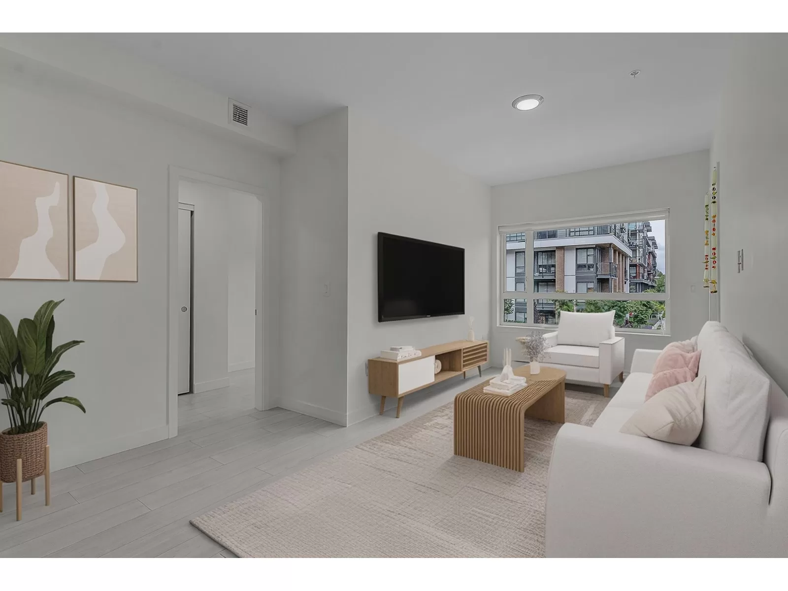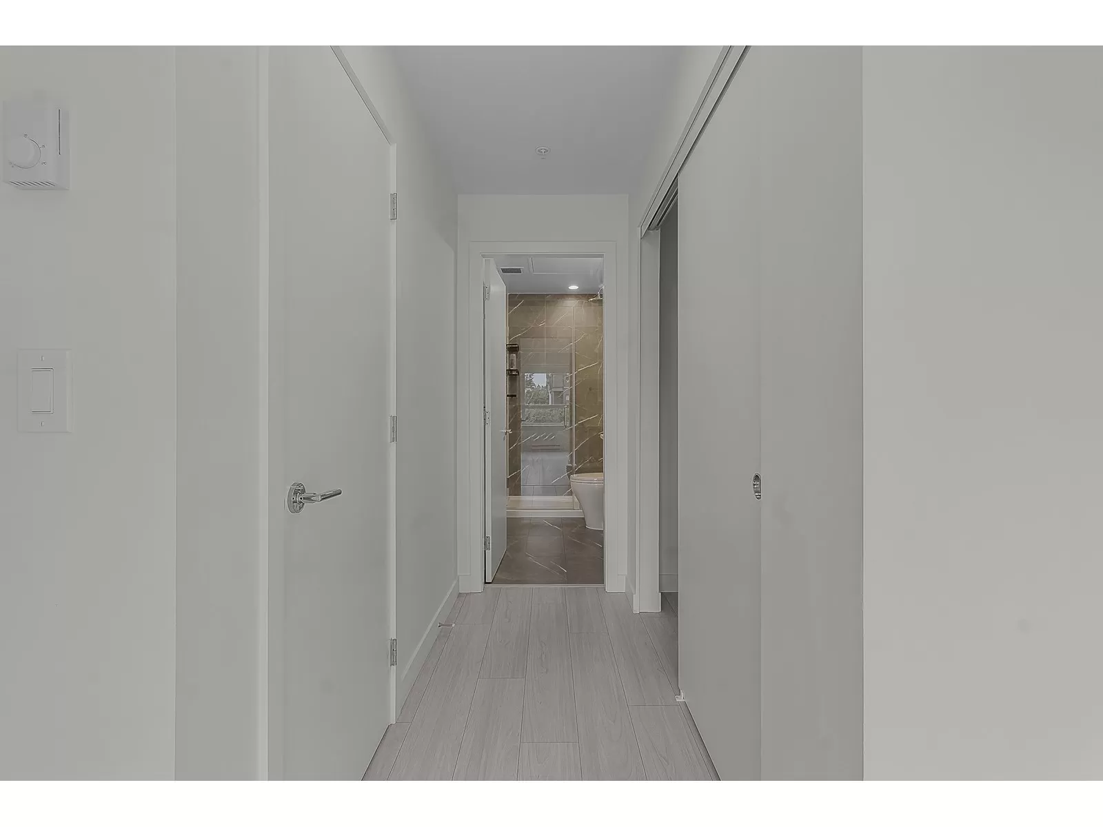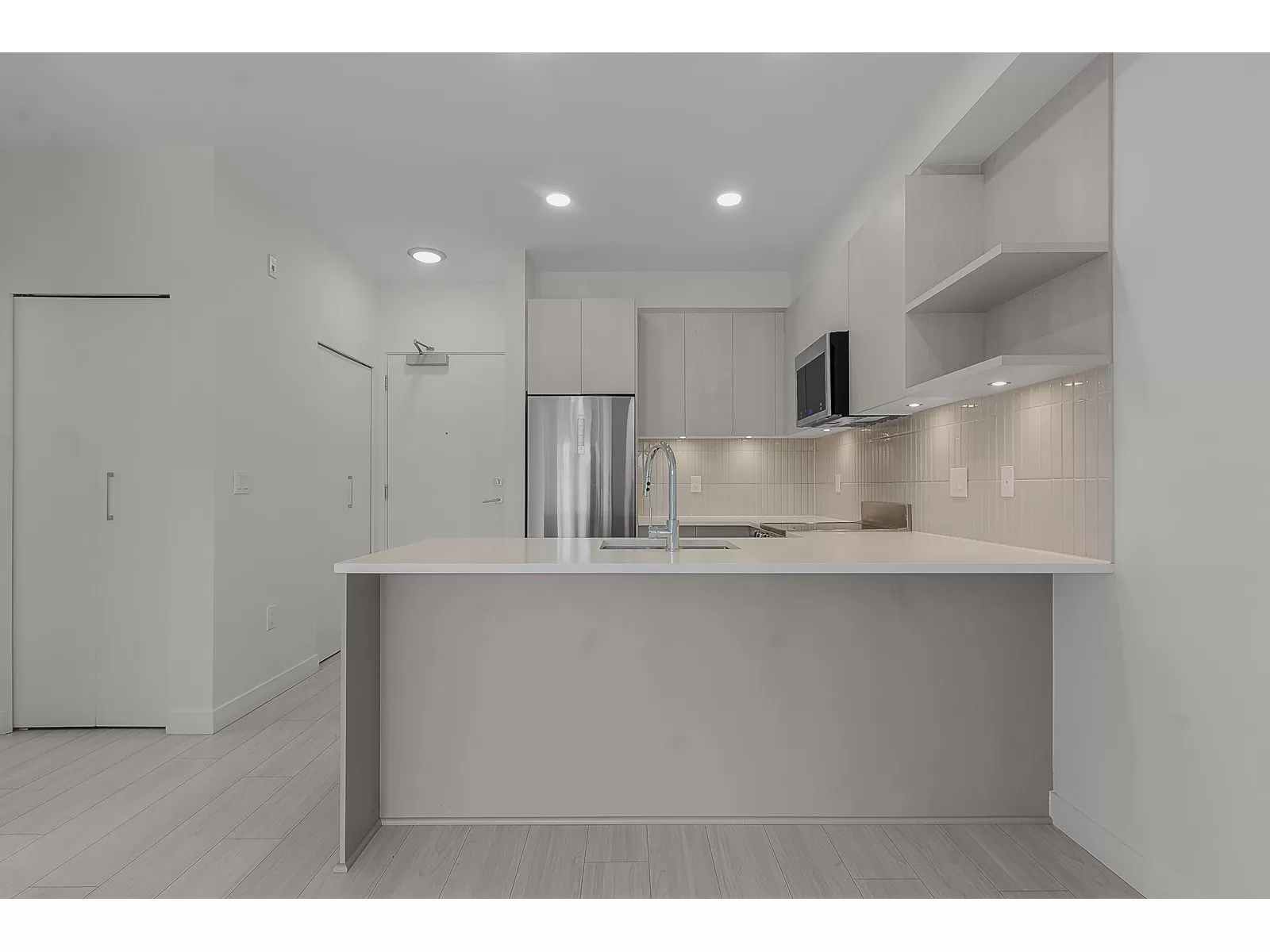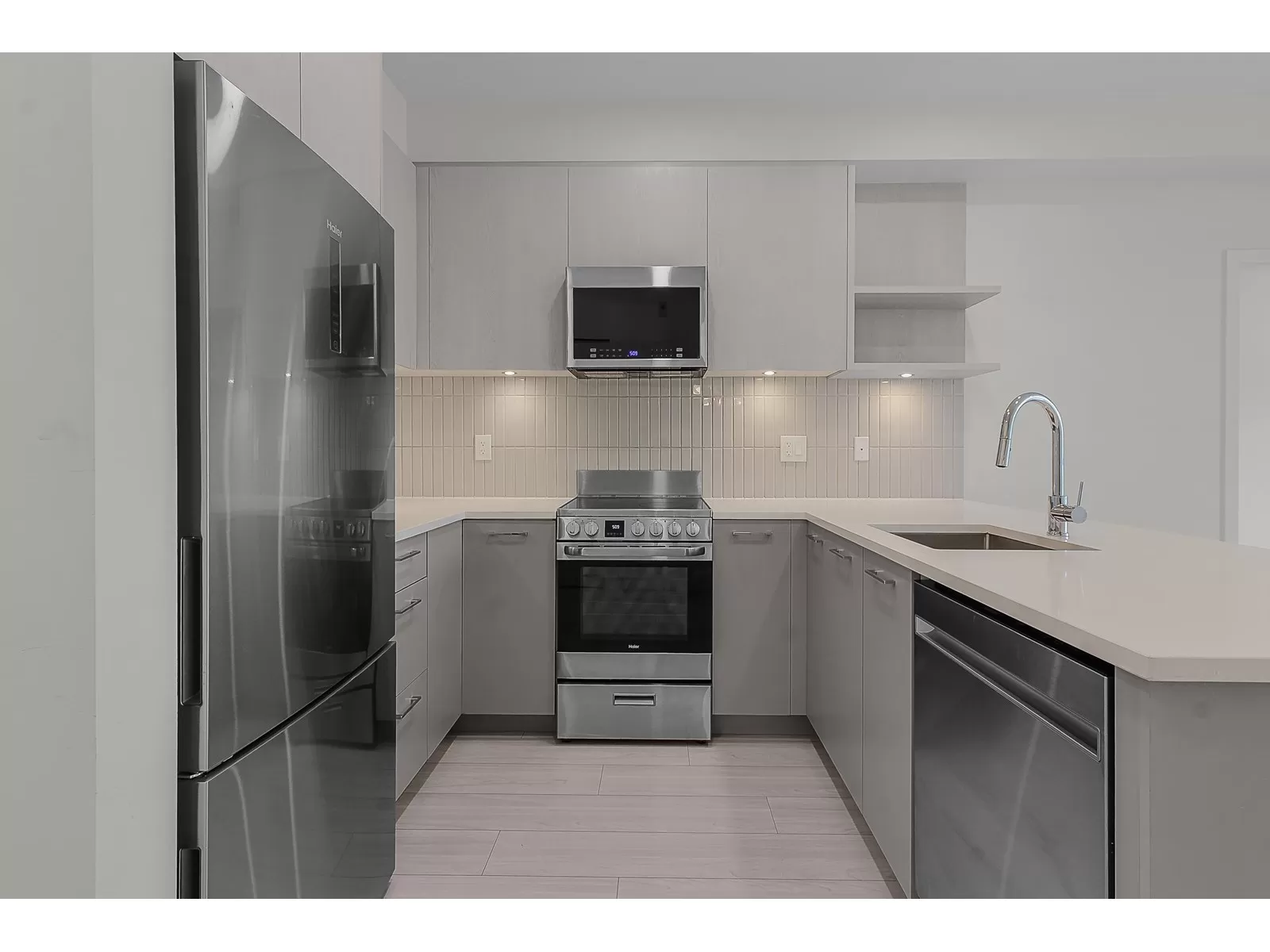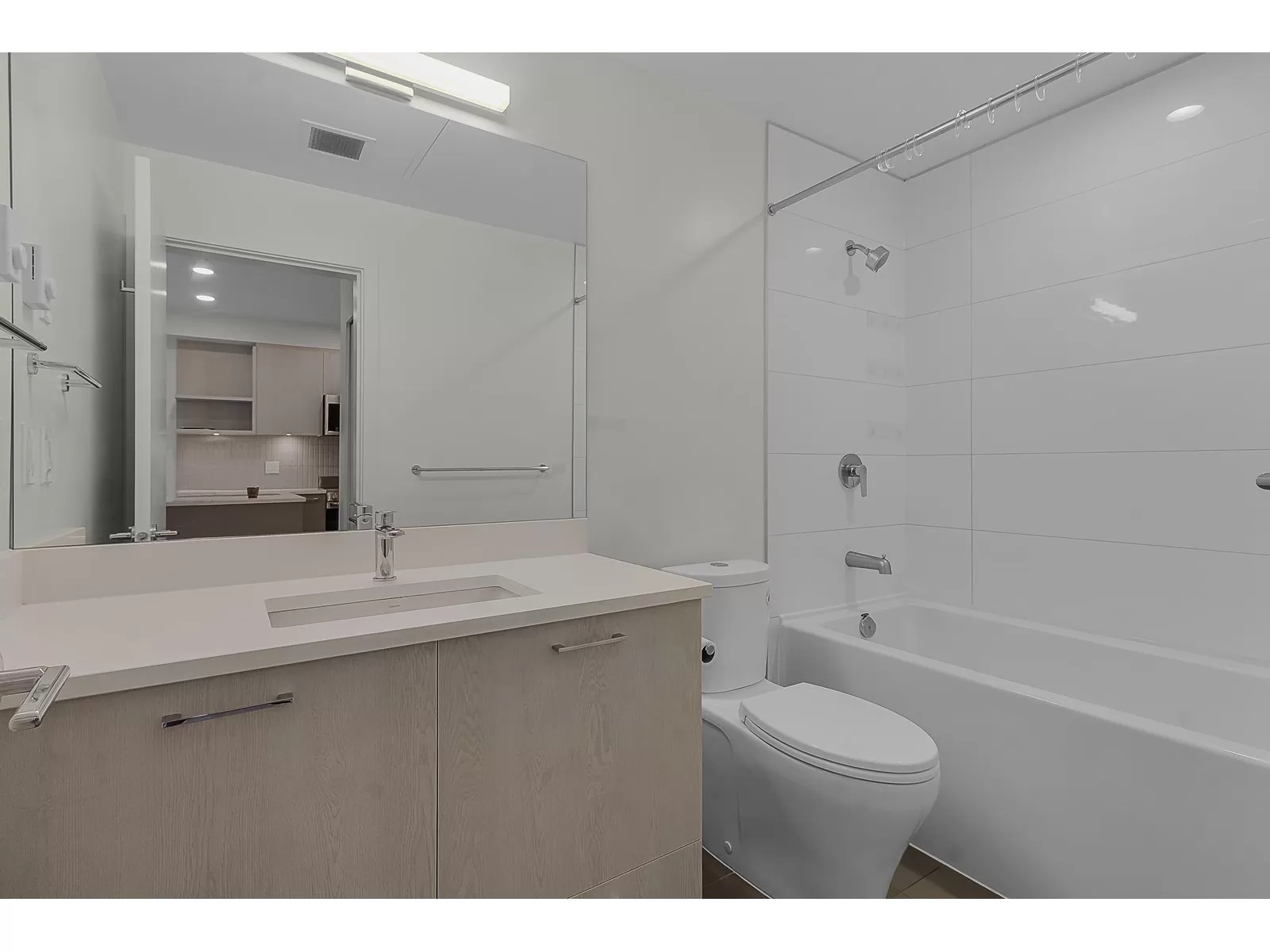 Welcome to this stunning 2024-built 2 bed/2 bath home, offering 737 sqft of bright, open-concept living & 70 sqft balcony. Beds are positioned across from each other for privacy, while large windows fill every corner with natural light & beautiful views. kitchen features quartz countertops, under-cabinet lighting, premium stainless steel appliances, light laminate flooring throughout. Enjoy exceptional amenities including secure parking, storage locker, a party room with kitchen, business center, fireside lounge, fitness room, workshop, community garden, outdoor BBQ areas, and a playground. Located under 5 mins to Surrey City Centre, Guildford Mall, Gateway SkyTrain StationThis home offers modern design, prime location ,perfect for first-time buyers or investors in growing Downtown Surrey (id:27476)