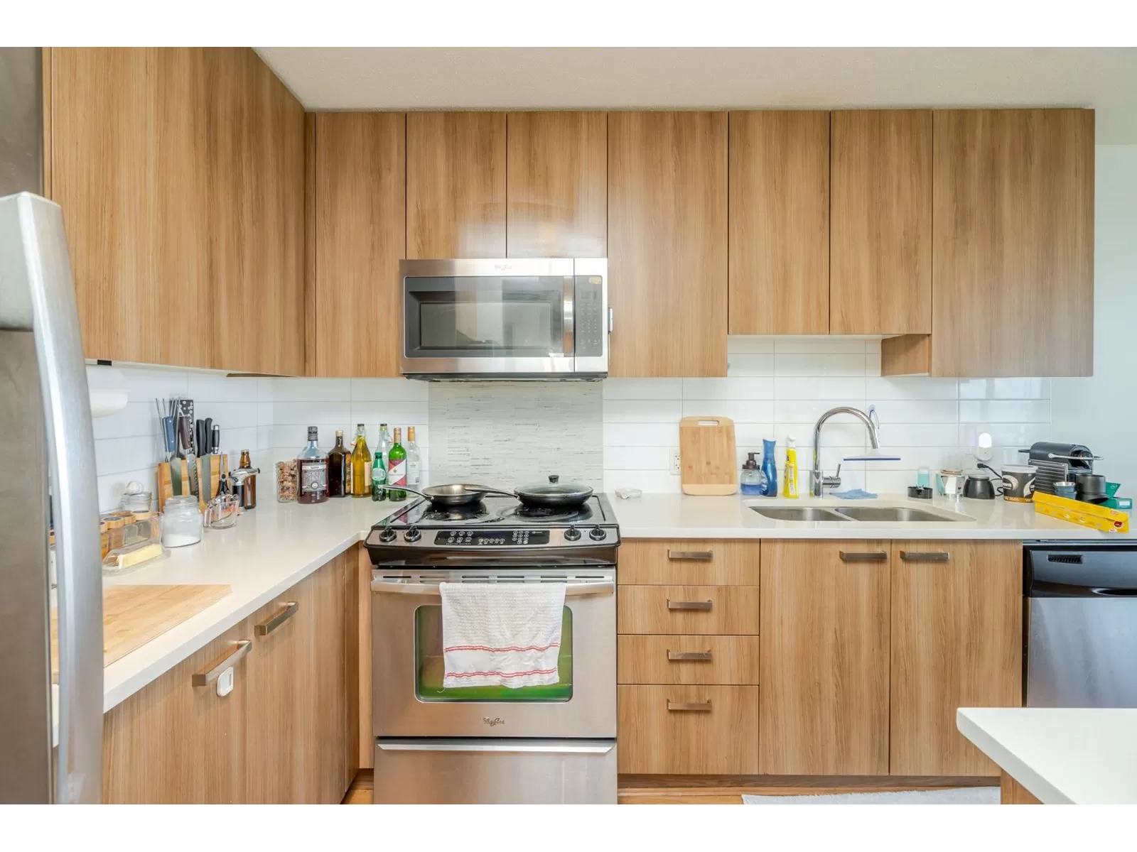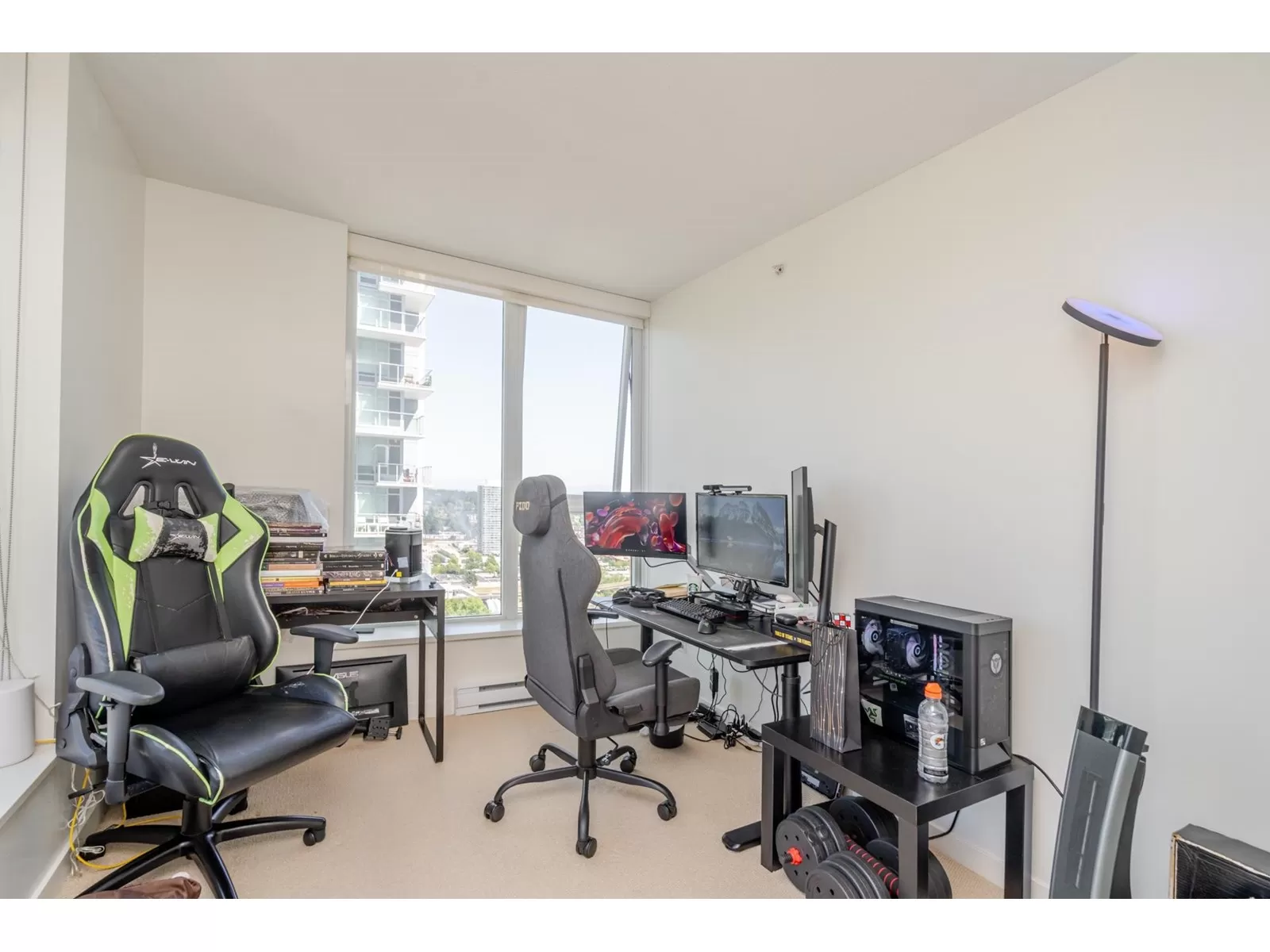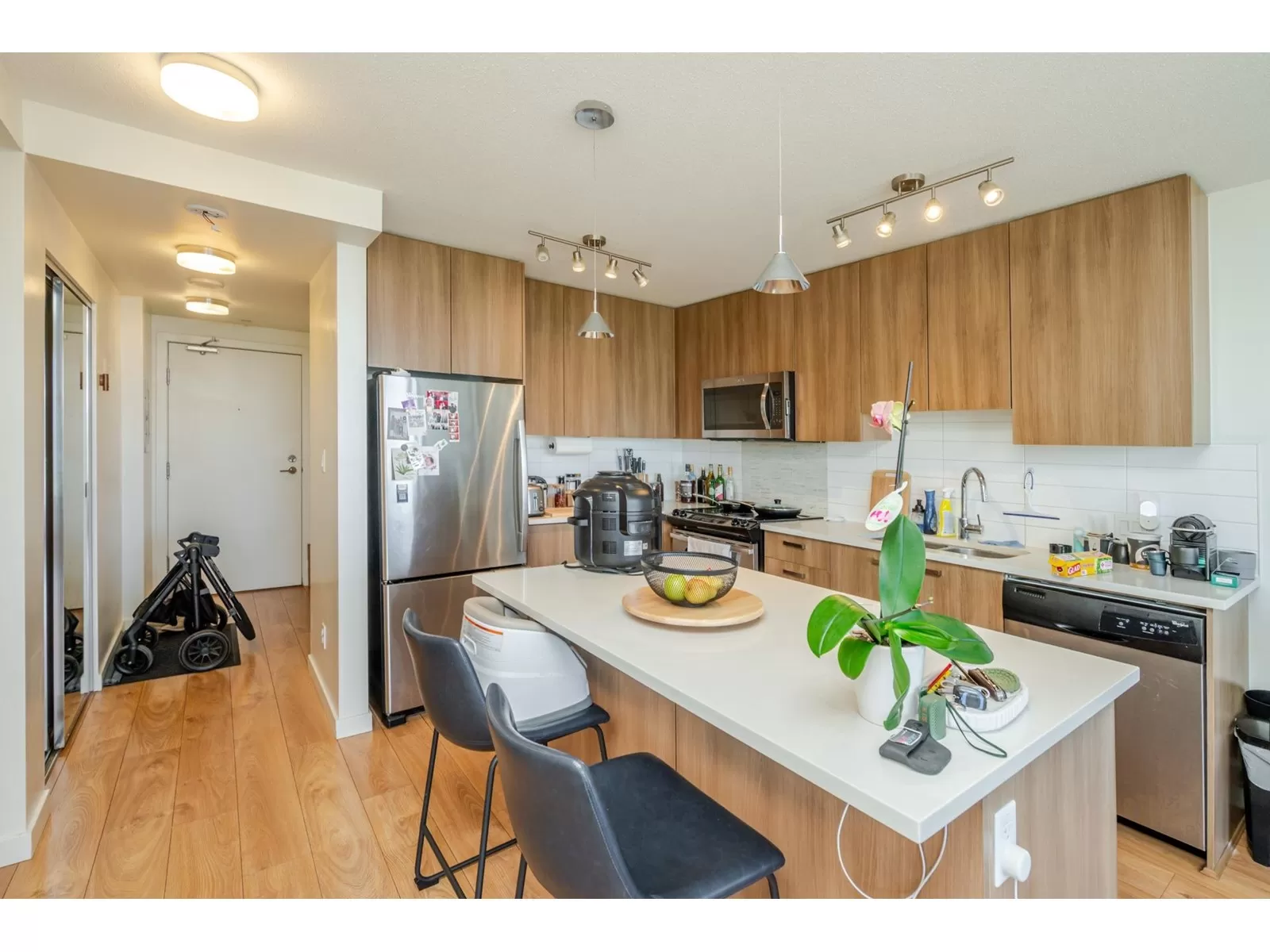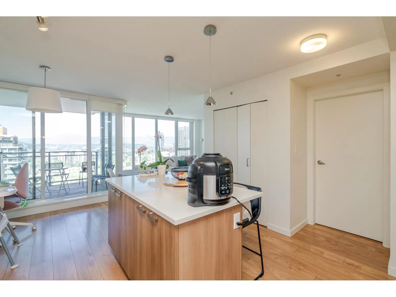 Prime Location in Surrey City Centre!, a well-crafted high-rise by a reputable local developer. This bright, 2 bedroom & 2 bathroom unit on the 31 floor features stunning city views, stylish quartz countertops, and durable laminate flooring throughout. Comes with 1 secure parking stall and 1 storage locker for added convenience. Enjoy top-tier amenities including a fully equipped gym, party and meeting rooms, media lounge, and a landscaped garden with a children's play area. Just steps from SkyTrain, SFU, KPU, Surrey Central Mall, City Hall, Library, and Holland Park. Ideal for first-time buyers or investors seeking solid value in a vibrant urban hub! (id:27476)