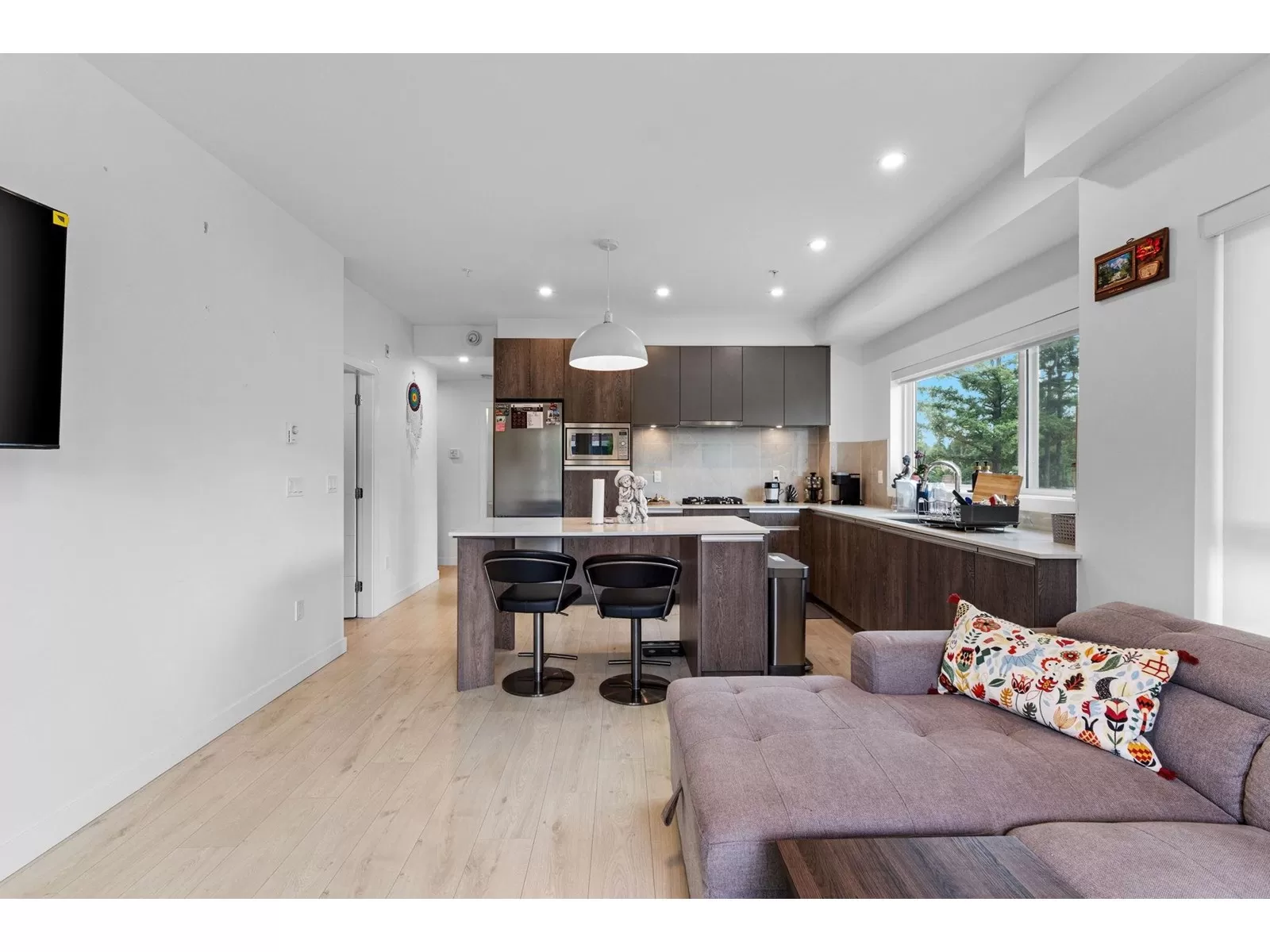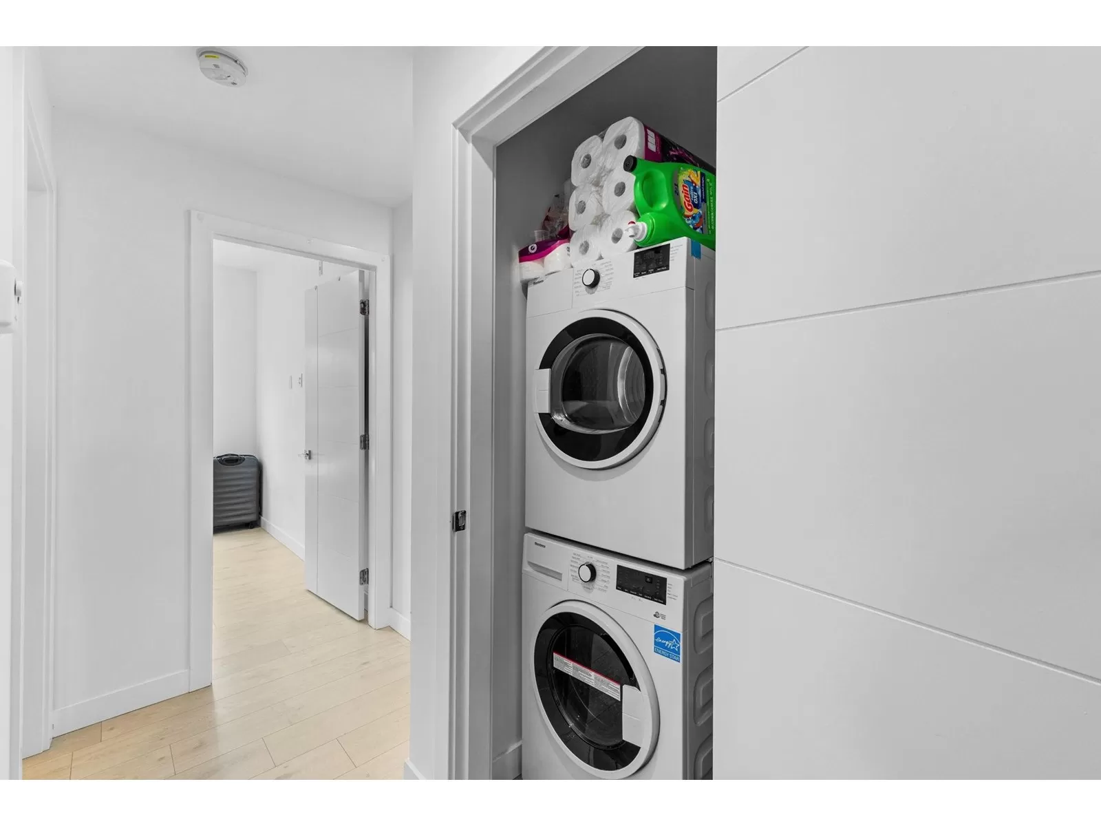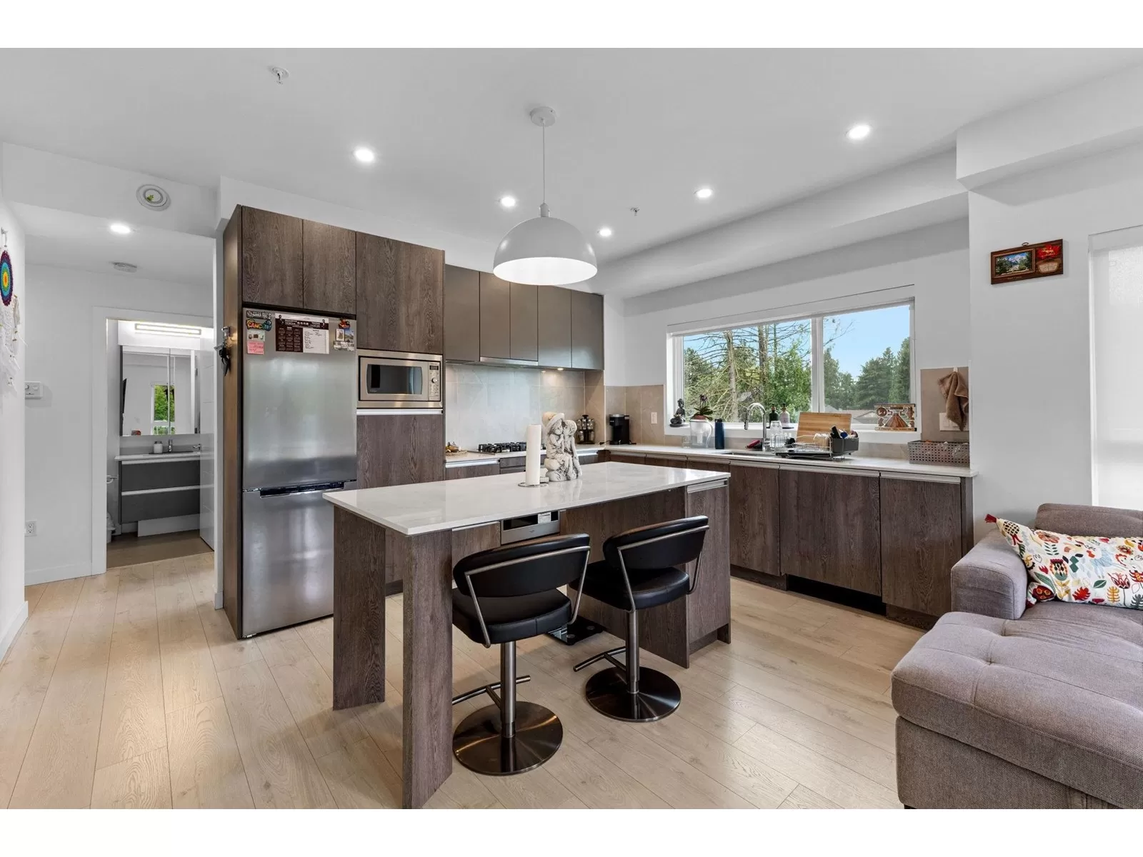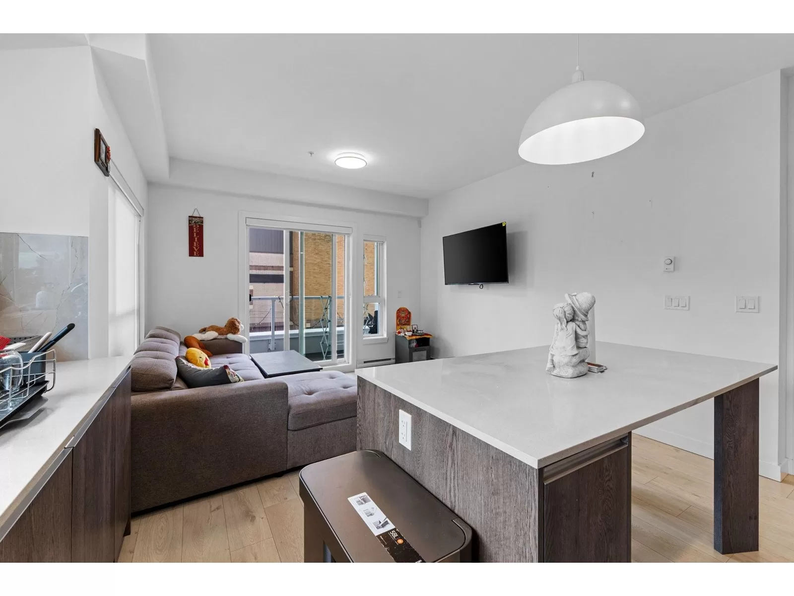 Welcome to Unison Uptown Surrey. 6 level mid-rise wood frame building located close to Hawthorne Park and Hen Long Asian Market. A stunning 2 bedrooms corner unit on the third level has a large outdoor balcony for you to entertain. The unit has a very spacious layout with an open concept kitchen. Granite counter top, maple solid cabinets, stainless steel appliances, and ensuite laundry. Close to school, Surrey Central Mall/Guildford Mall and all the main public transport, SFU and Community Center. This building has Gymn and this unit comes with 2 parkings and 1 storage. (id:27476)