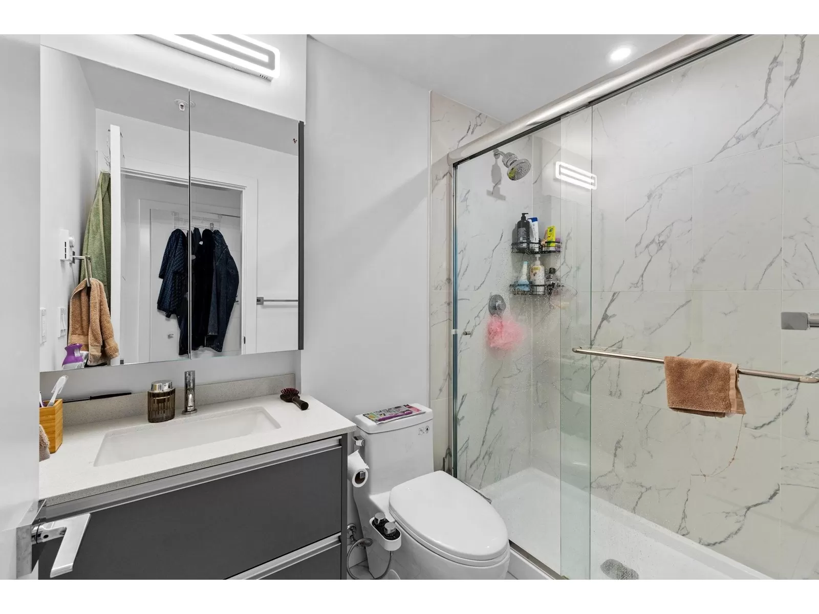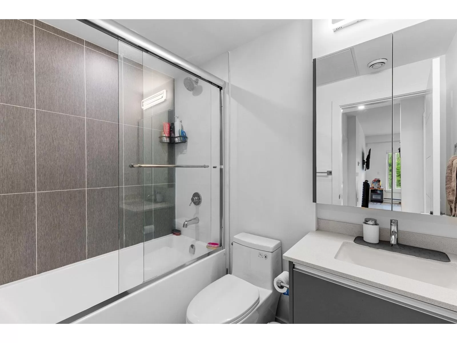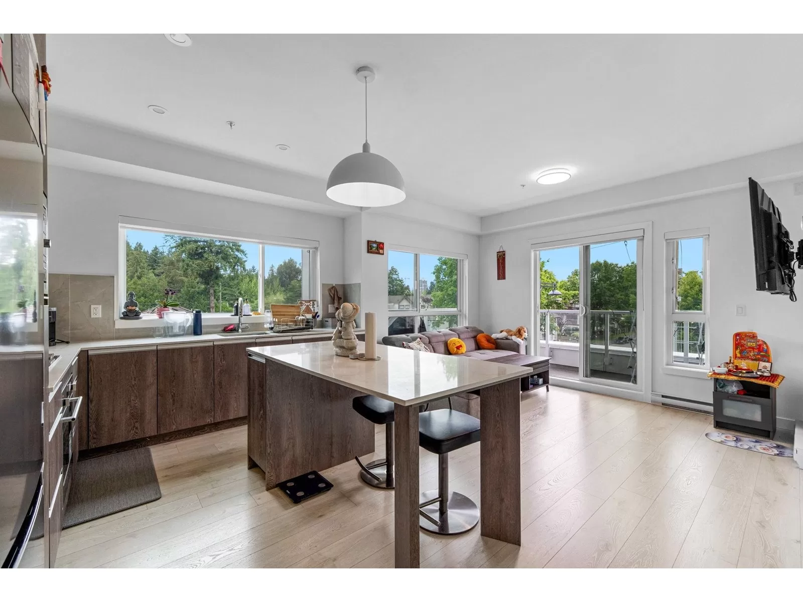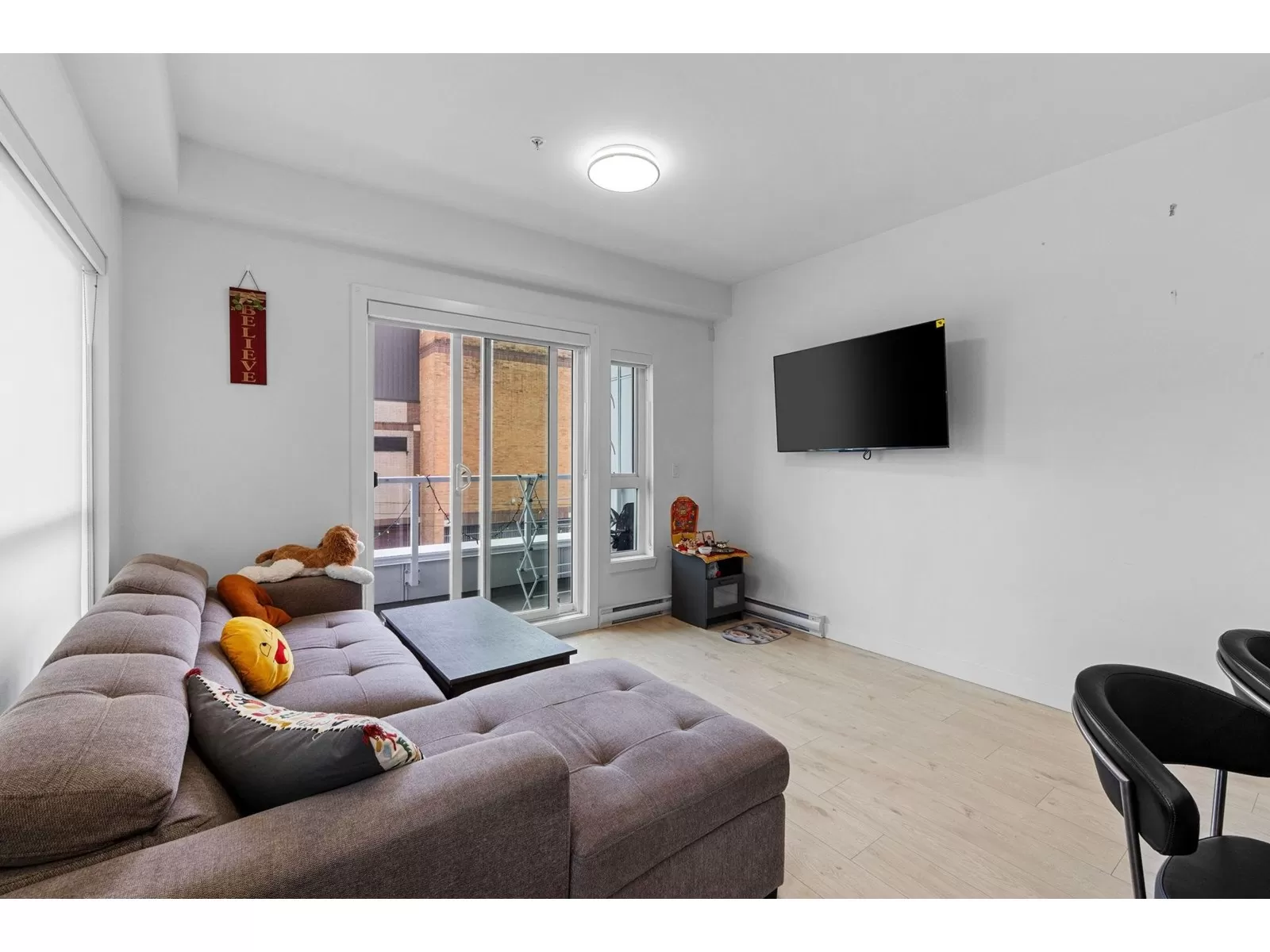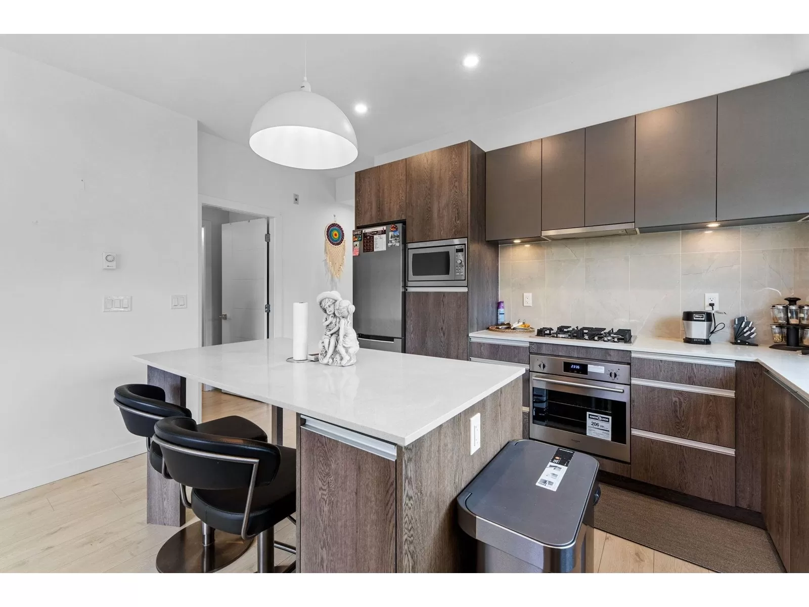 Welcome to Unison Uptown Surrey. 6 level mid-rise wood frame building located close to Hawthorne Park and Hen Long Asian Market. A stunning 2 bedrooms corner unit on the third level has a large outdoor balcony for you to entertain. The unit has a very spacious layout with an open concept kitchen. Granite counter top, maple solid cabinets, stainless steel appliances, and ensuite laundry. Close to school, Surrey Central Mall/Guildford Mall and all the main public transport, SFU and Community Center. This building has Gymn and this unit comes with 2 parkings and 1 storage. (id:27476)