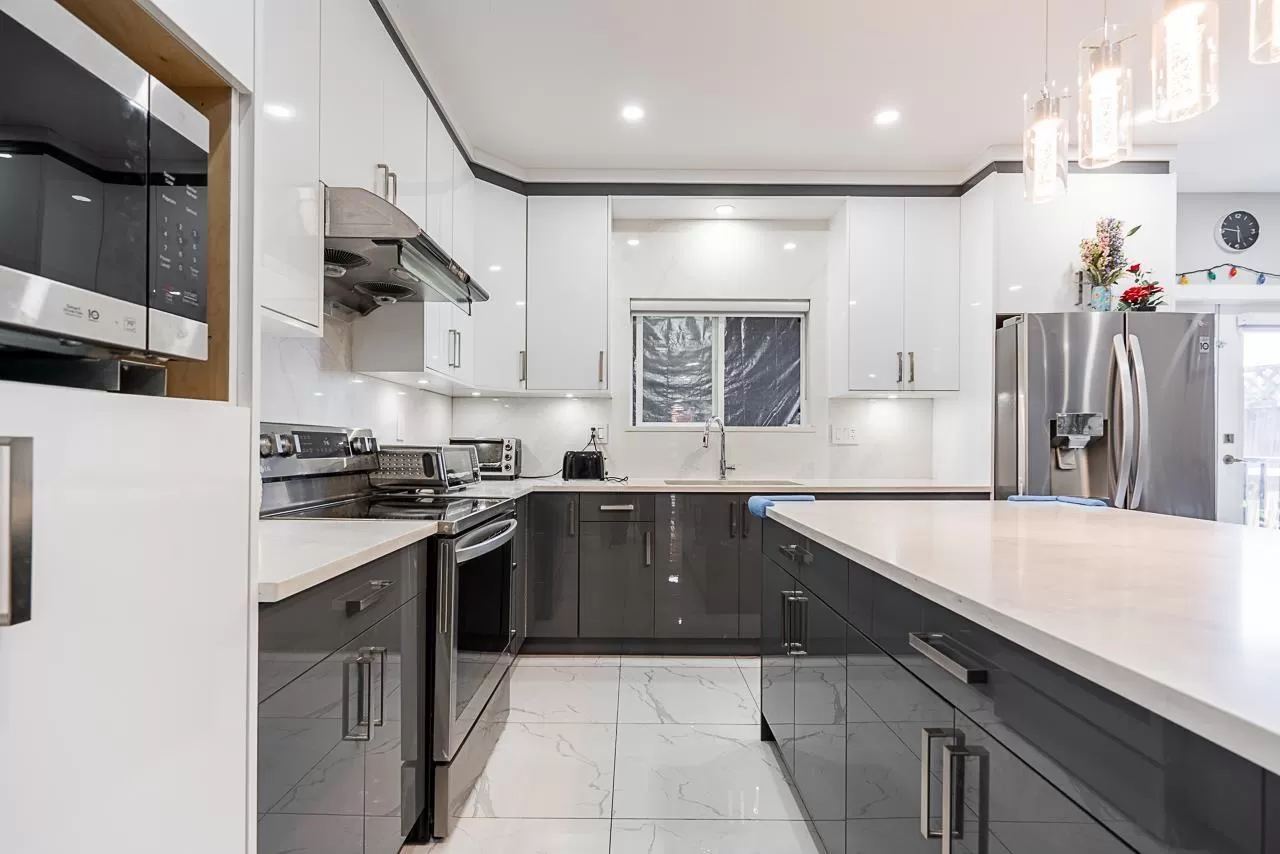 Basement entry two-storey Fully Renovated 2 storey 1/2 Duplex well kept. Updates done in 2022 New Stainless steel Appliances, Kitchen cabinet, Counter tops, Zebra Blinds, pot lights, tiles, railing, hardware handles, doors, Fresh paint sized living and dining spaces. 14x22 storage shed w/alley access! Friendly neighbourhood walking distance to elementary, high schools and bus stop & sky train!!! (id:27476)