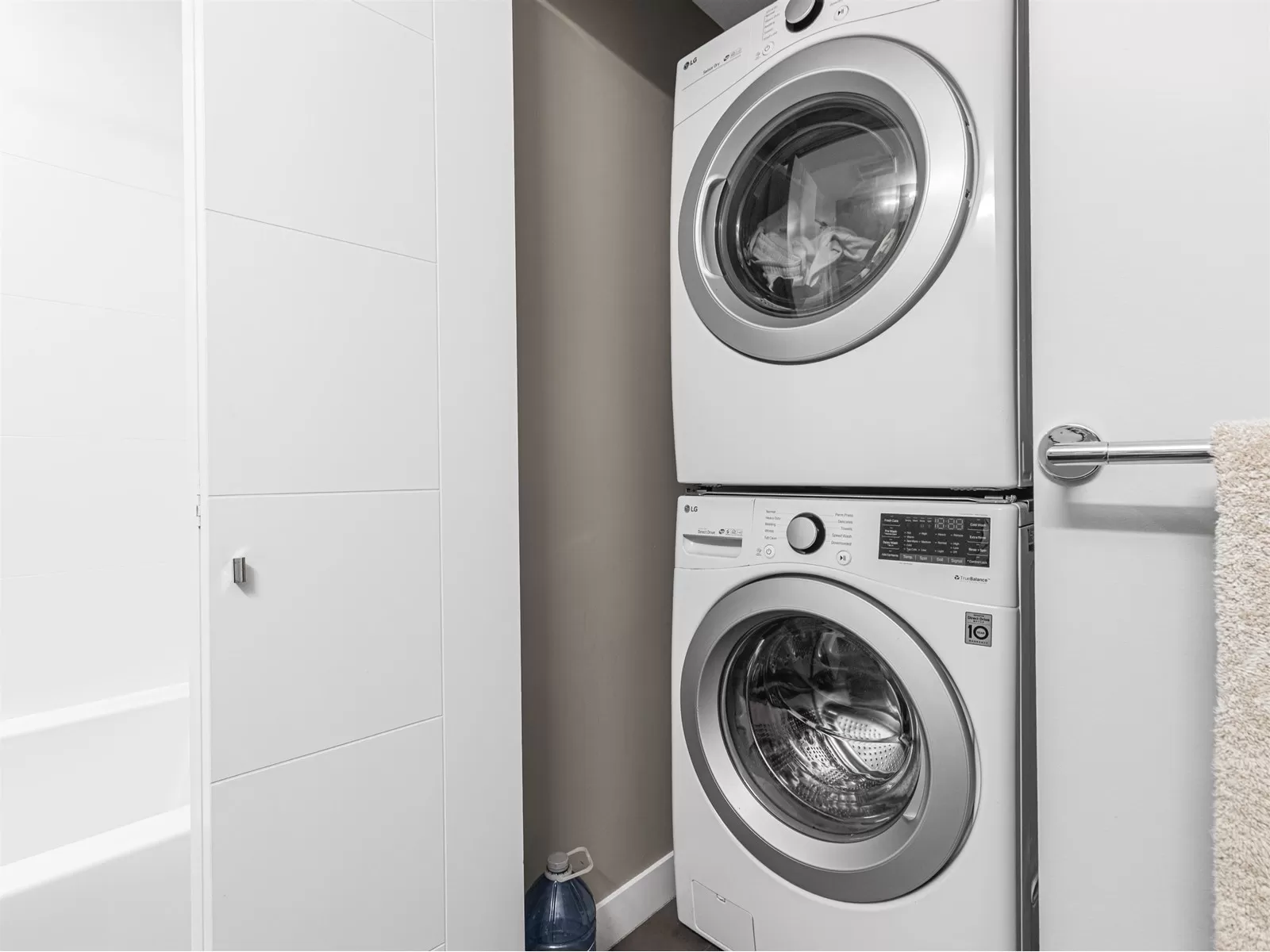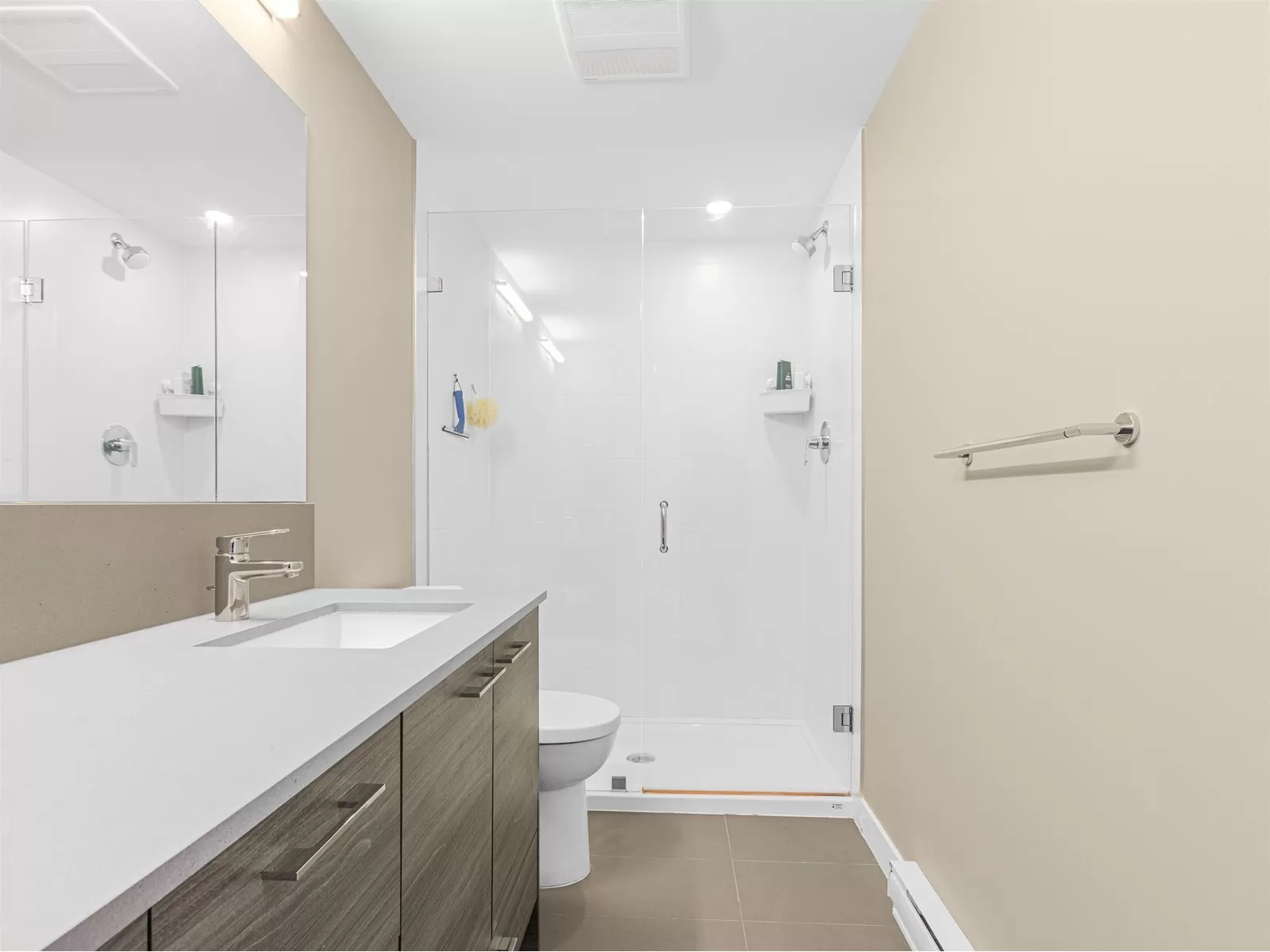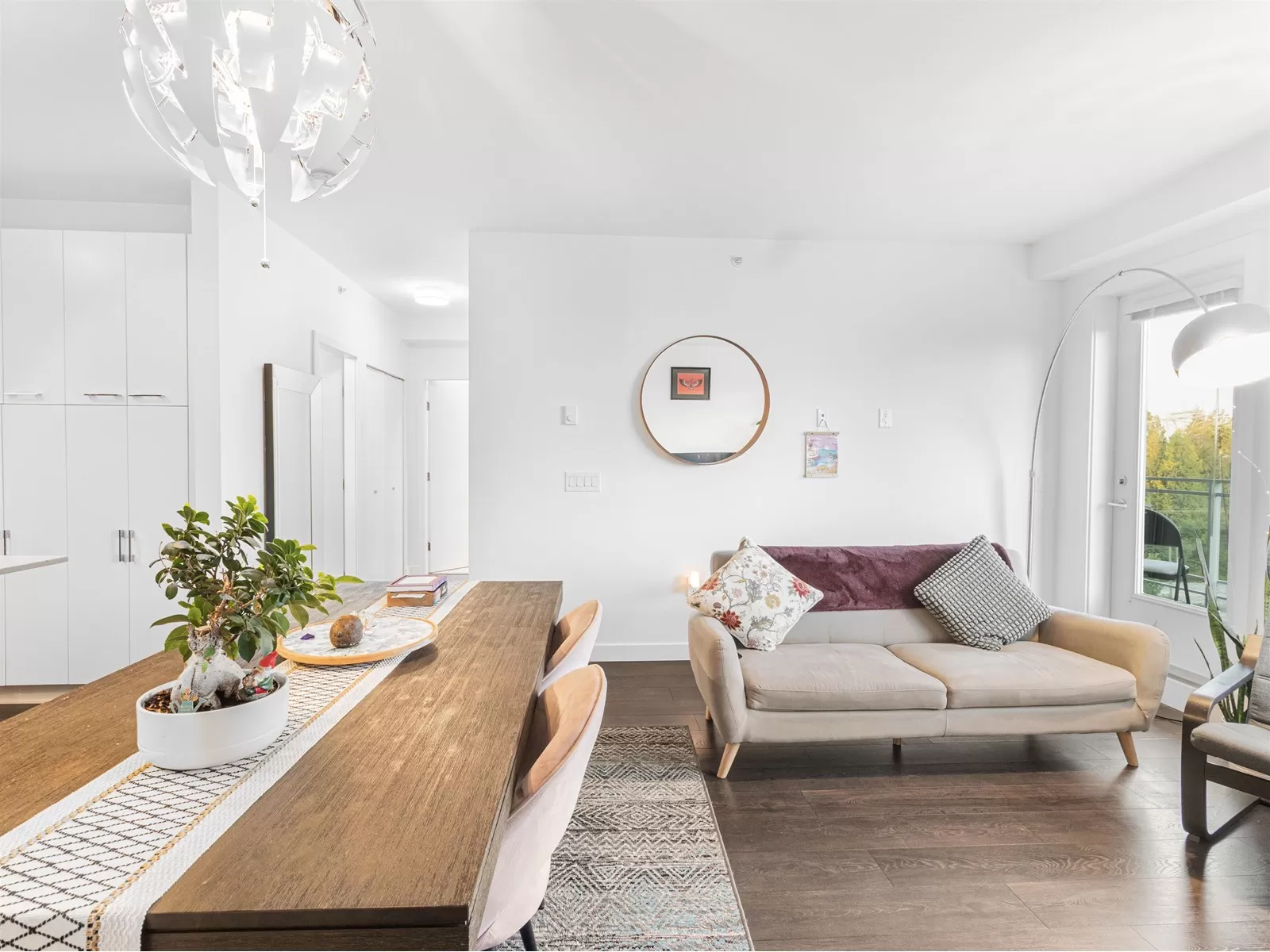 Welcome to this bright and spacious top-floor corner unit at HQ by Porte! This 903 sqft home features large east and south-facing windows that flood the space with natural light, while the north-facing entrance ensures privacy and energy flow. Enjoy panoramic, unobstructed views from this premium top-level suite. Thoughtfully designed, the unit offers 2 parking stalls conveniently located near the elevator and entrance, along with a large corner storage locker and three generous pantry closets. Located just steps from parks, schools, shopping, and express public transit routes, with easy access to the highway and SkyTrain. Exceptional building amenities include a fully-equipped gym, rooftop patio, BBQ area, kids' play zone, and community garden. (id:27476)