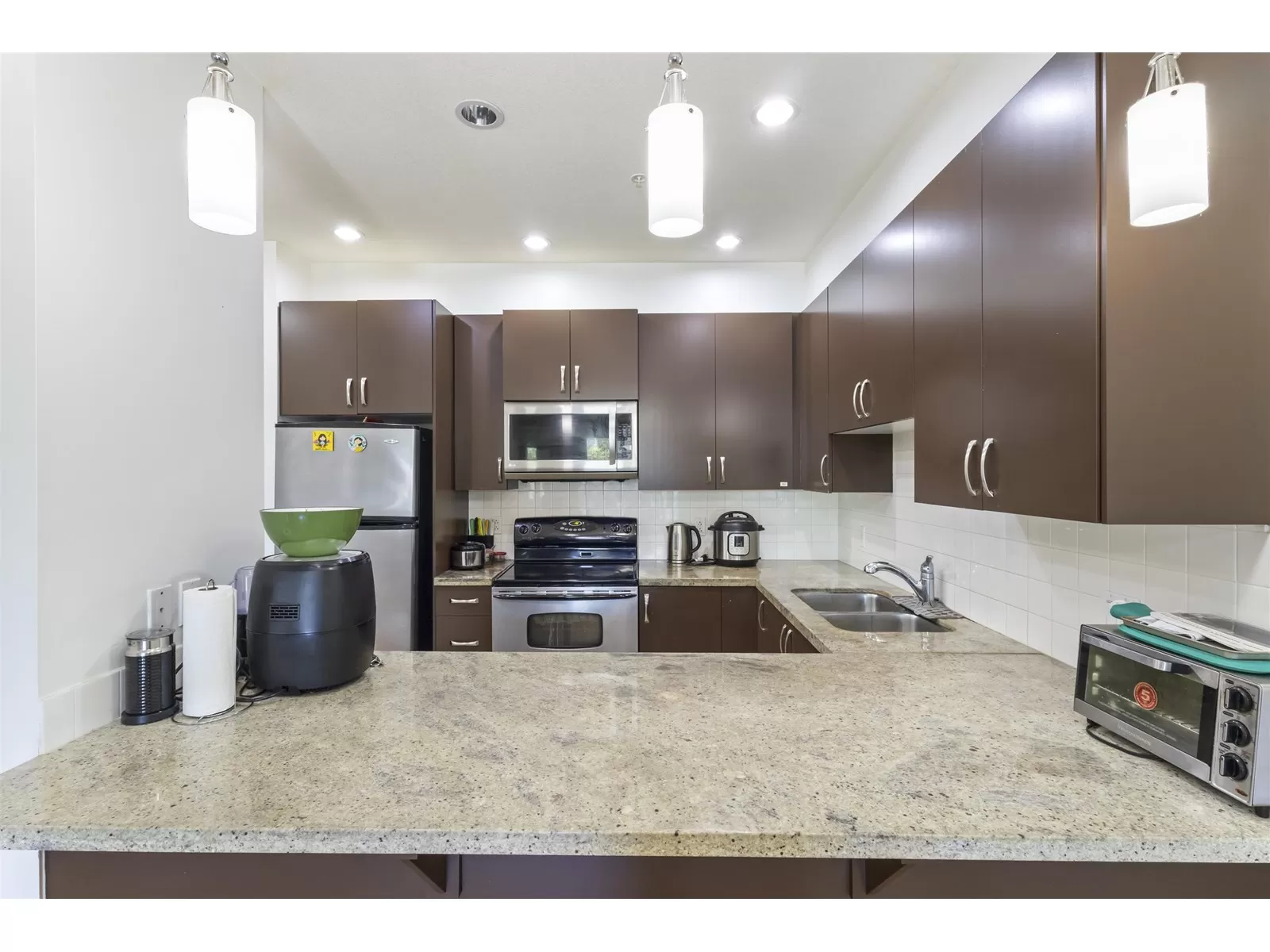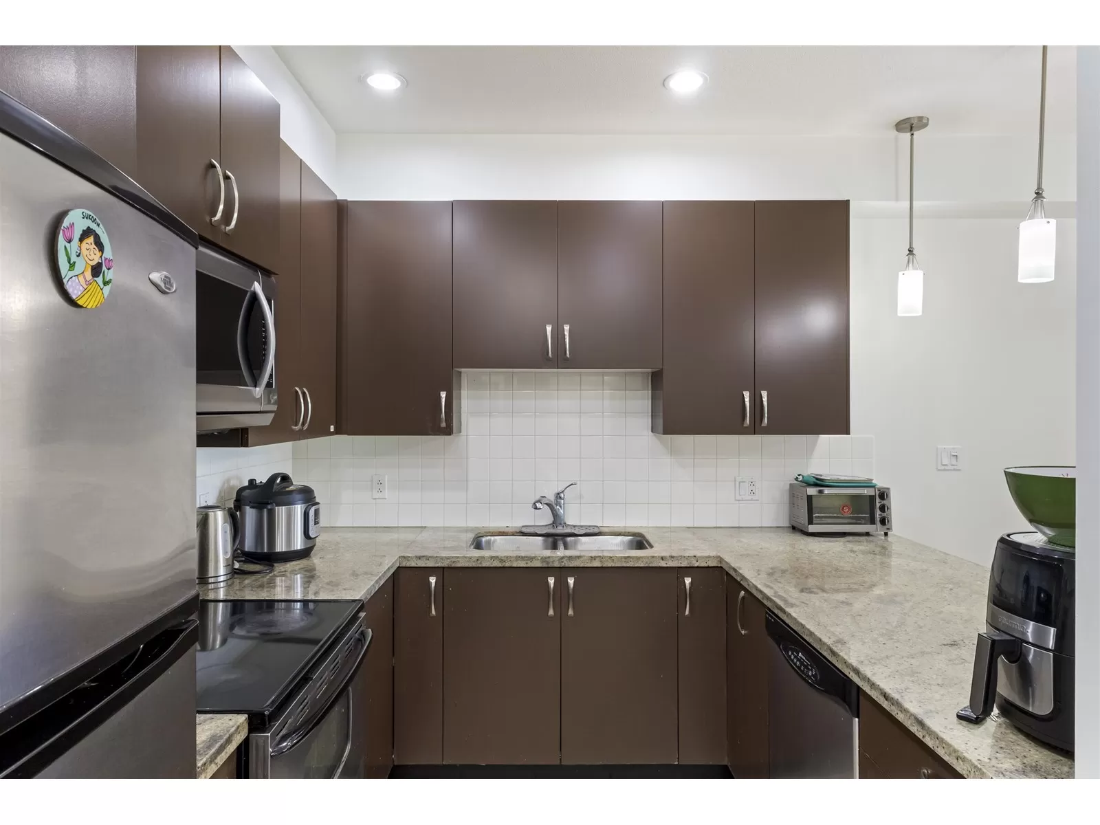 First time home buyer's or investor alert!!! 2 bedroom and 1 bath condo centrally lLess then 5 minute walk to sky train, SFU Campus, restaurants, pubs, coffee shops, City Hall, Holland Park, mall, library! Master bedroom has good size walk through closet. Offering granite counter tops, stainless steel appliances, Engineer hardwood flooring, wood cabinetry, electric fireplace, Large Patio. Built in 2009, the home is in fantastic condition!LIVE IN THE HEART OF THE SURREY CITY CENTRE (id:27476)