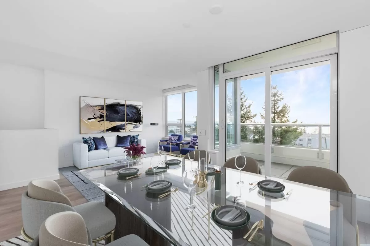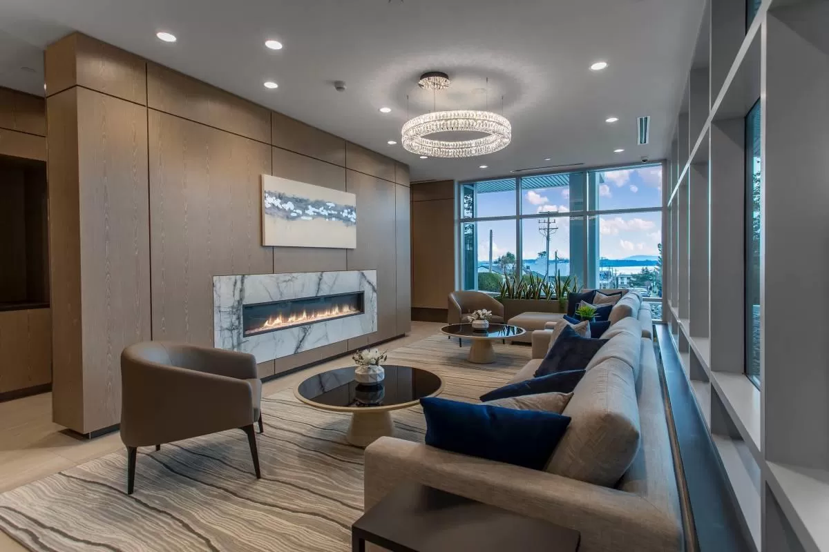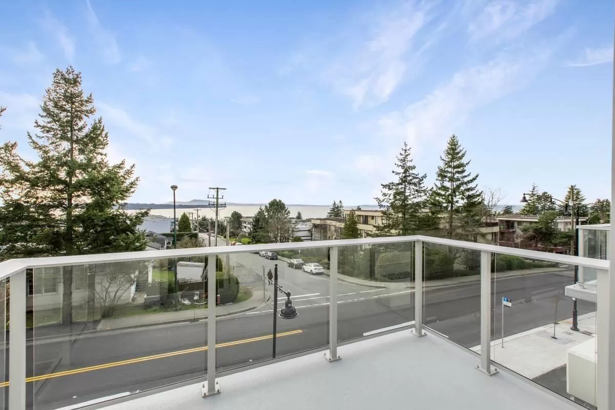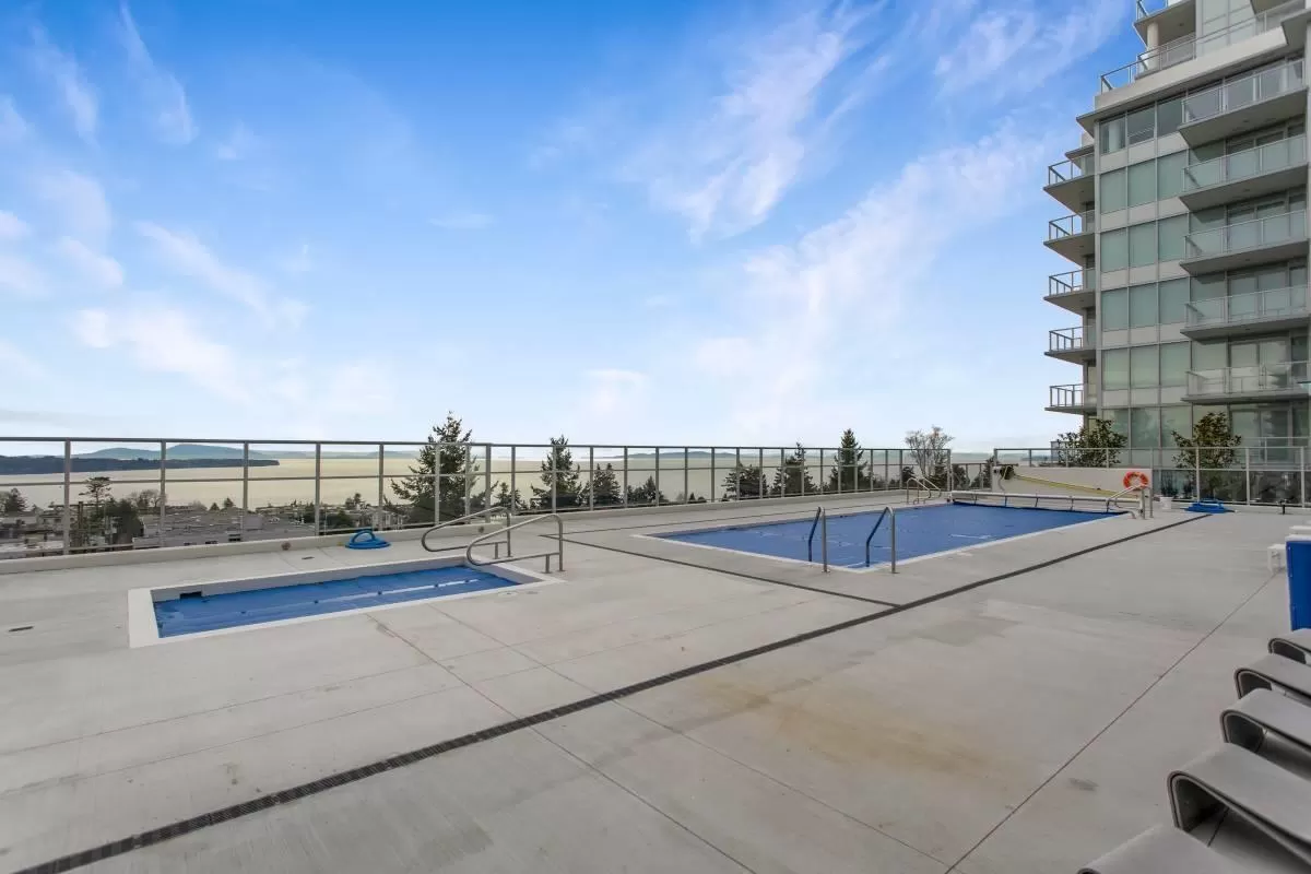 Experience unparalleled luxury in this rare two-storey townhouse by Bosa Properties. Boasting two bedrooms, a den, and two bathrooms, this residence offers an exceptional living space with 180-degree panoramic views of Semiahmoo Bay. The modern kitchen features stone countertops and backsplash, and top-of-the-line Bosch appliances. Elegance is evident throughout with 2 private balconies, LED lighting, hardwood flooring, and in-floor heating in the bathrooms, all controlled by a NEST thermostat and complemented by air conditioning. Amenities include gym, lounge, lap-pool, hot tub, and a 15,000 sq ft rooftop terrace! You want to miss this one! (id:27476)