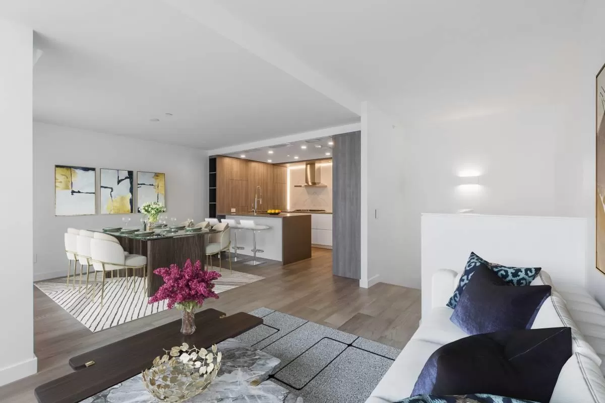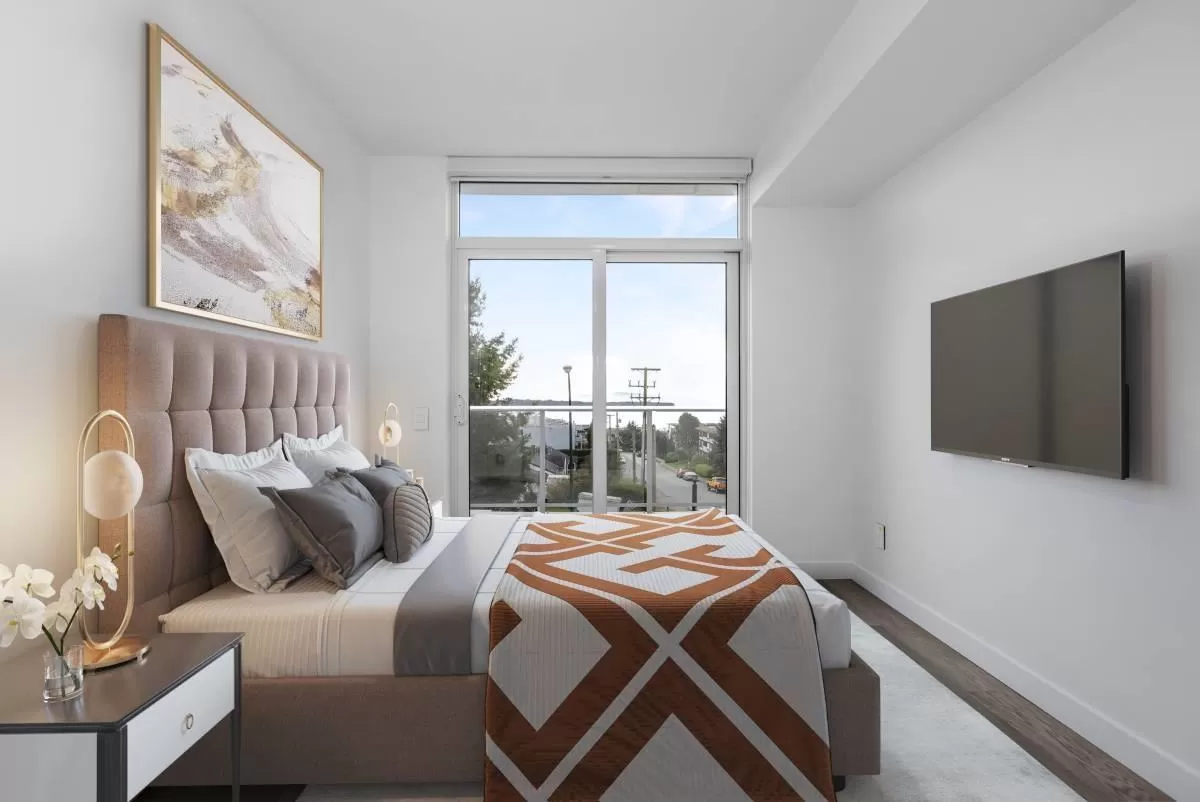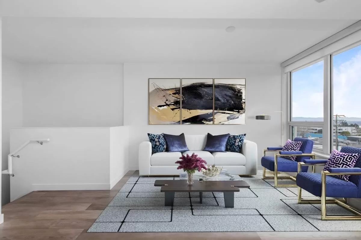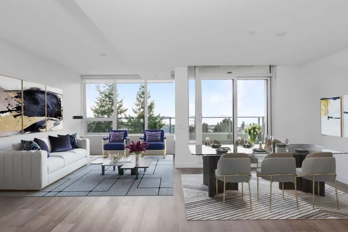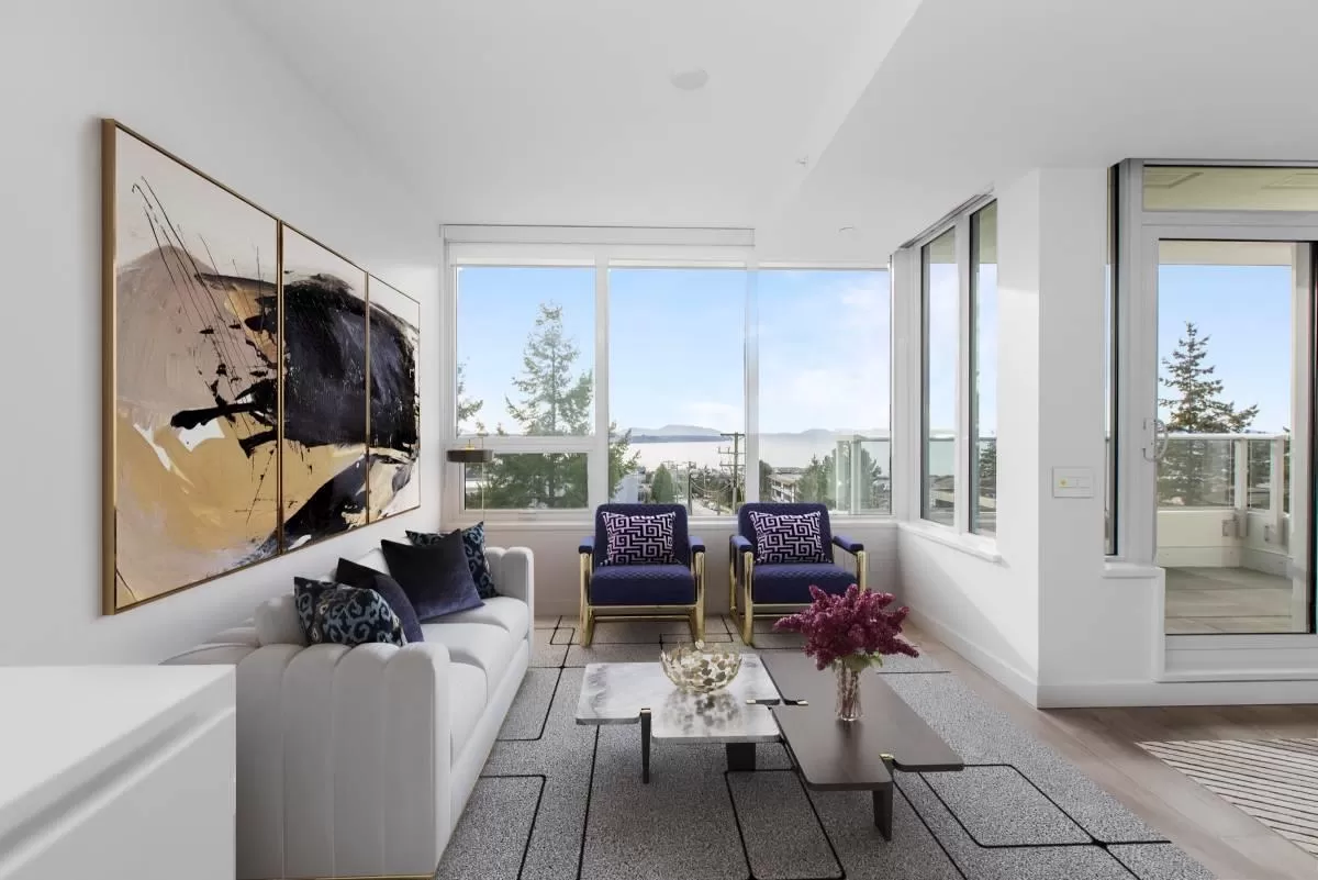 Experience unparalleled luxury in this rare two-storey townhouse by Bosa Properties. Boasting two bedrooms, a den, and two bathrooms, this residence offers an exceptional living space with 180-degree panoramic views of Semiahmoo Bay. The modern kitchen features stone countertops and backsplash, and top-of-the-line Bosch appliances. Elegance is evident throughout with 2 private balconies, LED lighting, hardwood flooring, and in-floor heating in the bathrooms, all controlled by a NEST thermostat and complemented by air conditioning. Amenities include gym, lounge, lap-pool, hot tub, and a 15,000 sq ft rooftop terrace! You want to miss this one! (id:27476)