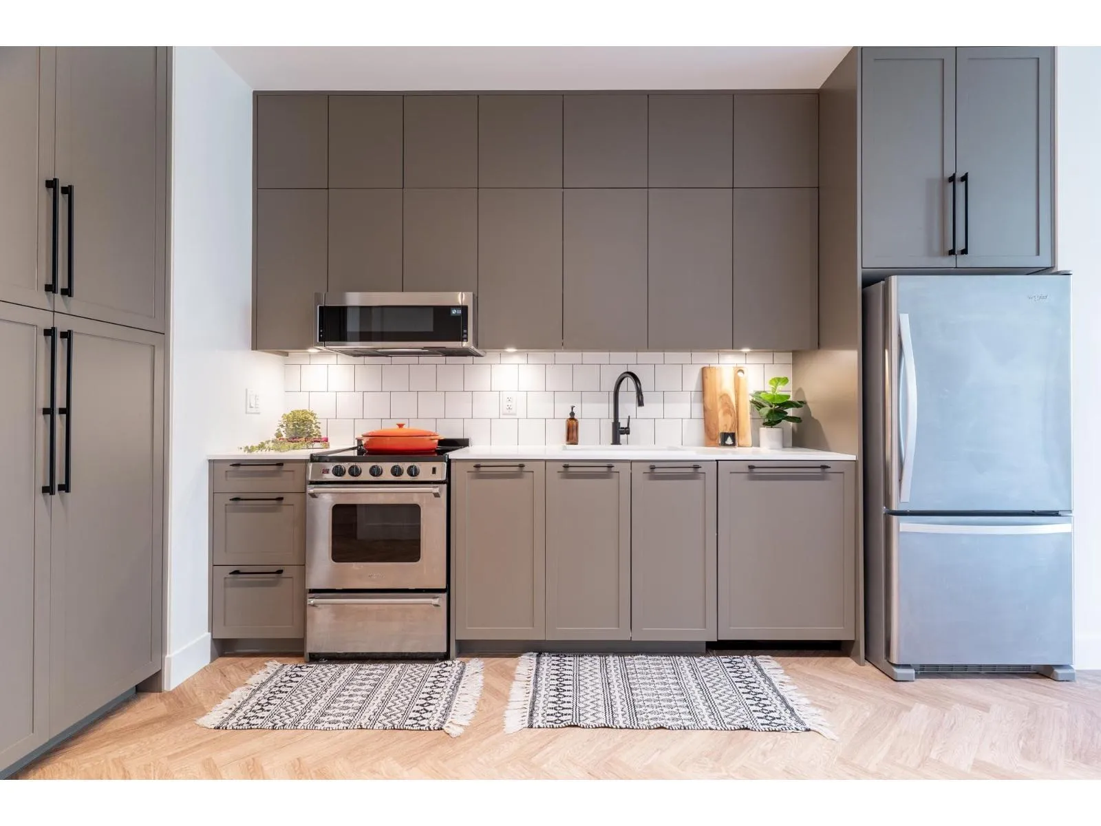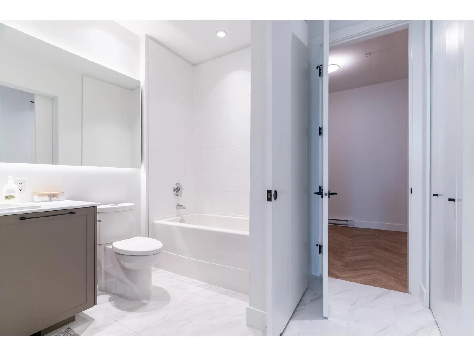 Move in ready 2 bed, 1.5 bath home with 1 parking and 1 locker. This bright ground floor unit features 10 ft ceilings, durable vinyl herringbone flooring throughout including bedrooms and access to a sunny large 17X11 walkout patio facing inner courtyard. Whirlpool stainless appliances, ample storage and quartz countertops complete the modern and functional kitchen. The ensuite bathroom includes ambient lighting, floating mirror, modern soaker tub and walk in shower. Situated adjacent to Forsyth Park, walking distance to schools, amenities and transit. Parker by Mosaic is located in a growing and vibrant area, convenient yet quiet. Please contact listing agent for more information. (id:27476)