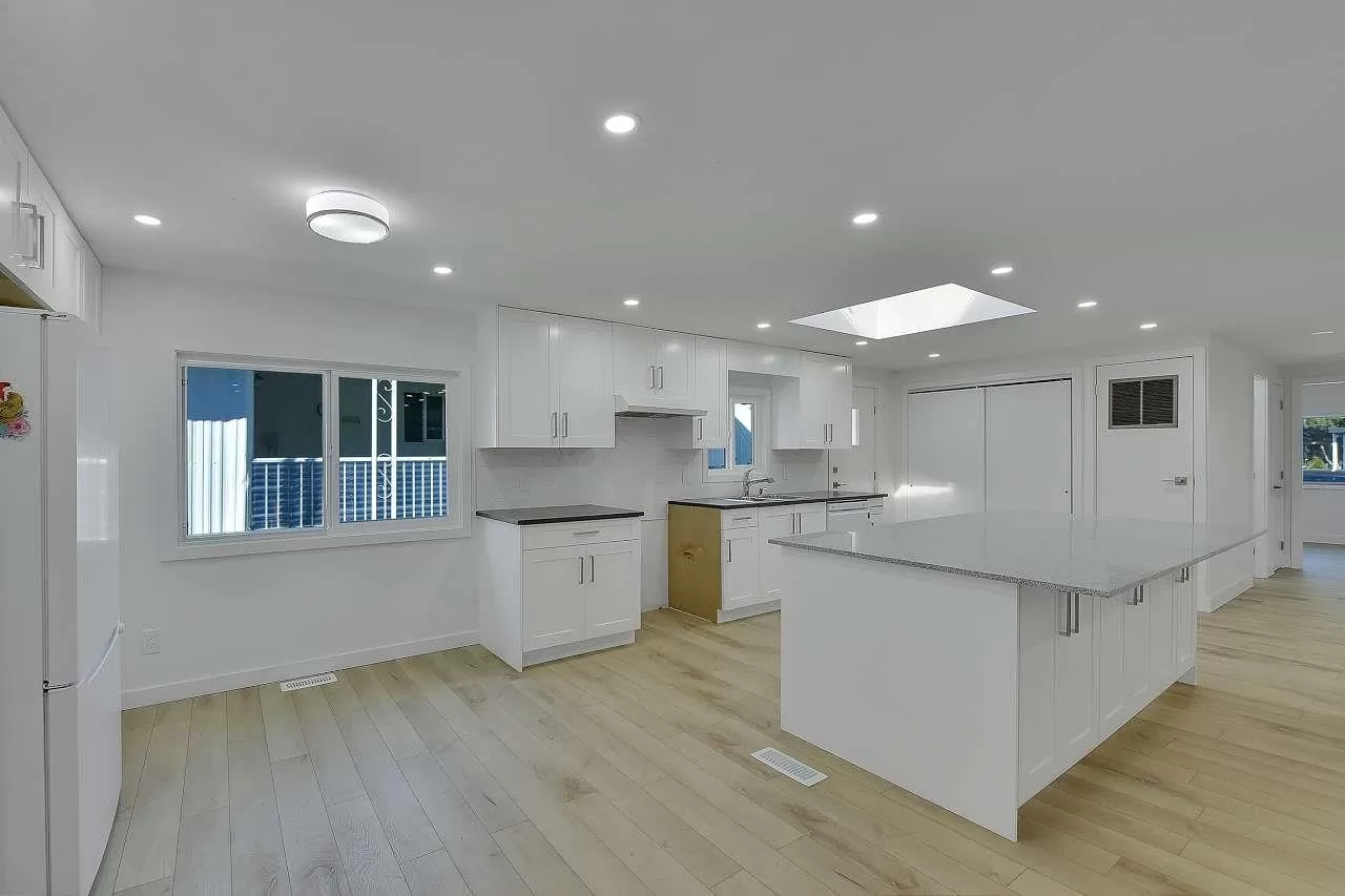 Welcome to your dream home! This newly renovated manufactured home is located in the family-friendly community of South Surrey. Set on a spacious lot in a well-managed park, surrounded by lush greenery, this home has been upgraded for modern living. Step inside to an open-concept living area, perfect for entertaining or relaxing with family. The brand-new kitchen features modern appliances, sleek countertops, and ample space for meal prep. Luxurious plank vinyl flooring flows throughout, adding elegance and durability. Both bathrooms are fully updated, offering stylish finishes, and new electrical upgrades ensure peace of mind. The 3 cozy bedrooms provide the perfect retreat after a long day and easily converted into four bedroom. don't be shy call today. (id:27476)