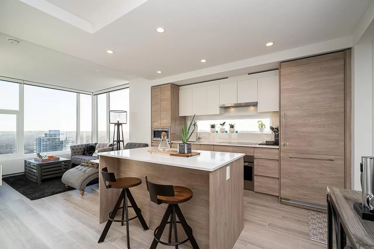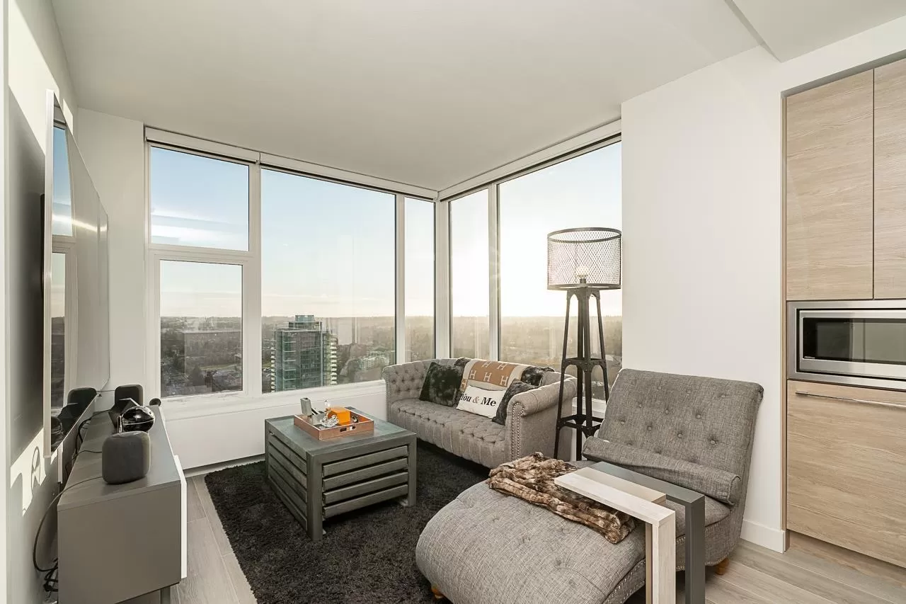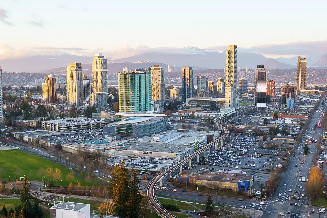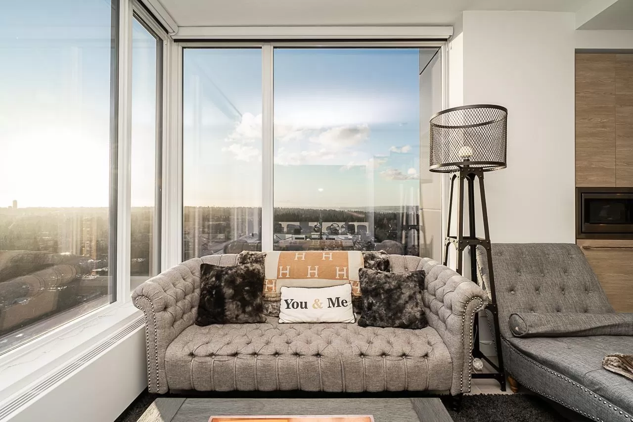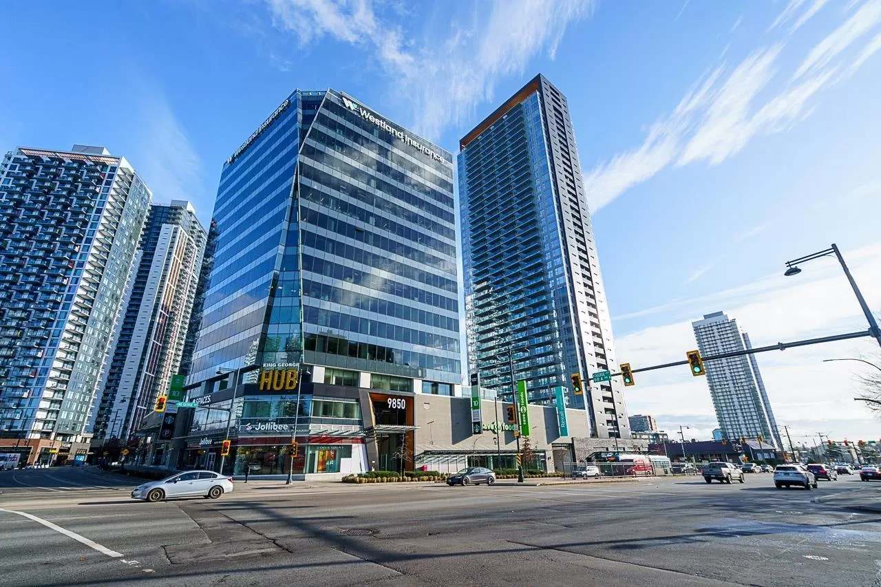 Live above it all at King George Hub in Surrey City Centre. This bright southwest corner home offers stunning views of the city, mountains, and parks from every room. Thoughtful upgrades add style throughout: feature walls in the entry and bathrooms, a bold accent in the primary bedroom, and elegant paneling in the dining area. The open layout feels fresh and modern with a Blomberg fridge, Fulgor Milano oven, induction cooktop, quartz counters, laminate floors, and remote-control bidets. Automatic blackout blinds ensure comfort and privacy. Enjoy premium amenities including a 40th-floor lounge, full gym, and yoga studio. Just steps to the SkyTrain, shops, and entertainment. This like-new 2-bed, 2-bath home blends convenience, style, and incredible views in one perfect package. (id:27476)