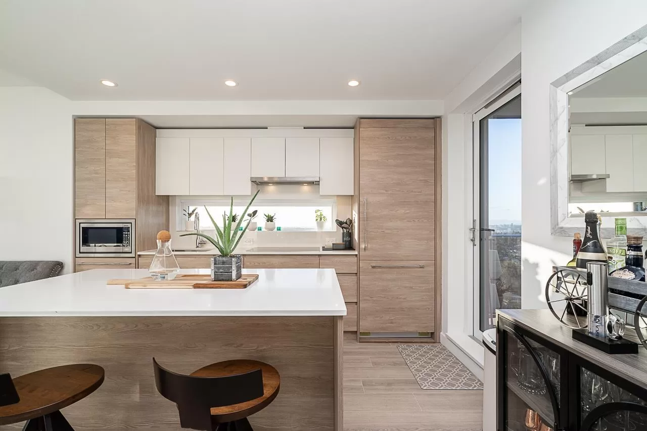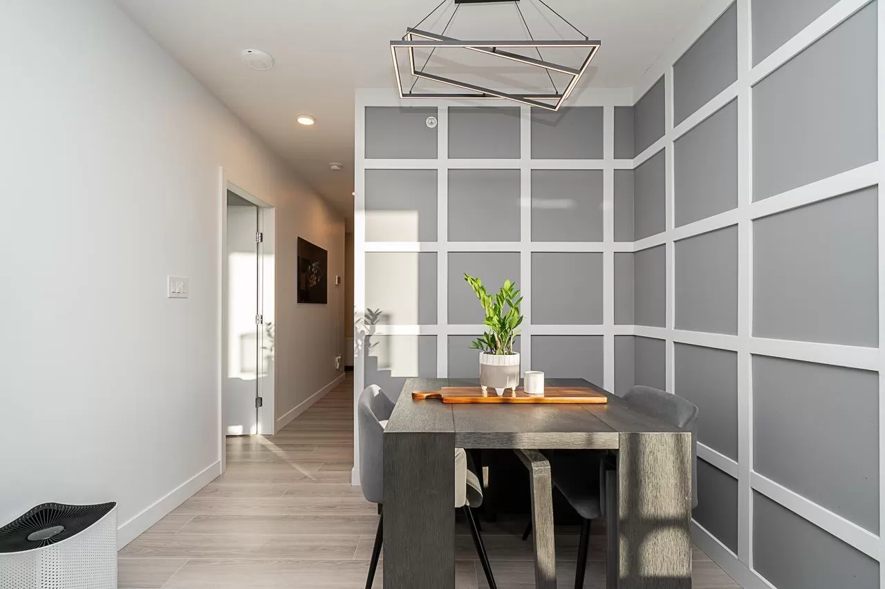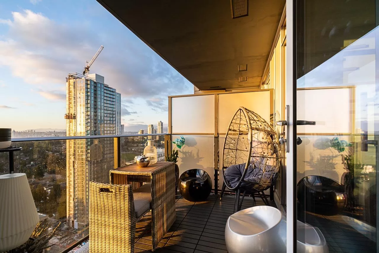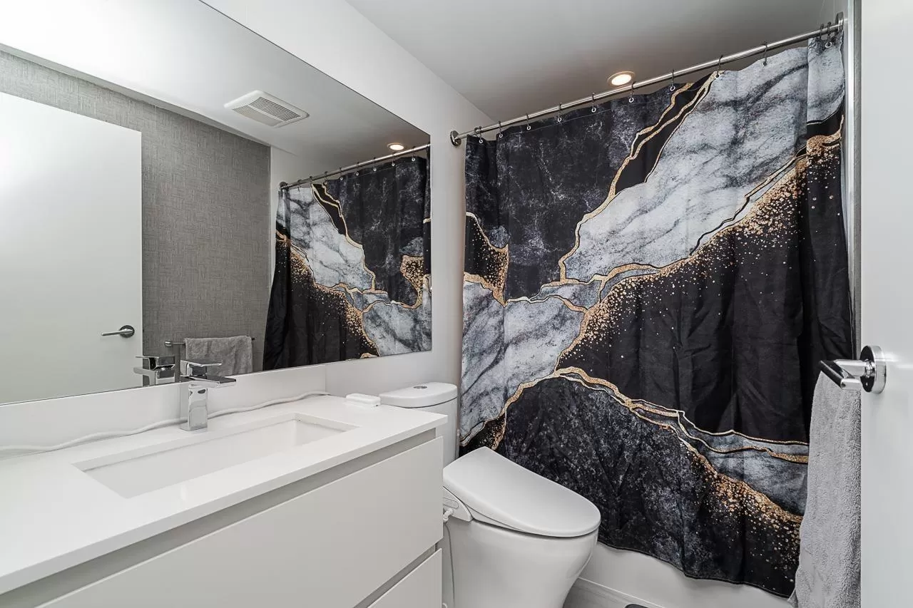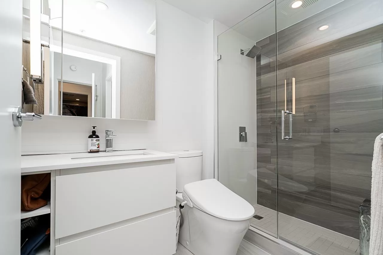 Live above it all at King George Hub in Surrey City Centre. This bright southwest corner home offers stunning views of the city, mountains, and parks from every room. Thoughtful upgrades add style throughout: feature walls in the entry and bathrooms, a bold accent in the primary bedroom, and elegant paneling in the dining area. The open layout feels fresh and modern with a Blomberg fridge, Fulgor Milano oven, induction cooktop, quartz counters, laminate floors, and remote-control bidets. Automatic blackout blinds ensure comfort and privacy. Enjoy premium amenities including a 40th-floor lounge, full gym, and yoga studio. Just steps to the SkyTrain, shops, and entertainment. This like-new 2-bed, 2-bath home blends convenience, style, and incredible views in one perfect package. (id:27476)
