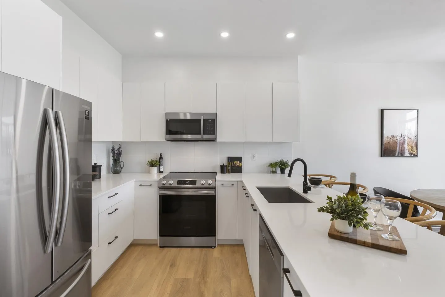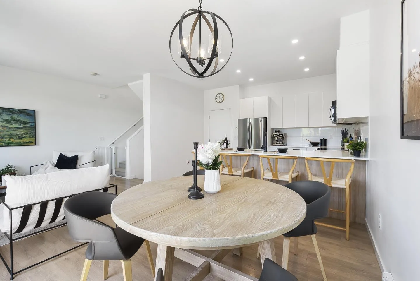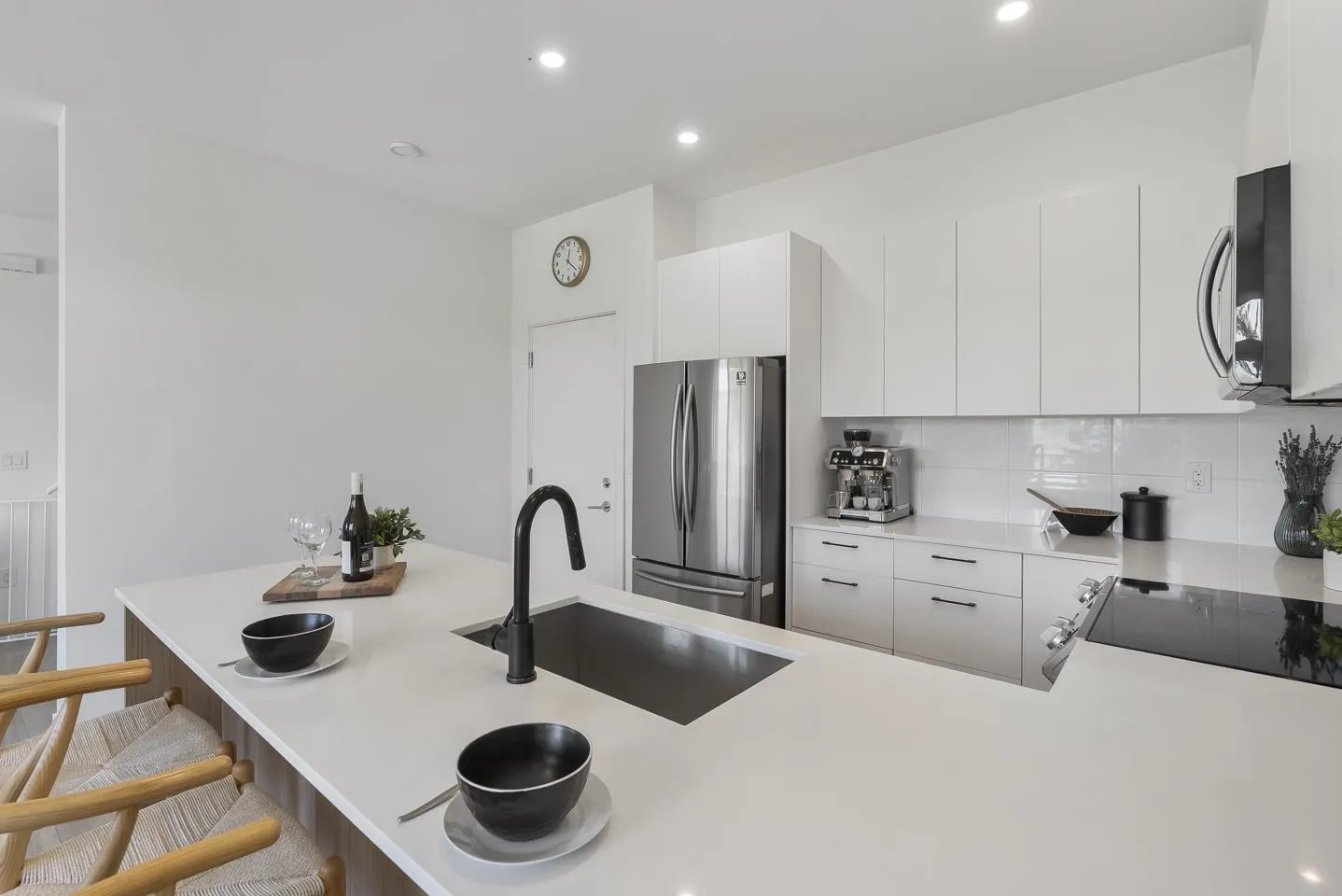 Welcome to Wood & Water, a stylish 4-year-old townhouse community offering functional living space across all three levels. This 4-bed, 3-full bath home features a bright open-concept main floor with a modern kitchen, sleek appliances, and generous sized counter space-perfect for entertaining. Enjoy the warmth of hardwood floors, oversized windows, and a neutral palette throughout. The spacious main level offers an open layout concept, while a private double side by side garage and dedicated laundry room add everyday convenience. Located in the sought-after Fleetwood community, you're steps from top schools, scenic parks, shops, dining, transit, and the future SkyTrain extension. (id:27476)