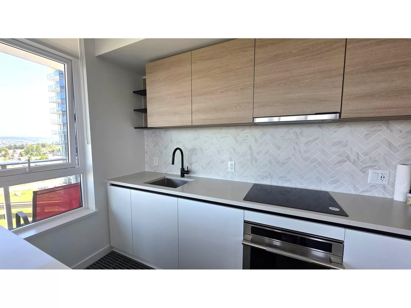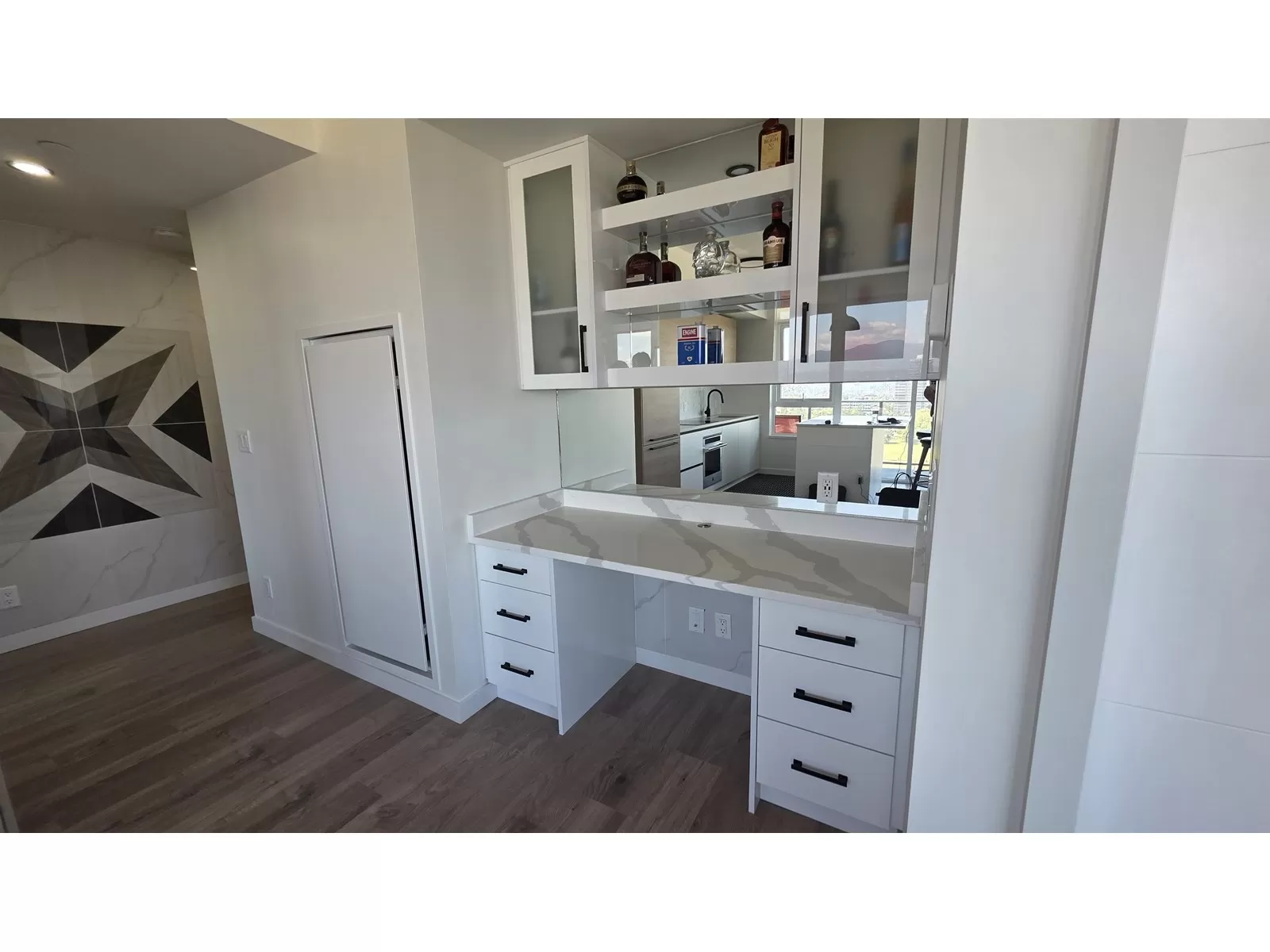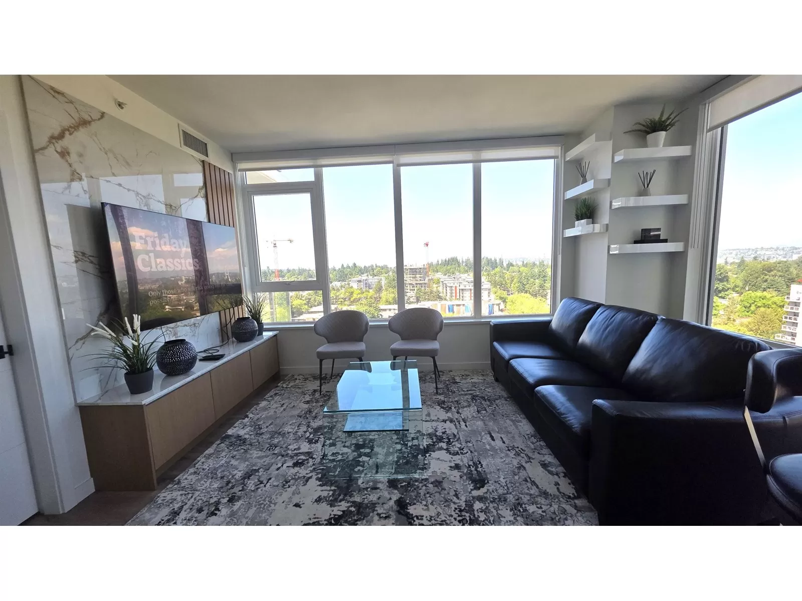 Elevated urban living at University District South by Bosa. This northwest-facing 2 bed 2 bath corner home the 16th floor includes 2 side-by-side parking stalls and storage locker. Thoughtful upgrades include custom millwork, tiled feature walls, modern lighting, built-in desk, bar shelving, and overhead storage in both bedrooms. Gourmet kitchen with high-end integrated appliances, upgraded stone island, countertop, and built-in extendable dining table. Large balcony with panoramic city and mountain views. Over 23,000 sqft of amenities across multiple levels: outdoor pool, fitness and spin studio, rooftop terrace with BBQ and firepit, lounge, concierge, and parcel lockers. Steps to Skytrain , SFU, KPU, shops, and restaurants. (id:27476)