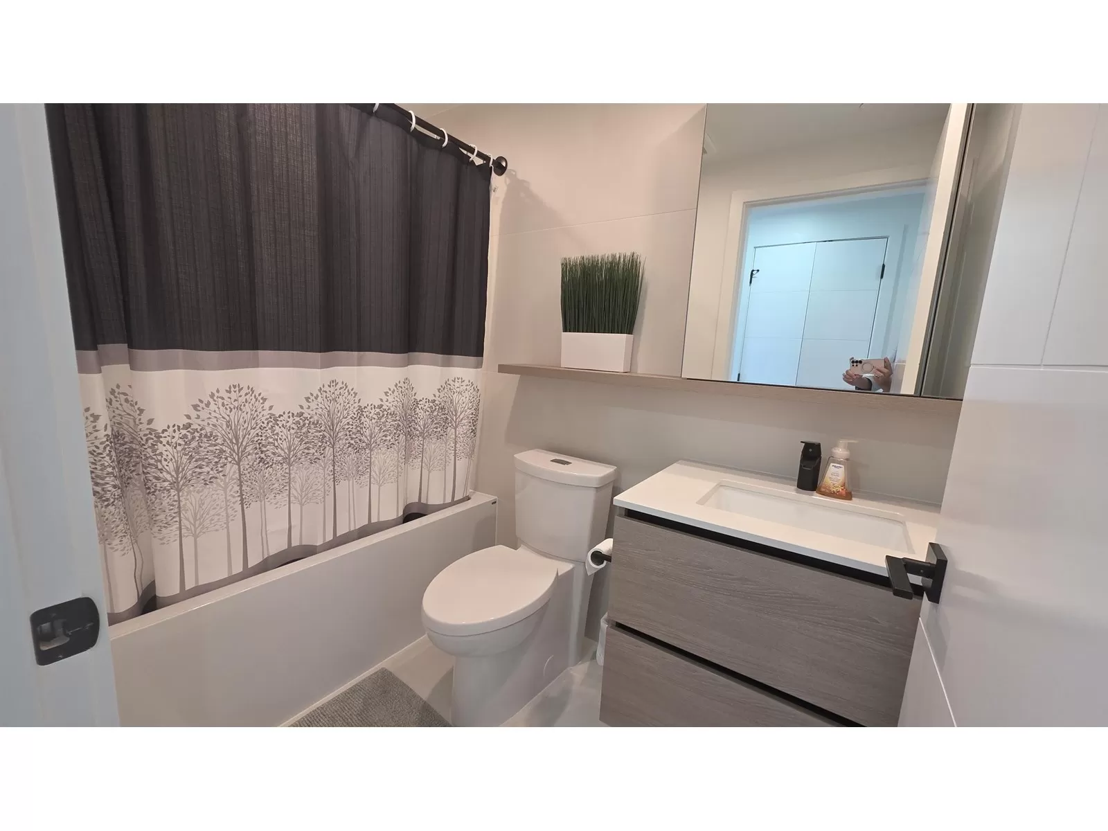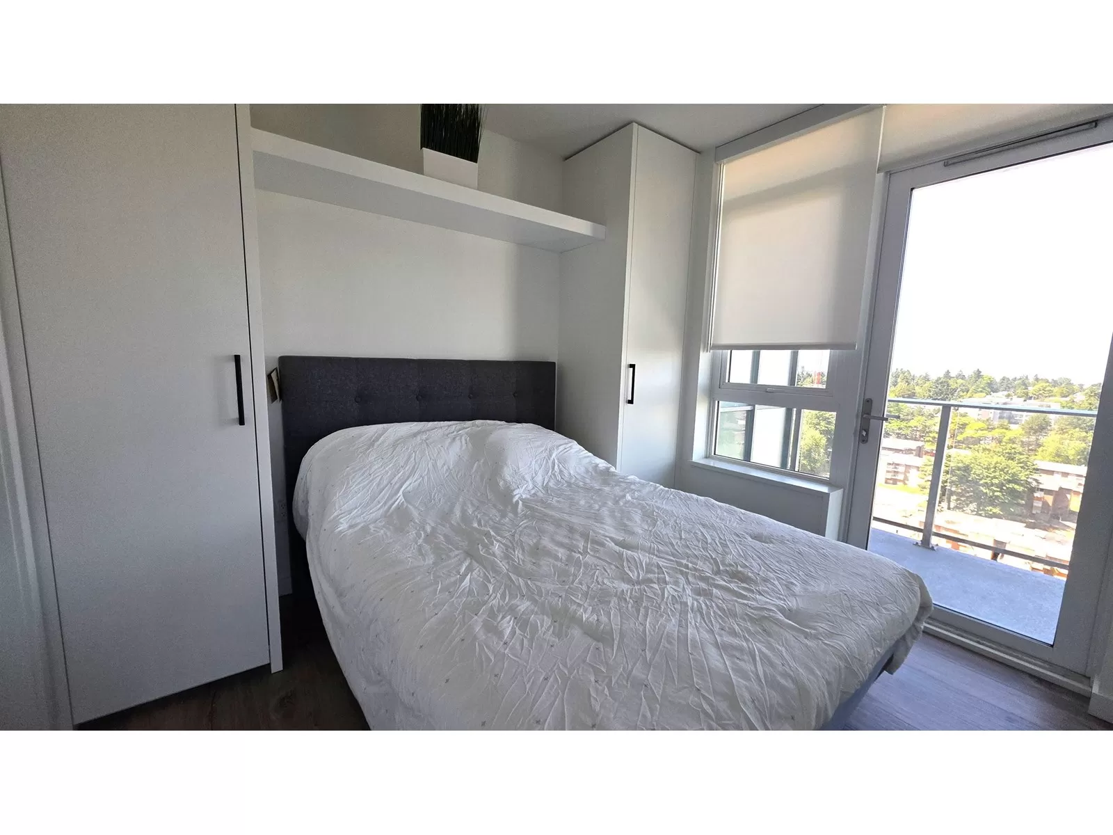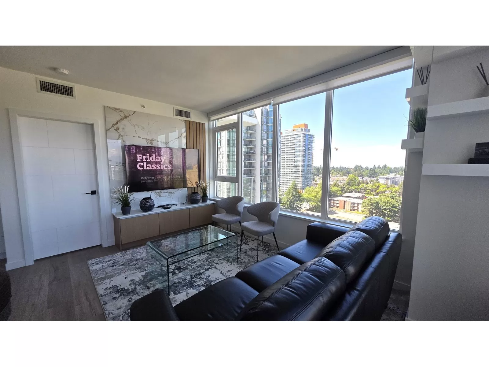 Elevated urban living at University District South by Bosa. This northwest-facing 2 bed 2 bath corner home the 16th floor includes 2 side-by-side parking stalls and storage locker. Thoughtful upgrades include custom millwork, tiled feature walls, modern lighting, built-in desk, bar shelving, and overhead storage in both bedrooms. Gourmet kitchen with high-end integrated appliances, upgraded stone island, countertop, and built-in extendable dining table. Large balcony with panoramic city and mountain views. Over 23,000 sqft of amenities across multiple levels: outdoor pool, fitness and spin studio, rooftop terrace with BBQ and firepit, lounge, concierge, and parcel lockers. Steps to Skytrain , SFU, KPU, shops, and restaurants. (id:27476)