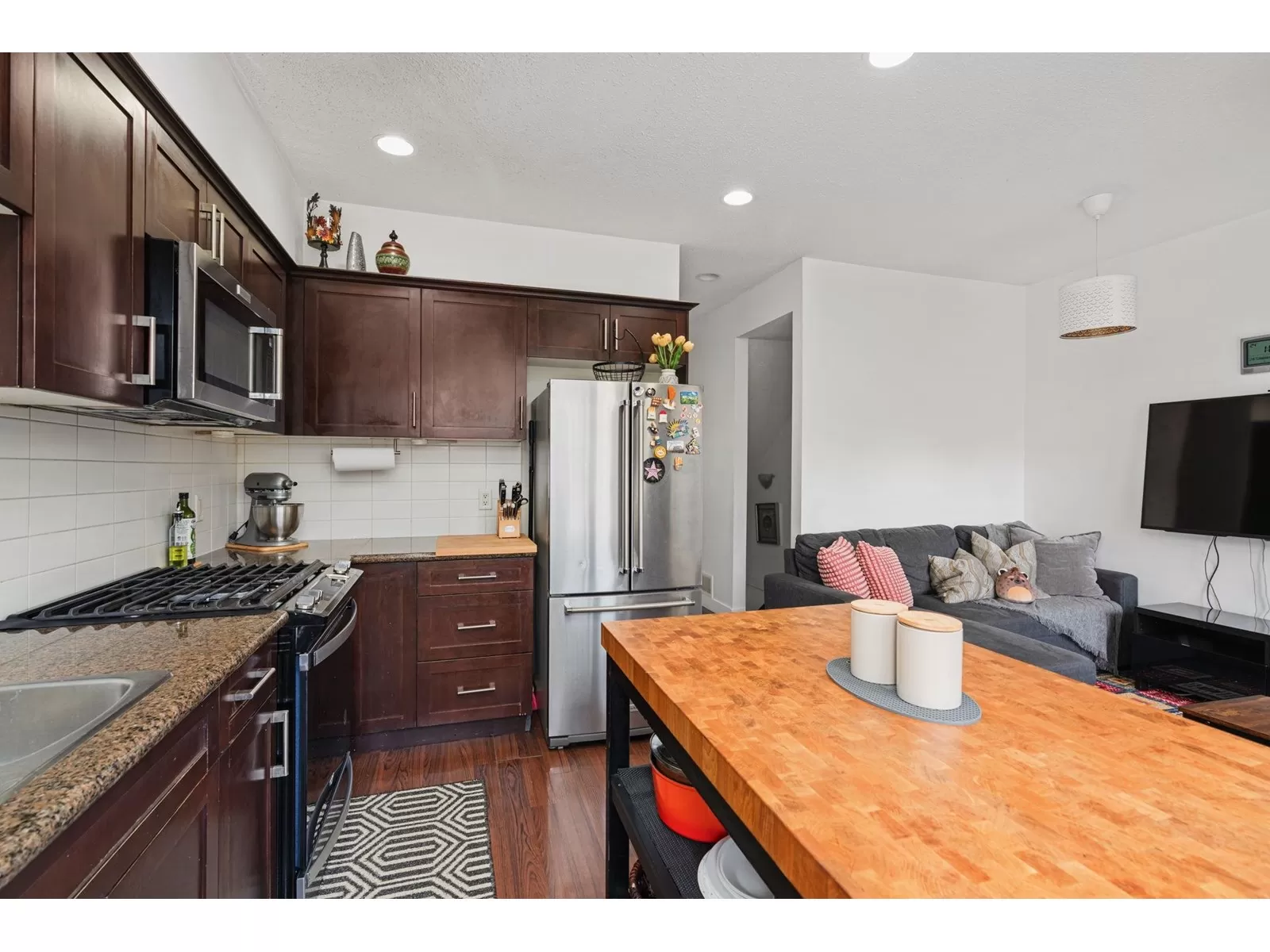 Welcome to MANHATTAN SKYE in CLAYTON HEIGHTS! This stunning 3 Bed, 3 Bath townhome offers the perfect blend of style, space and convenience. The main floor has two separate living spaces! The kitchen boasts granite countertops, S/S appliances, and a gas range. Off your main floor, enjoy the fully fenced backyard that backs onto a GREEN SPACE. Upstairs you have a large primary bedroom with a deluxe ensuite and two additional good sized bedrooms. A lot of natural light throughout the home and bonus: The unit doesn't look into another unit. CENTRALLY LOCATED minutes away from schools, transit, grocery, shopping and major routes. (id:27476)