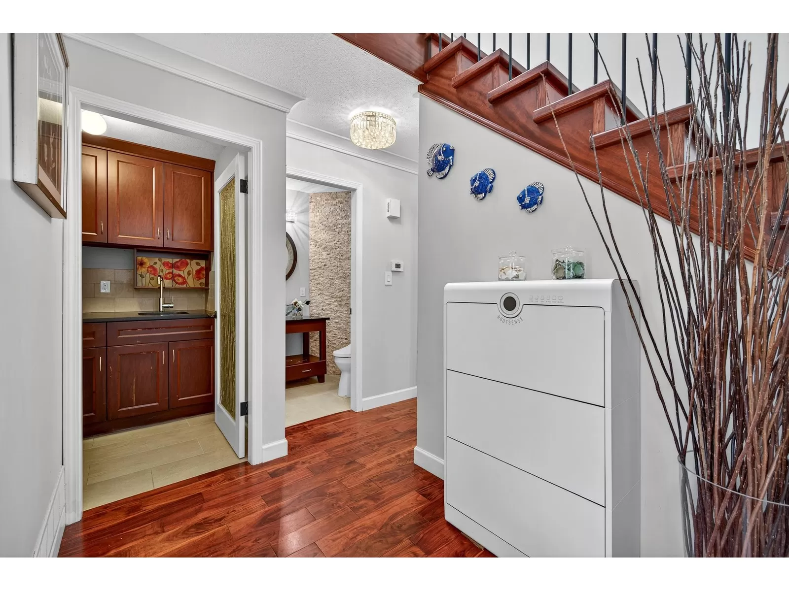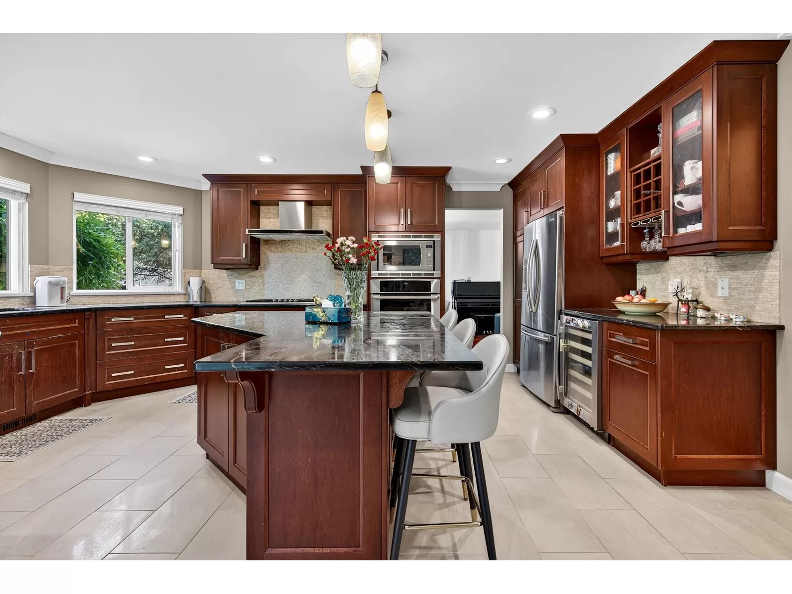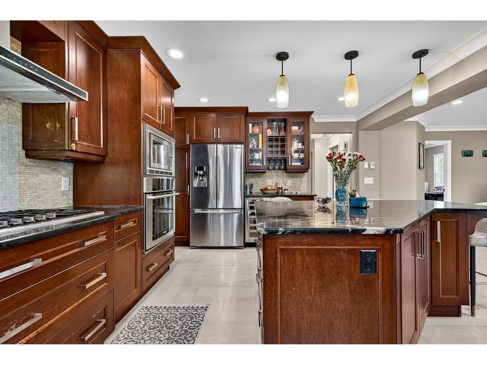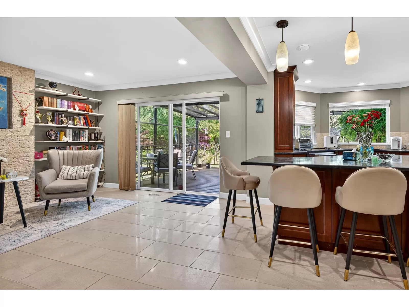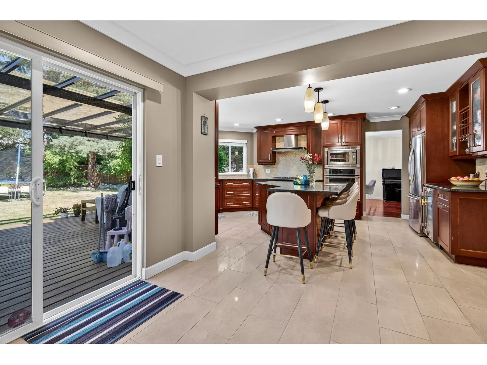Don't miss this beautifully maintained home, ideally situated in a quiet cul-de-sac in sought-after Hazelwood Hills.Set on a private 9,335 sqft lot, this property has been tastefully updated over the past years.Enjoy the gourmet kitchen featuring a massive island, limestone backsplash,oversized floor tiles & quality stainless steel appliances. Japanese cherry hardwood floors greet you at the entry extending throughout the main level & all upstairs rooms.Step out from the family room to a huge deck,perfect for outdoor entertaining, overlooking a lush, private backyard with plenty of space for children to play.The upper level offers 3 bedrooms plus a large recreation room, which can easily be converted into 4th bedroom.Walking distance to both levels of schools & future skytrain station etc. (id:27476)