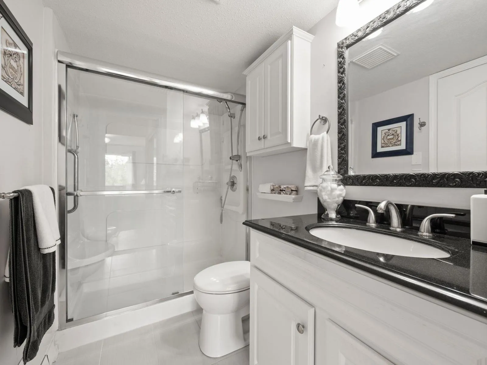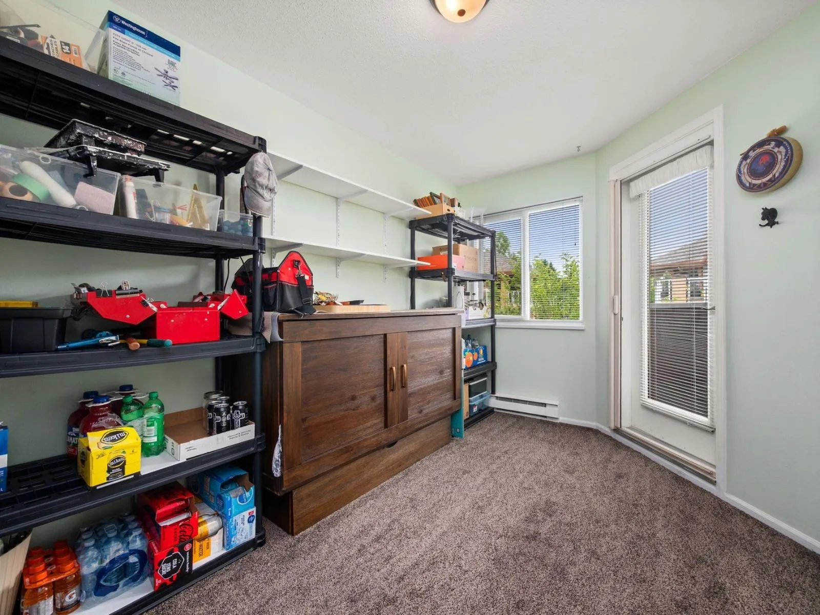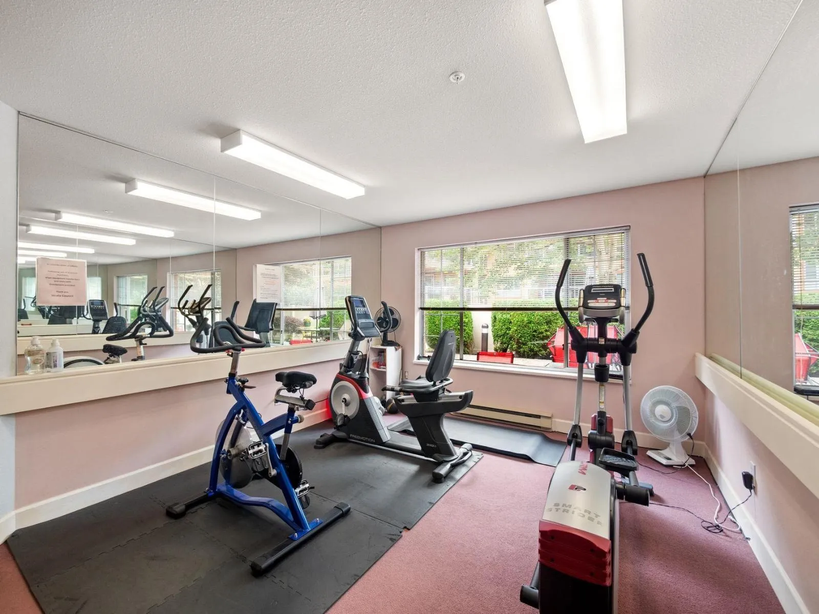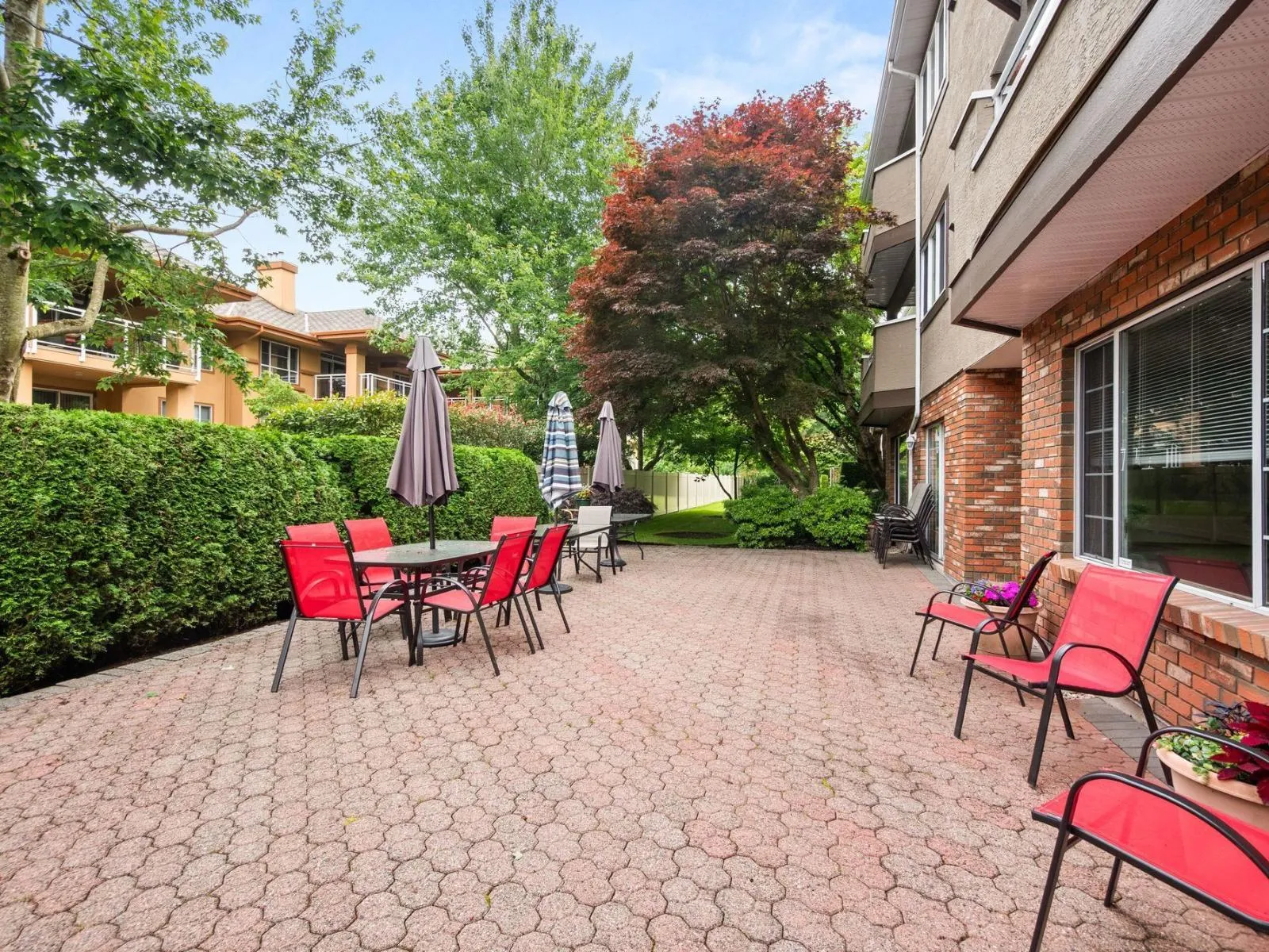 Welcome to this beautifully renovated 2-bedroom, 1-bathroom home offering bright south-facing exposure and a thoughtfully designed interior. The kitchen features crisp white cabinetry, granite and butcher block countertops, accent lighting, and a seamless flow into the living space with new flooring throughout. The full bathroom boasts a walk-in shower, and the dedicated office area includes granite countertops to match the kitchen. Step out onto the spacious deck with sunshade-perfect for relaxing or entertaining all day long. Located in a well-maintained 55+ building, residents enjoy a wealth of amenities including a dining room with a commercial-sized kitchen, a cozy lounge with patio and green space access, one secure parking stall, a storage locker, and ample visitor parking. Ideally situated just steps from the tranquil Semiahmoo Trail and within walking distance to shopping and transit, this home offers both comfort and convenience in a peaceful community setting. (id:27476)