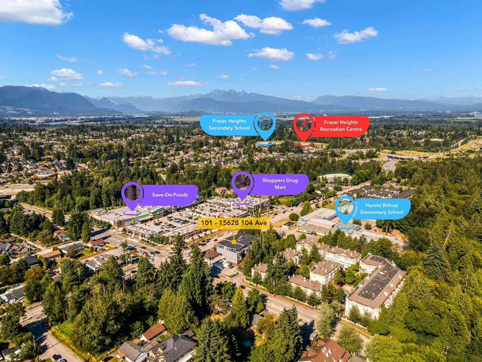 RARELY AVAILABLE GROUND-LEVEL CORNER UNIT - This spacious 2 BED, 2 BATH home is the LARGEST IN THE BUILDING and features a generous WALK-OUT PATIO just steps from GUILDFORD VILLAGE SHOPPING PLAZA, home to Save-On-Foods, pharmacy, child care, dining, and more. Stylishly UPDATED with modern LED lighting and WIDE PLANK VINYL FLOORING. Ideally situated with a BUS STOP at your doorstep, beside HAROLD BISHOP ELEMENTARY, and minutes to GUILDFORD SECONDARY, major HIGHWAY ACCESS, scenic NATURE TRAILS, and nearby PARKS including Tynehead Regional Park. PETS & RENTALS ALLOWED, making this a perfect home or investment in a highly walkable, convenient location. (id:27476)
