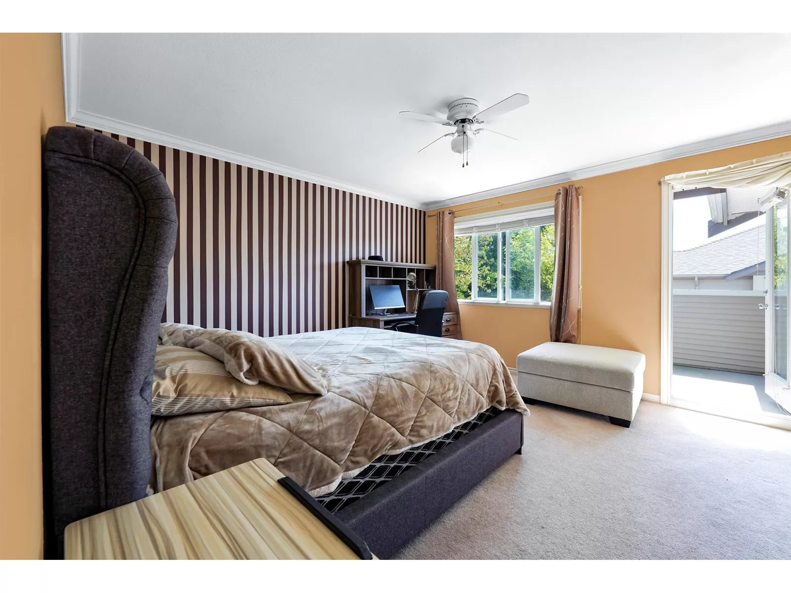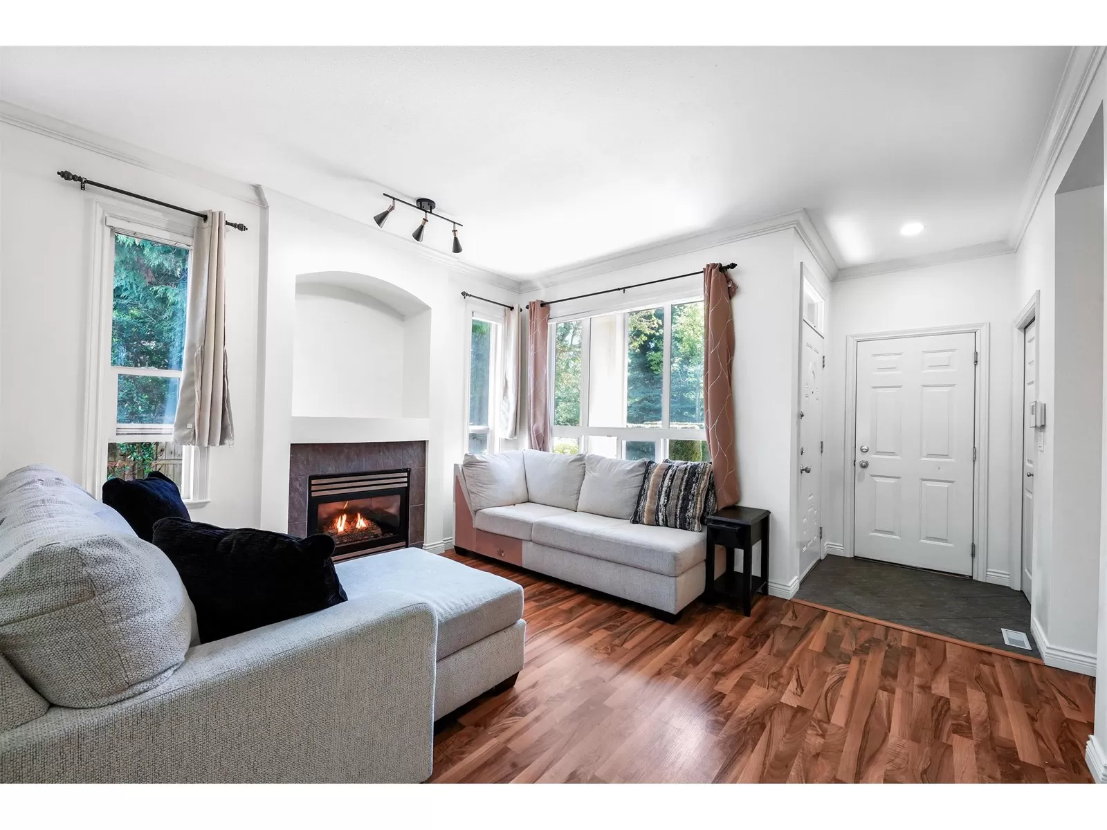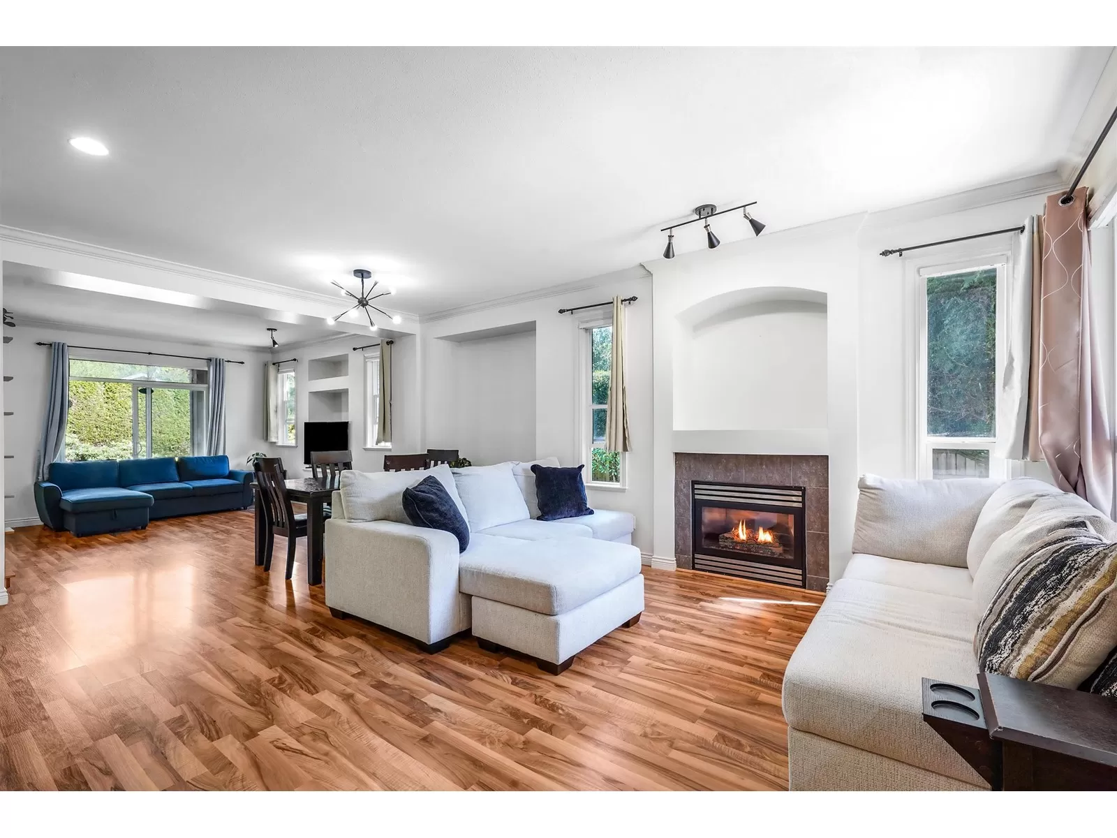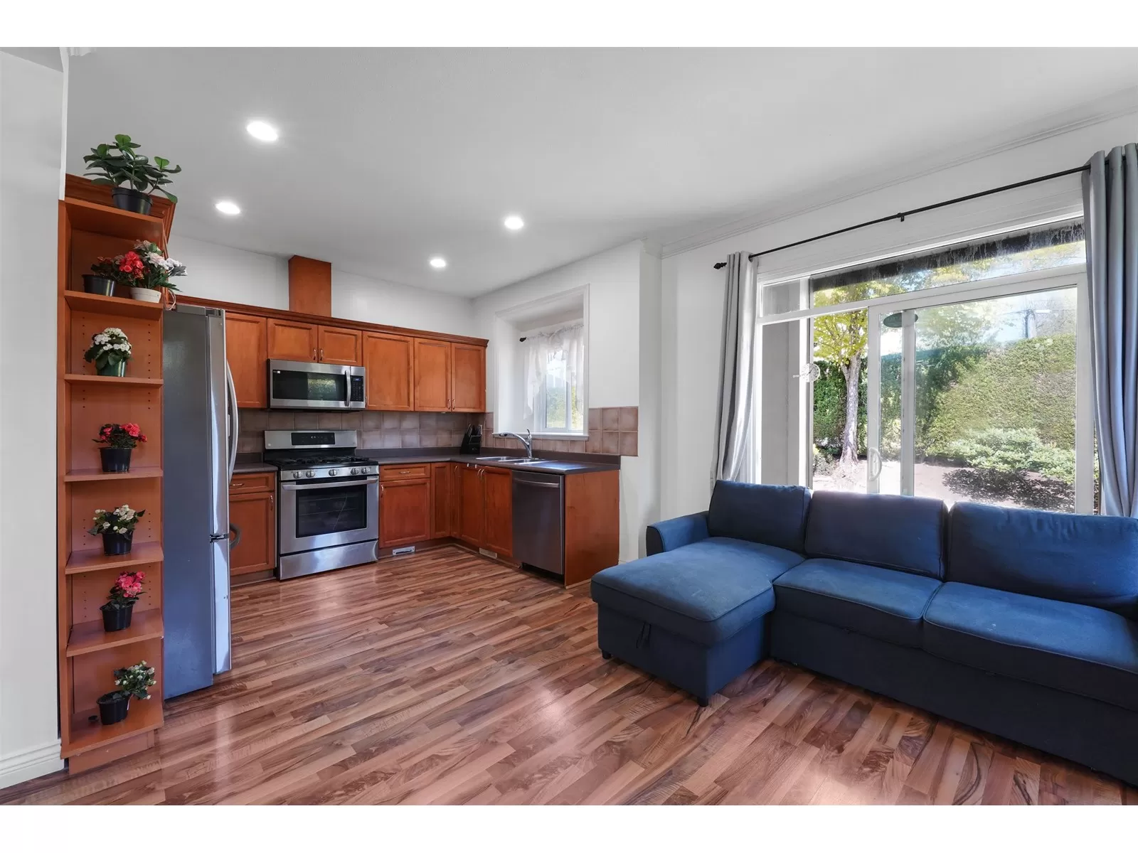 PORTER'S COVE! Extremely rare to find-immaculate 2,428 sqft duplex-style end unit on a large, ultra-private lot. Bright, open-concept layout with 4-5 bedrooms & 4 bathrooms (3 with deep soaker tubs). Features 9' ceilings, laminate flooring, gas fireplace, and spacious kitchen with gas stove & stainless steel appliances. New furnace & hot water tank (2022). Upstairs includes 3 generous bedrooms, primary with walk-in closet, ensuite & private balcony. Fully finished basement with full bath, bedroom & large rec room or 5th bedroom. Huge fenced yard & patio-ideal for entertaining or family fun. Family-friendly complex in a prime location-minutes to shopping, schools & transit. Walk to Regent Christian Academy & Pacific Life Bible College. Rentals & 1 pet allowed. HURRY before it's GONE! (id:27476)