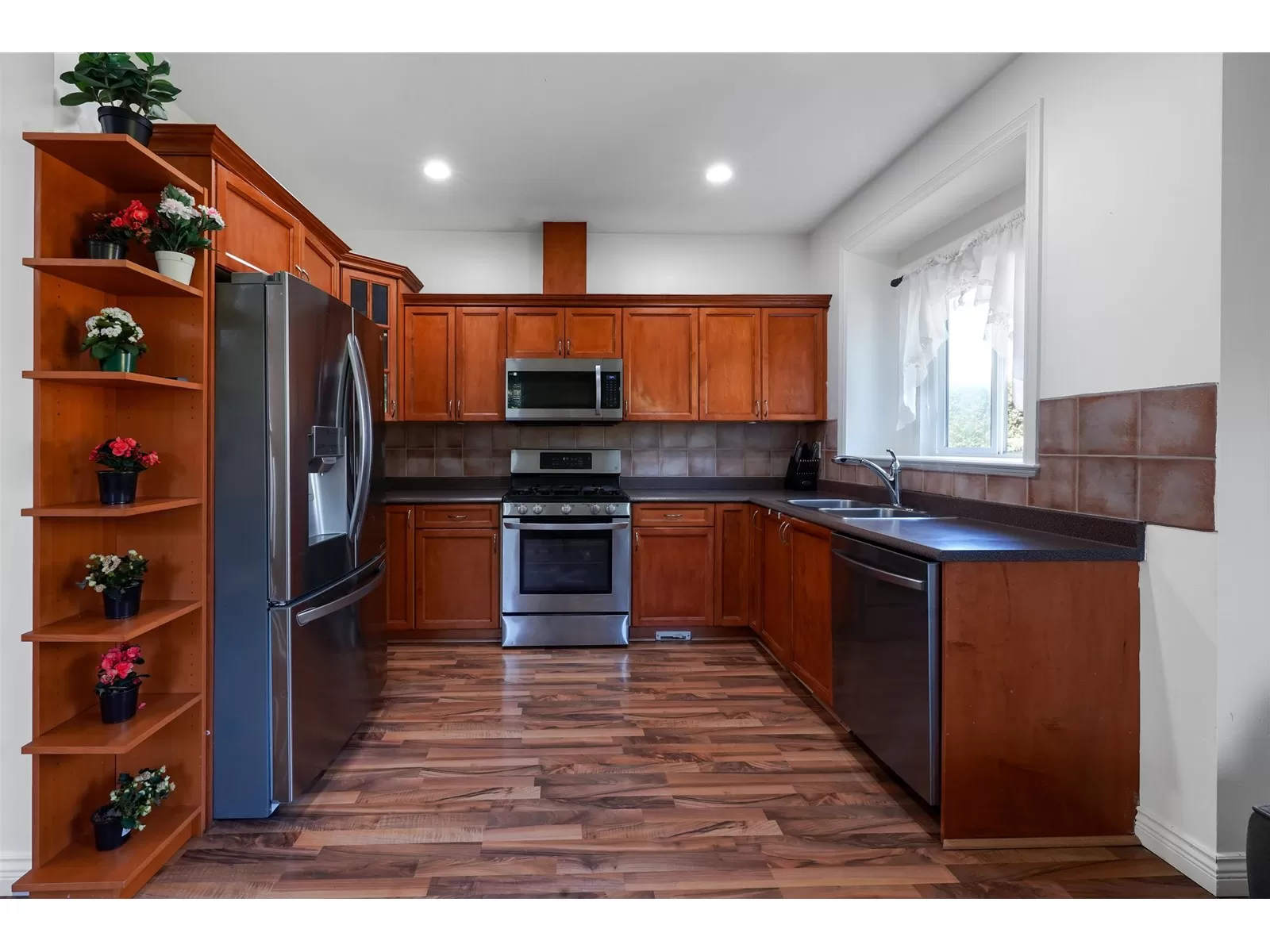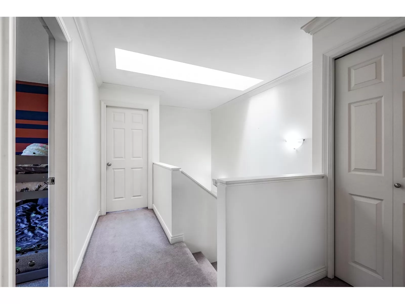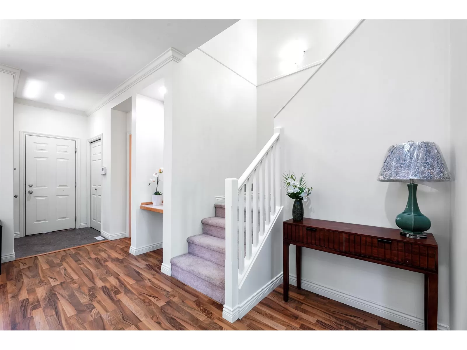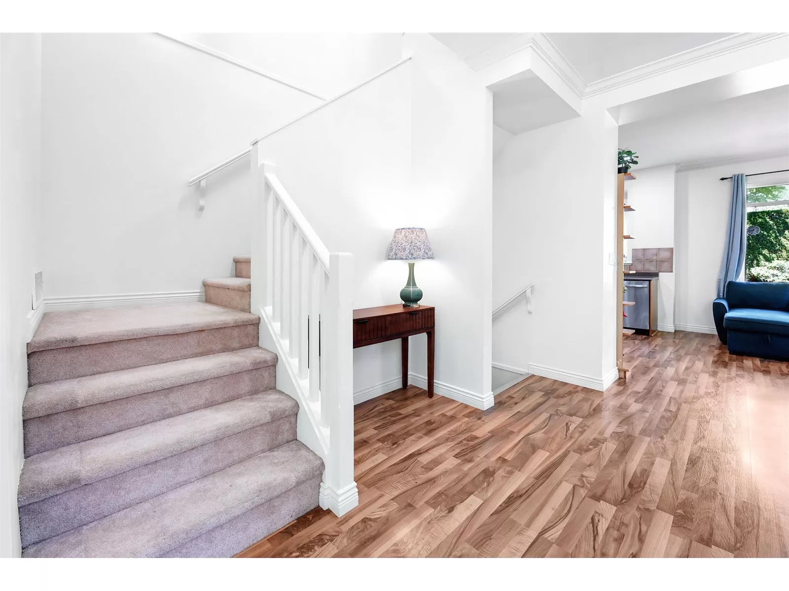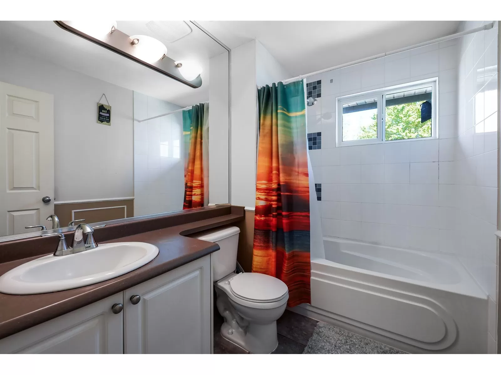 PORTER'S COVE! Extremely rare to find-immaculate 2,428 sqft duplex-style end unit on a large, ultra-private lot. Bright, open-concept layout with 4-5 bedrooms & 4 bathrooms (3 with deep soaker tubs). Features 9' ceilings, laminate flooring, gas fireplace, and spacious kitchen with gas stove & stainless steel appliances. New furnace & hot water tank (2022). Upstairs includes 3 generous bedrooms, primary with walk-in closet, ensuite & private balcony. Fully finished basement with full bath, bedroom & large rec room or 5th bedroom. Huge fenced yard & patio-ideal for entertaining or family fun. Family-friendly complex in a prime location-minutes to shopping, schools & transit. Walk to Regent Christian Academy & Pacific Life Bible College. Rentals & 1 pet allowed. HURRY before it's GONE! (id:27476)