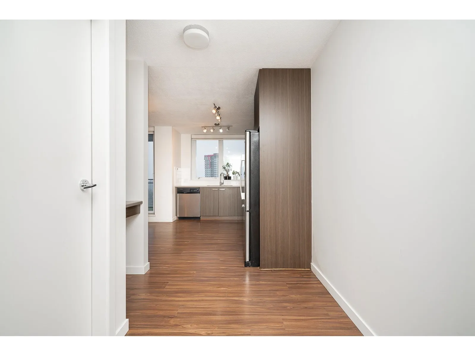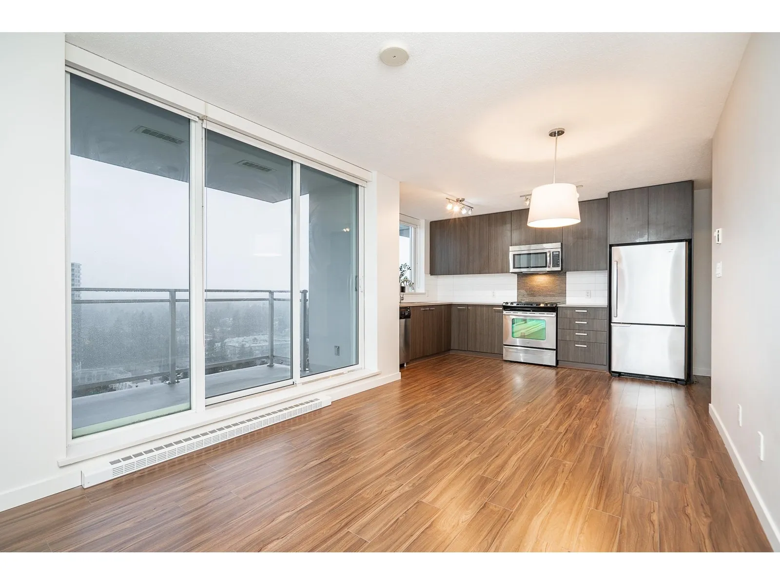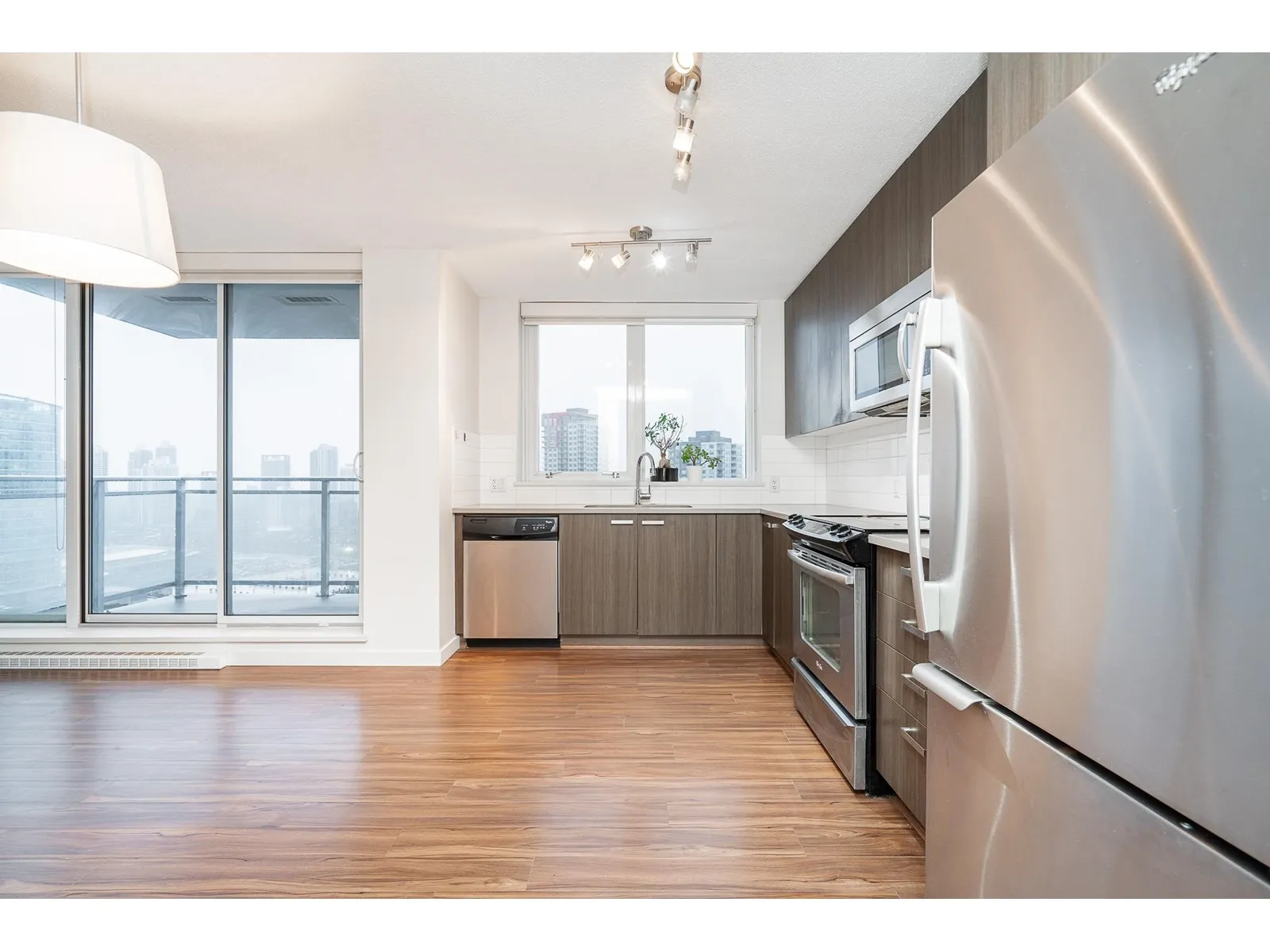 Easy to show. Quick Possession possible. This well-kept, large one-bedroom corner unit boasts an amazing southeast-facing city view. It features stainless steel appliances, in-suite laundry, one parking spot, and one locker. Amenities include a gym, party room, and playground. Rentals are 100% allowed. EV charging station available in the building. The building is conveniently located just steps away from Surrey City Centre, SFU University, Skytrain, and Surrey Central City Shopping Centre. Book your private showing and bring your offer today before it's too late! (id:27476)