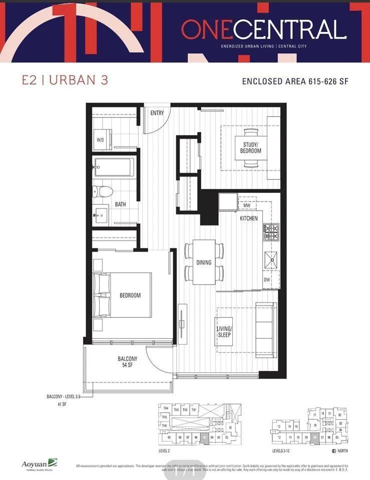 "Rent to Own" option available - Pay up to 20% down, Start living from day 1 & Complete at your convenience. *ONE CENTRAL* - June 2023 Built 44 storey with 360 views, opposite to SFU, Surrey City Hall, City Library, 3 Civic Plaza tower in Surrey Downtown. The unit balcony is facing East (sunrise), 2 bed, 1 bath, kitchen has gas stove, living room has sliding glass door, can use as 3rd bedroom. It comes with one parking stall, one bicycle stall and one storage locker (good size for additional storage). Check first class amenities on Floor 14th (BBQ, dog park), Floor 3rd (gym), Floor 4th (Yoga), Floor 34th (WFH, Business Centre) & Floor 44th (Club, Sky bikes, BBQ, Pool, tennis). Developer warranty 2, 5 & 10 years still applicable. Please Call for more details. (id:27476)