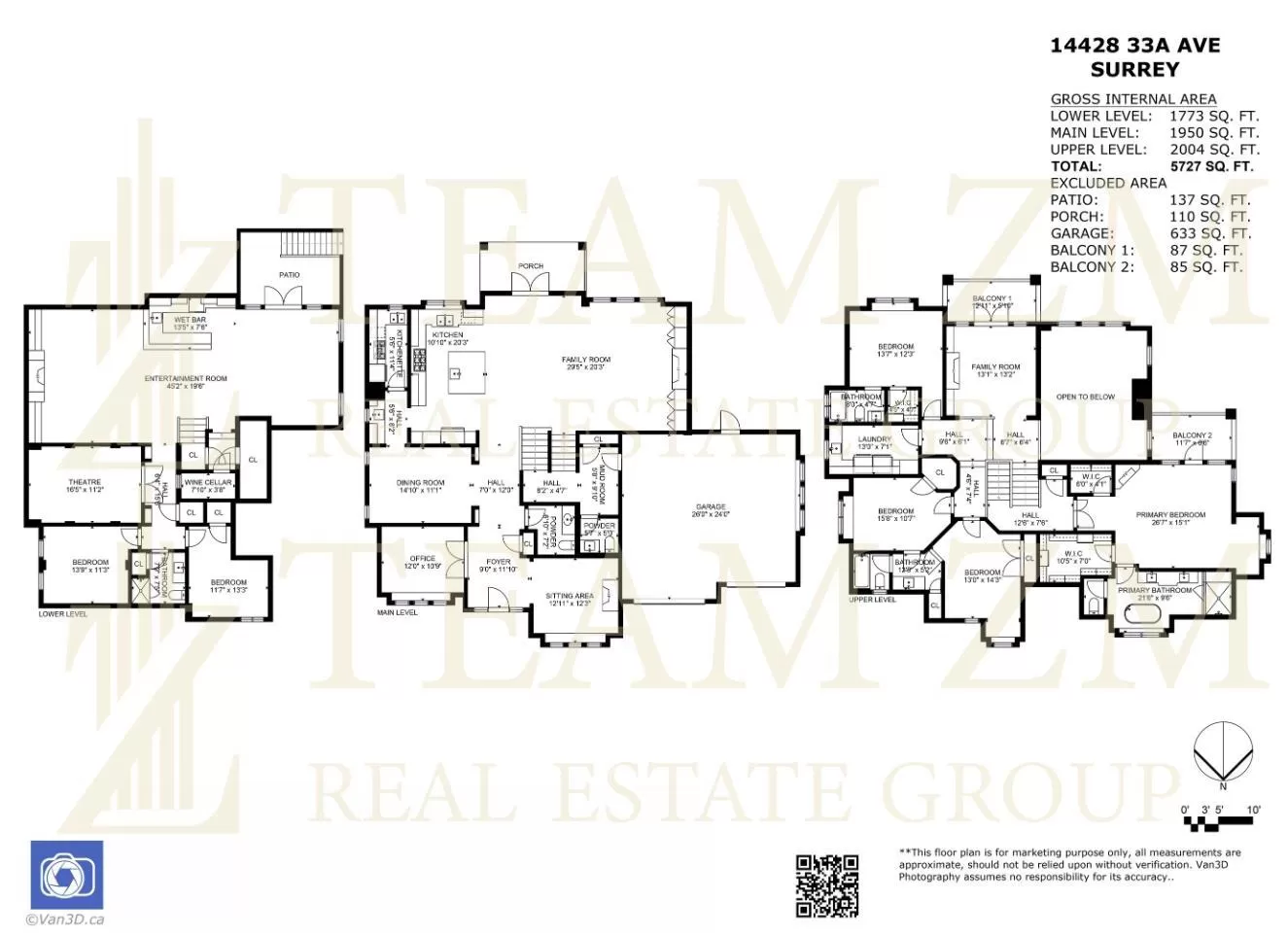 Discover this exceptional modern home in the prestigious Elgin Chantrell neighbourhood. Situated on a generous 13993.44 SF lot, this 5,727 SF residence features 6 bedrooms and 6 bathrooms-perfect for families of all sizes. Elegant high ceilings, a main-level ensuite bedroom, and an upper-level master with balcony and library offer both comfort and versatility. The gourmet kitchen with separate wok kitchen, spacious game/media rooms, and iron-gated wine cellar make entertaining a breeze. Enjoy the private backyard oasis, smart lighting system, and top-tier school catchment: Semiahmoo Secondary. A rare blend of luxury, function, and location-this is South Surrey living at its finest. (id:27476)