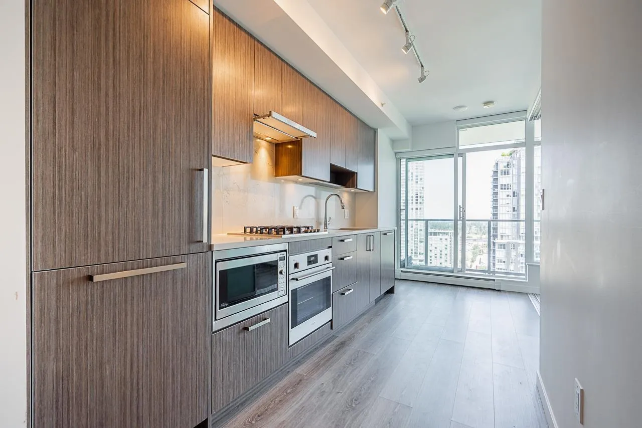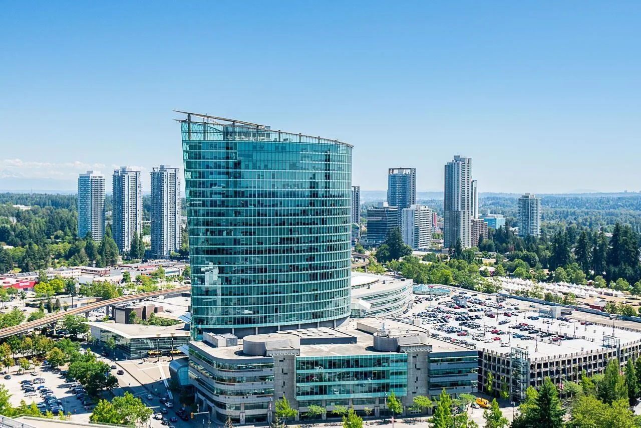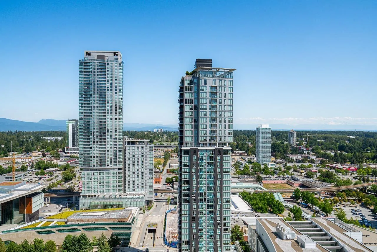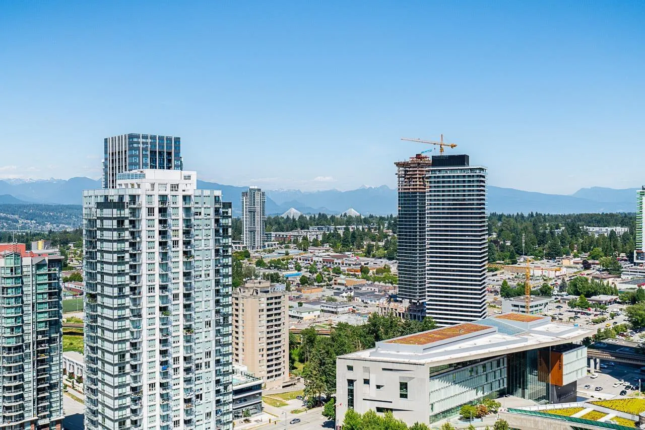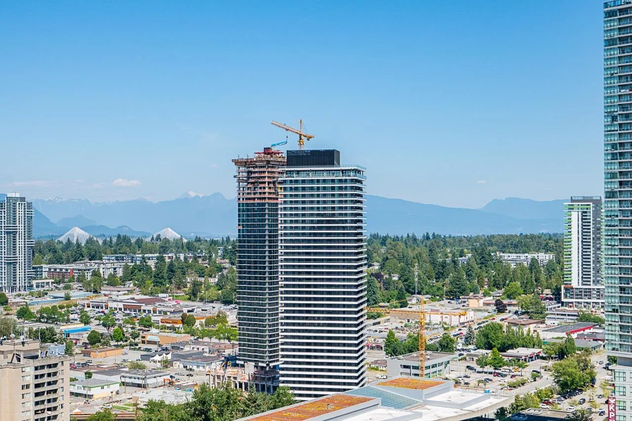Welcome to One Central, Surrey's tallest residential tower located in the heart of the city! This sleek 2 beds, 1 bath home offers 500 sq ft of thoughtfully designed living space with stunning mountain and city views. The modern kitchen features premium European appliances, quartz countertops, and custom cabinetry. Enjoy floor-to-ceiling Low-E windows with custom roller blinds, a stylish bathroom with floating vanity and frameless glass shower, and in-suite Blomberg washer/dryer. Steps to SFU, Surrey Central SkyTrain, shopping, restaurants, and more. Ideal for first-time buyers or investors! (id:27476)
