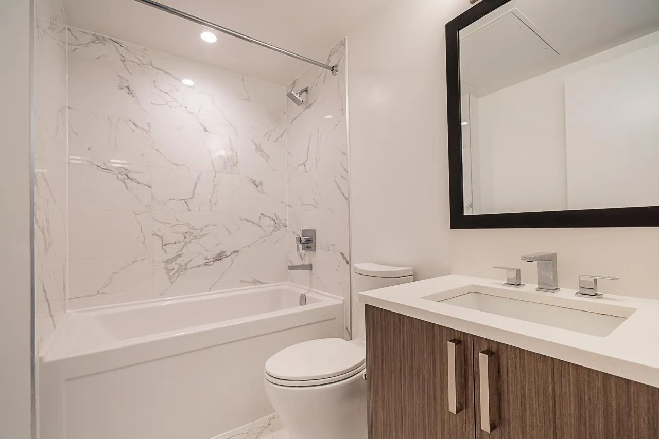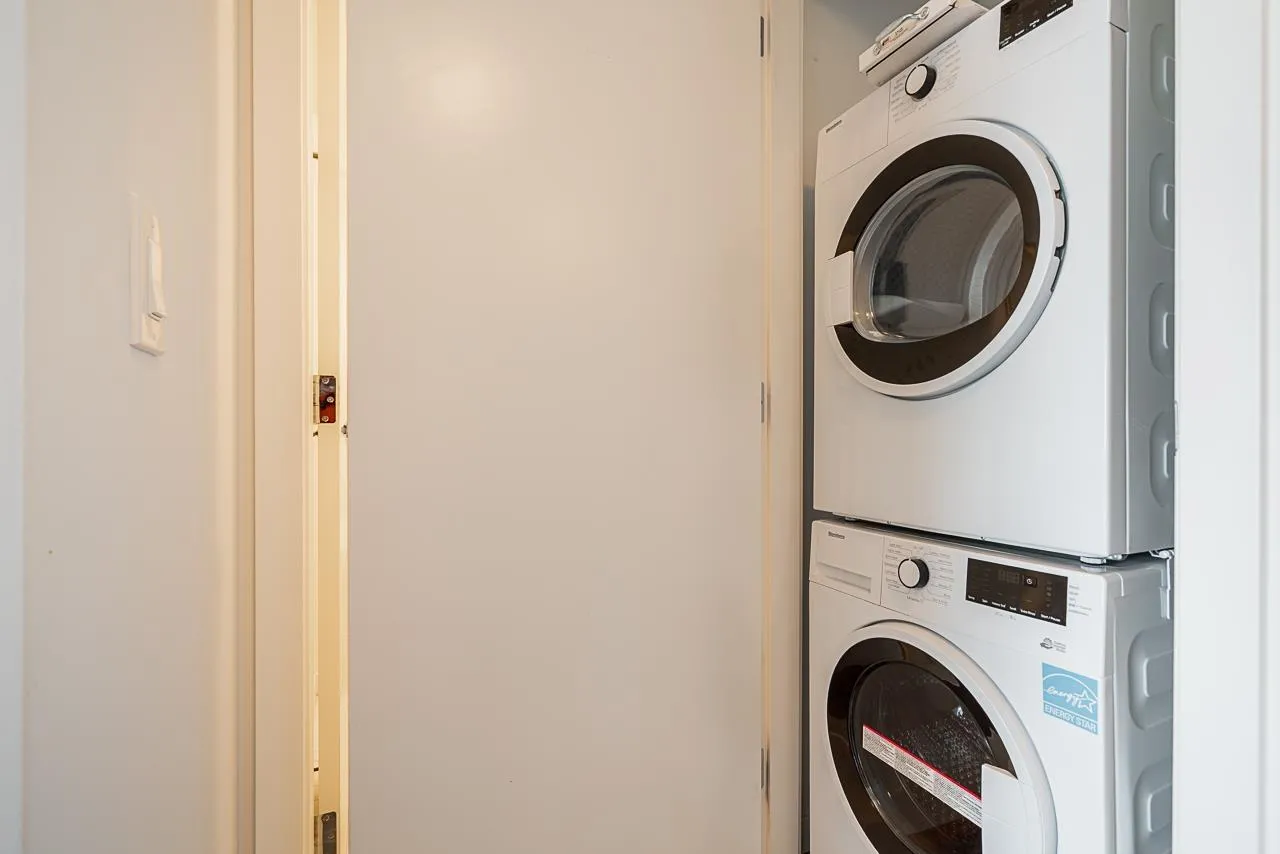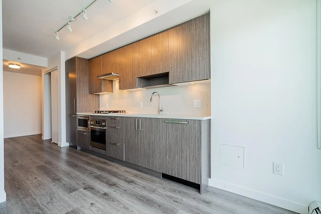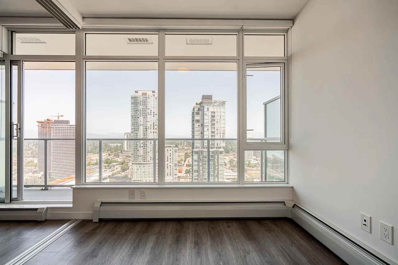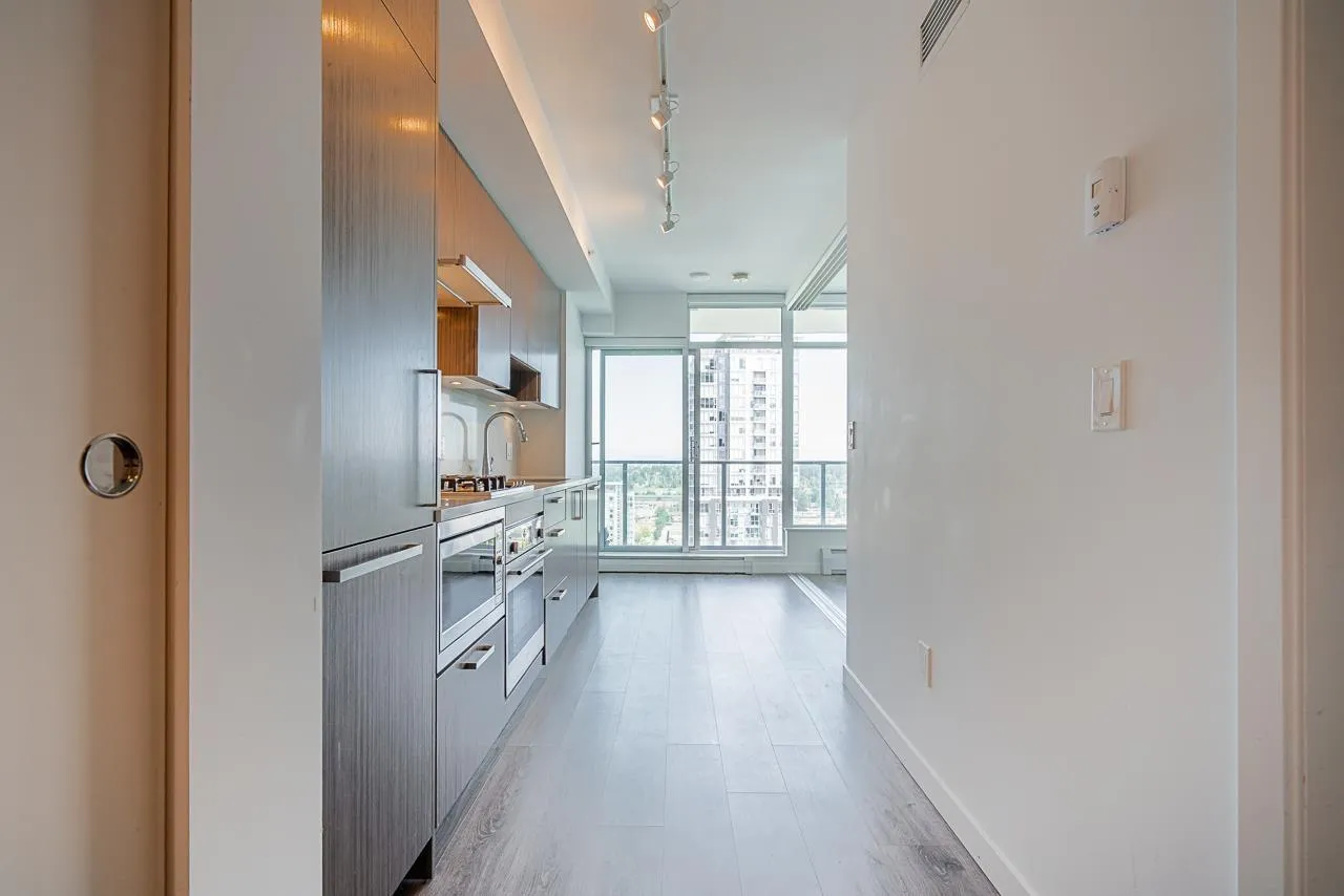 Welcome to One Central, Surrey's tallest residential tower located in the heart of the city! This sleek 2 beds, 1 bath home offers 500 sq ft of thoughtfully designed living space with stunning mountain and city views. The modern kitchen features premium European appliances, quartz countertops, and custom cabinetry. Enjoy floor-to-ceiling Low-E windows with custom roller blinds, a stylish bathroom with floating vanity and frameless glass shower, and in-suite Blomberg washer/dryer. Steps to SFU, Surrey Central SkyTrain, shopping, restaurants, and more. Ideal for first-time buyers or investors! (id:27476)
