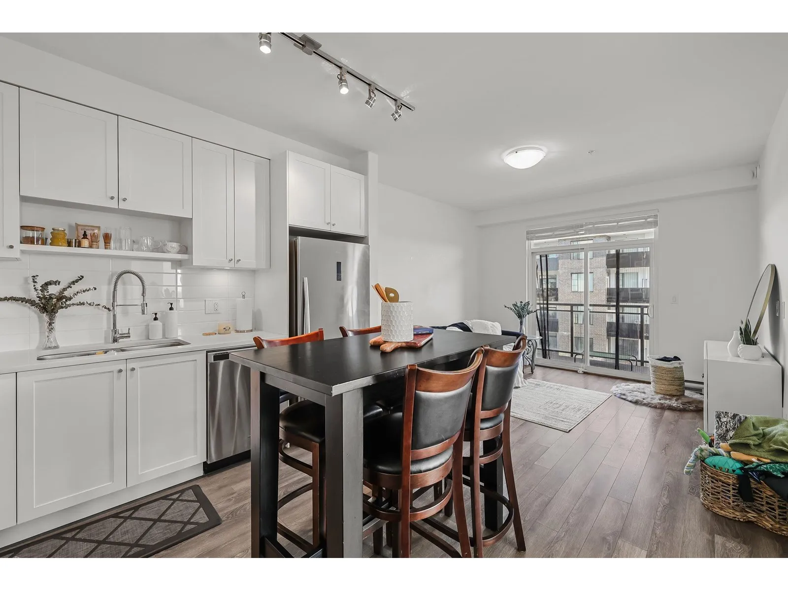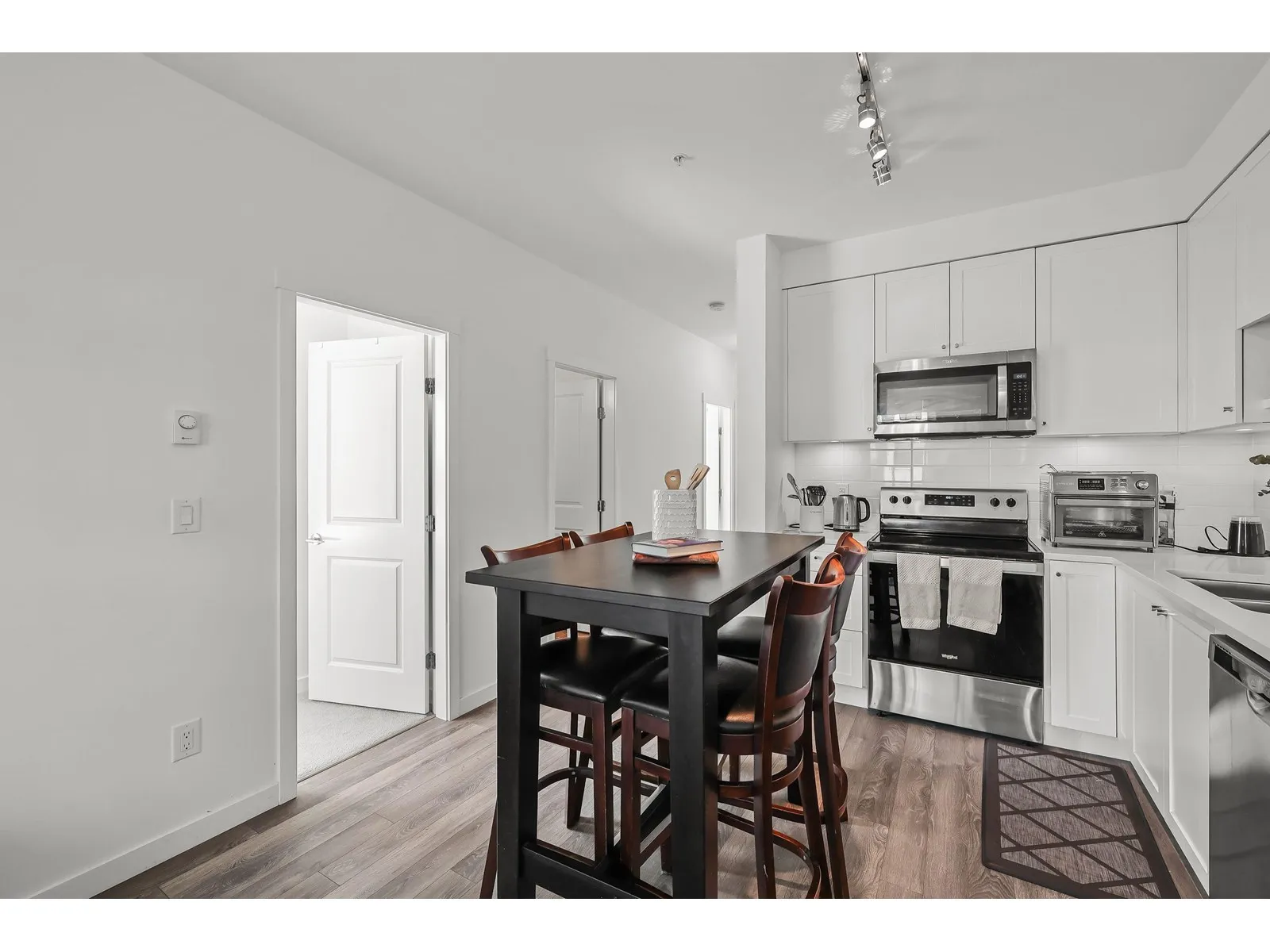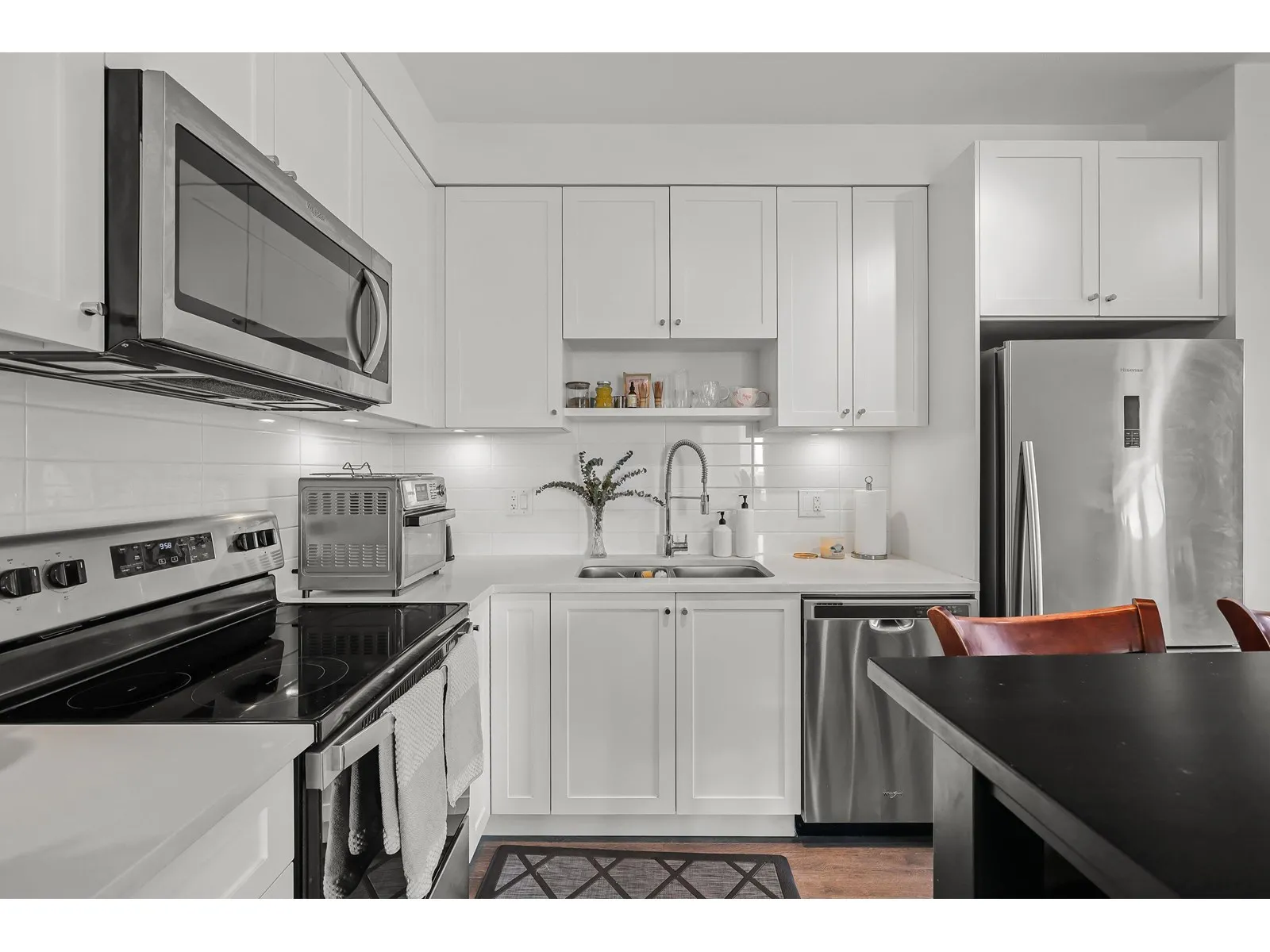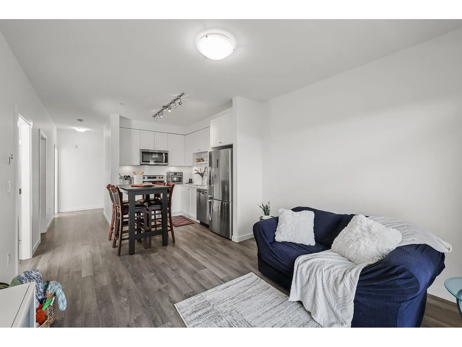 Welcome to King's Landing by Dawson & Sawyer! This bright corner unit offers 2 bedrooms, 2 bathrooms, and a spacious open-concept layout. The generously sized primary bedroom features a double-sink ensuite, while the sleek kitchen boasts quartz countertops, stainless steel appliances, and laminate flooring throughout. Includes 1 parking and 1 storage. Located on King George Blvd, a few steps to Costco, Superstore, restaurants, and easy transit routes. Enjoy stunning mountain views and experience modern living at its finest! Call now to book your appointment! (id:27476)