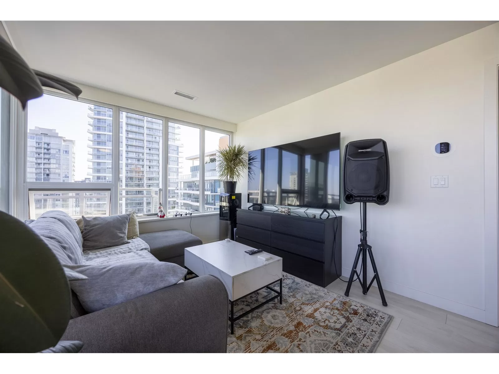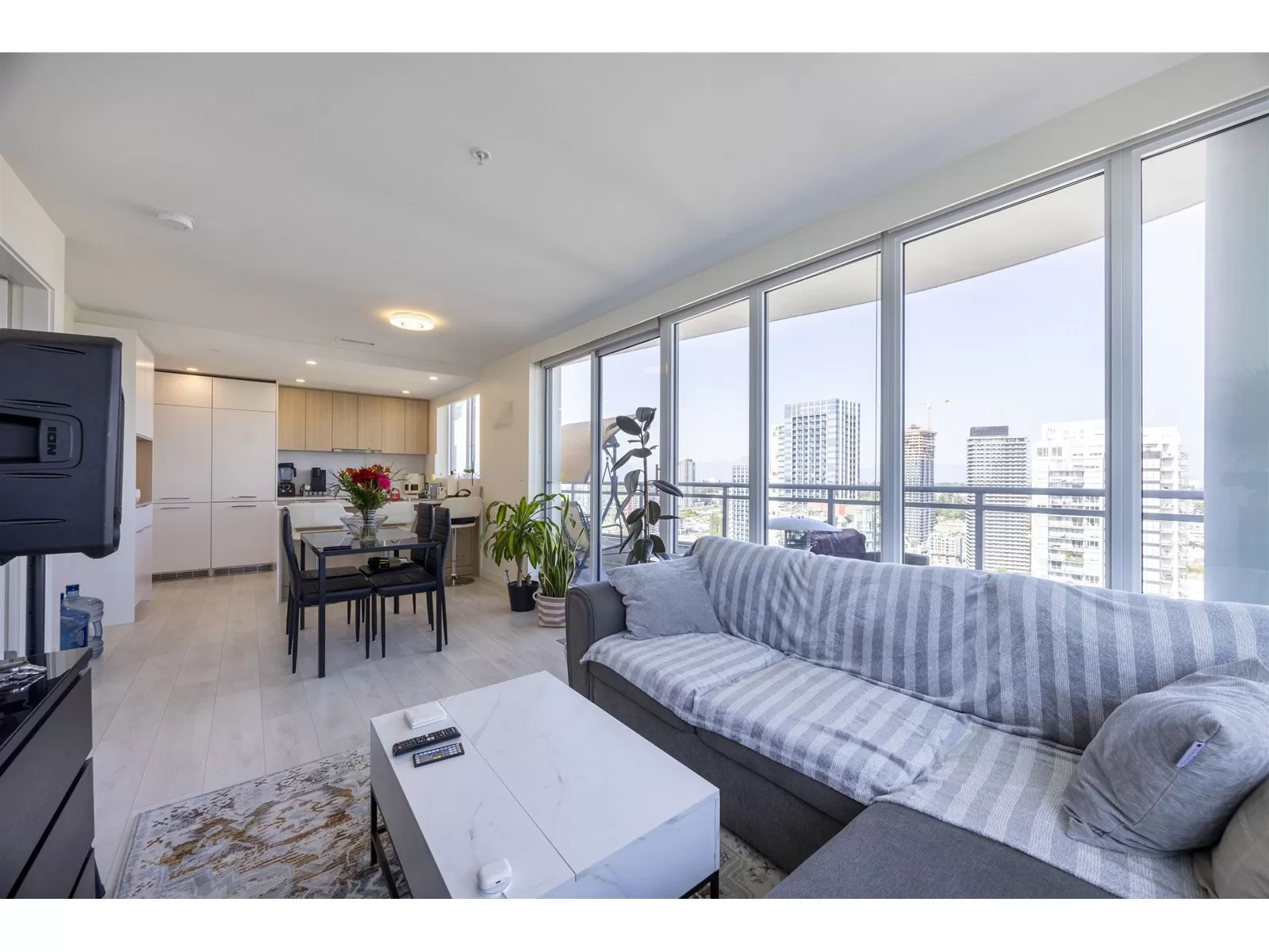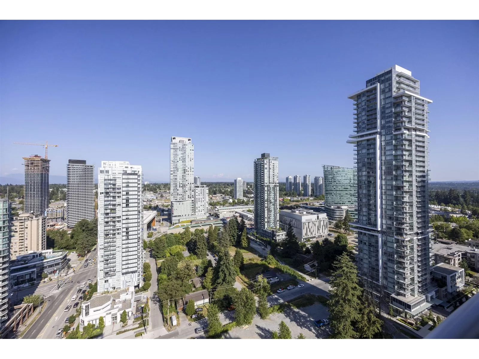 Subpenhouse Corner unit with views of city and mountain. This rarely available SOUTHEAST facing 2 bedroom 2 bath units has functional layout, laminate flooring through out, wrap-around big balcony, and high ceiling. Steps to skytrain station, SFU campus, KPU campus, library, city hall, shopping, restaurants and a lot more. This AIR CONDITIONED concrete high-rise building offers over 14,000 sf of indoor/outdoor amenities: outdoor courtyard with a children's play area, rooftop patio, social area, two-level fitness facility, co-working space, indoor lounge, social kitchen, dining area, games and media room, parcel room, dog wash and run area.1 PARKING + 1 STORAGE LOCKER (id:27476)